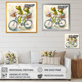 Green Frogs Riding A Bike - Frog Large Canvas Wall Art