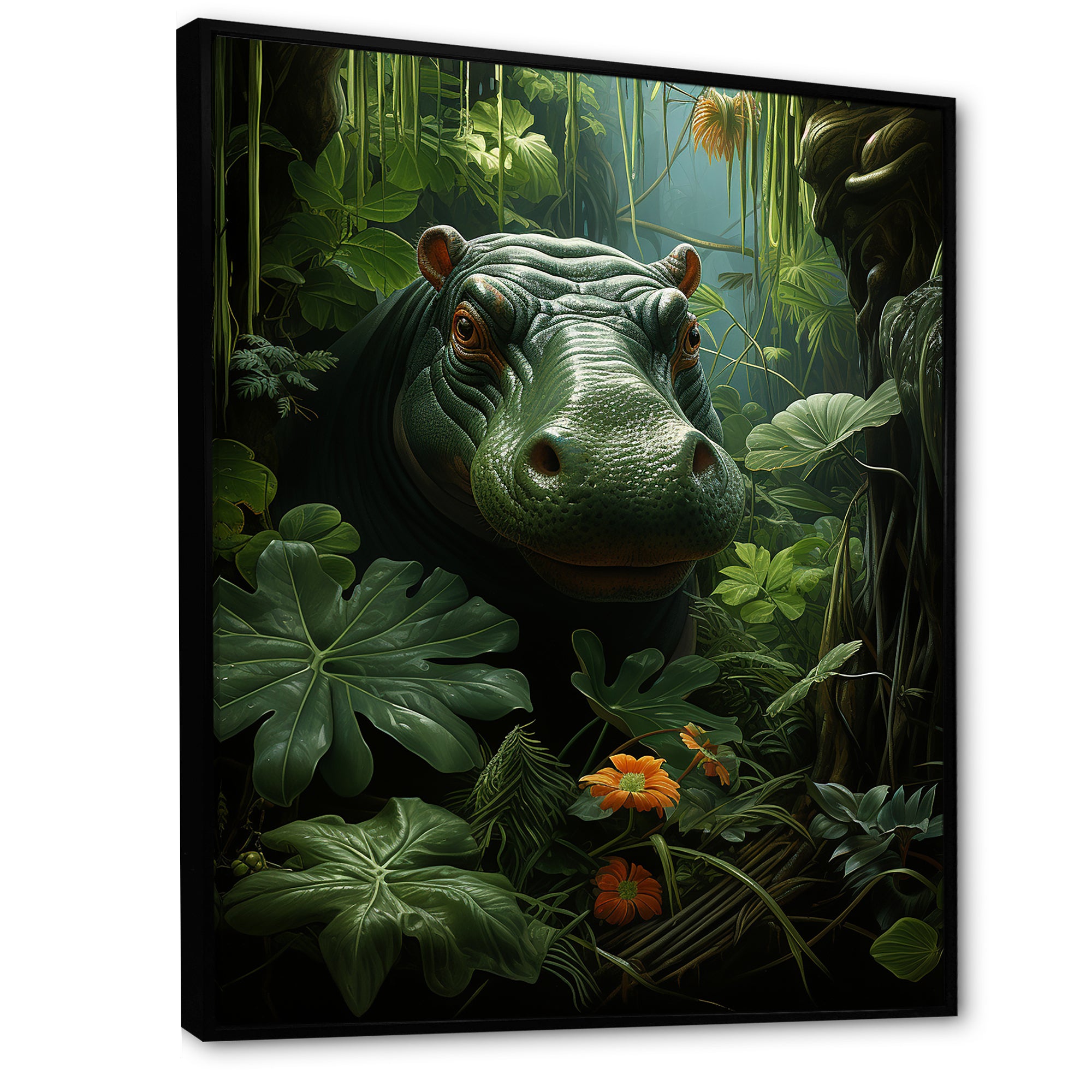 Green Vibrant Hippo Portrait - Hippopotamus Wall Art Prints