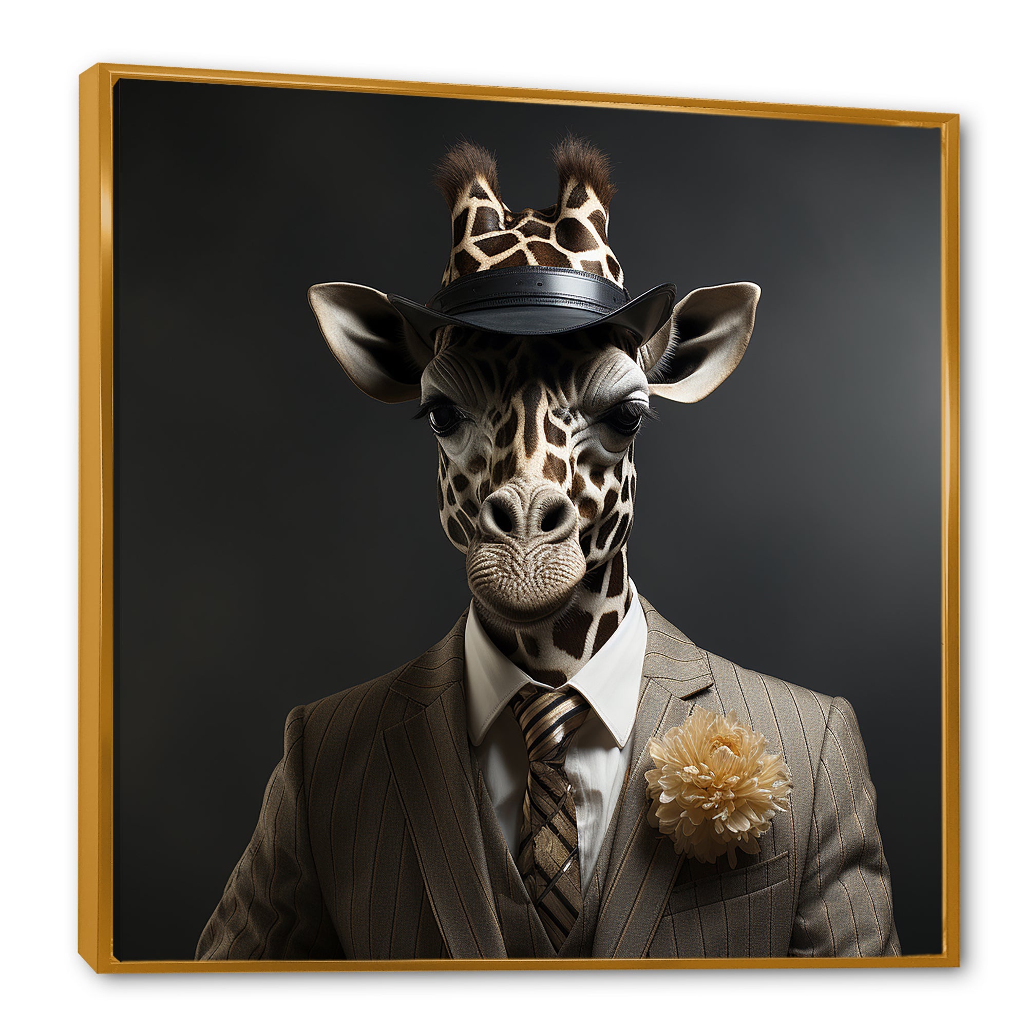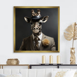 Grey and black suited up fashion giraffe - Giraffe Fashion Wall Art Prints