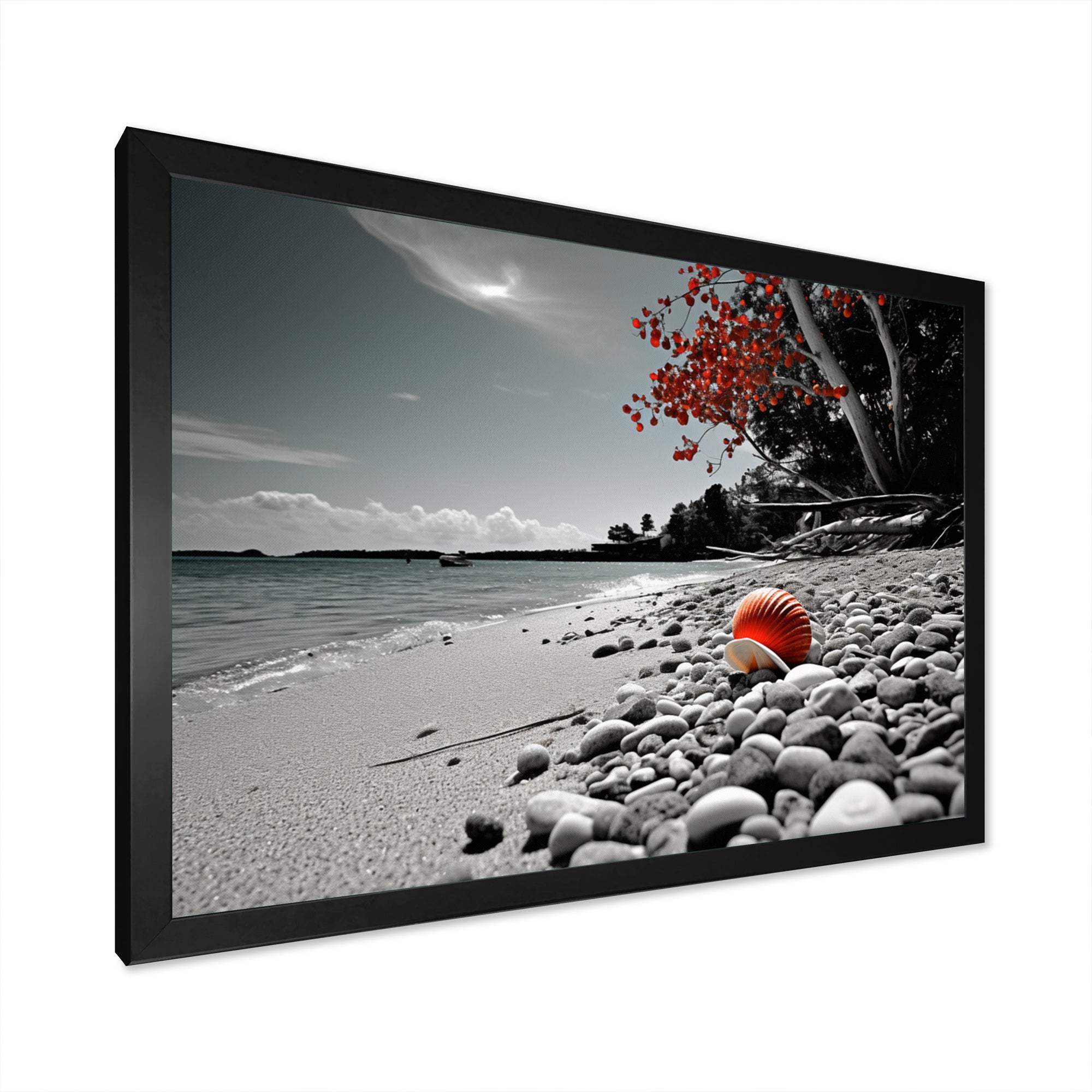 Grey Red Beach Seashell Symphony - Seashell Canvas Wall Art
