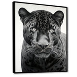 Grey White Panther Realistic Gaze - Panther Framed Canvas Art
