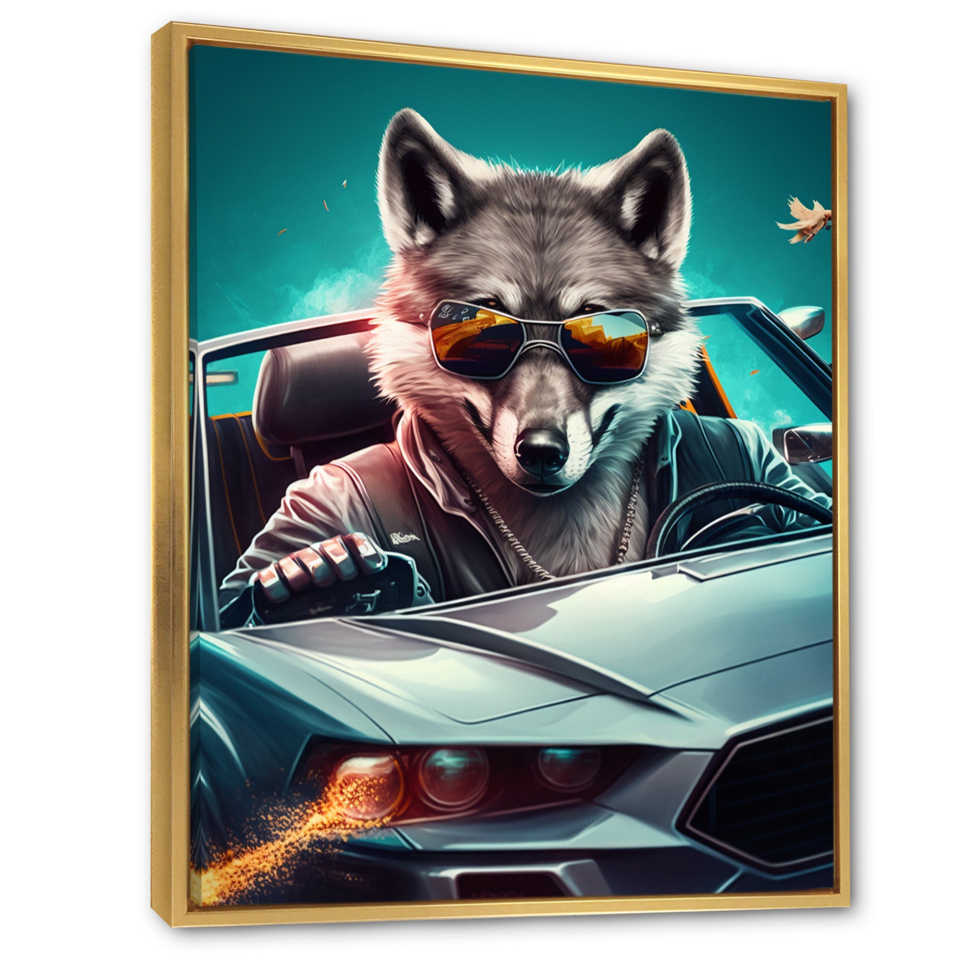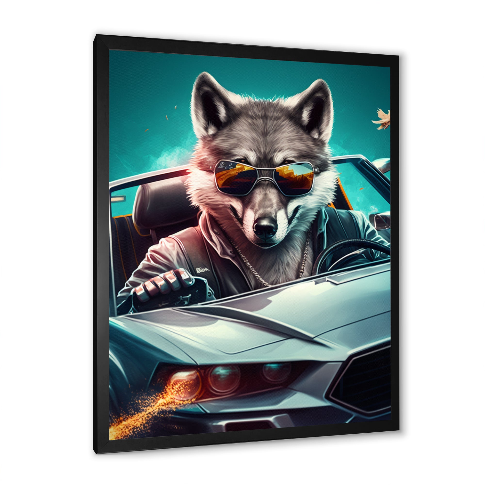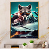 Grey Wolf Wearing Sunglasses in Sportscar - Wolf Wall Decor