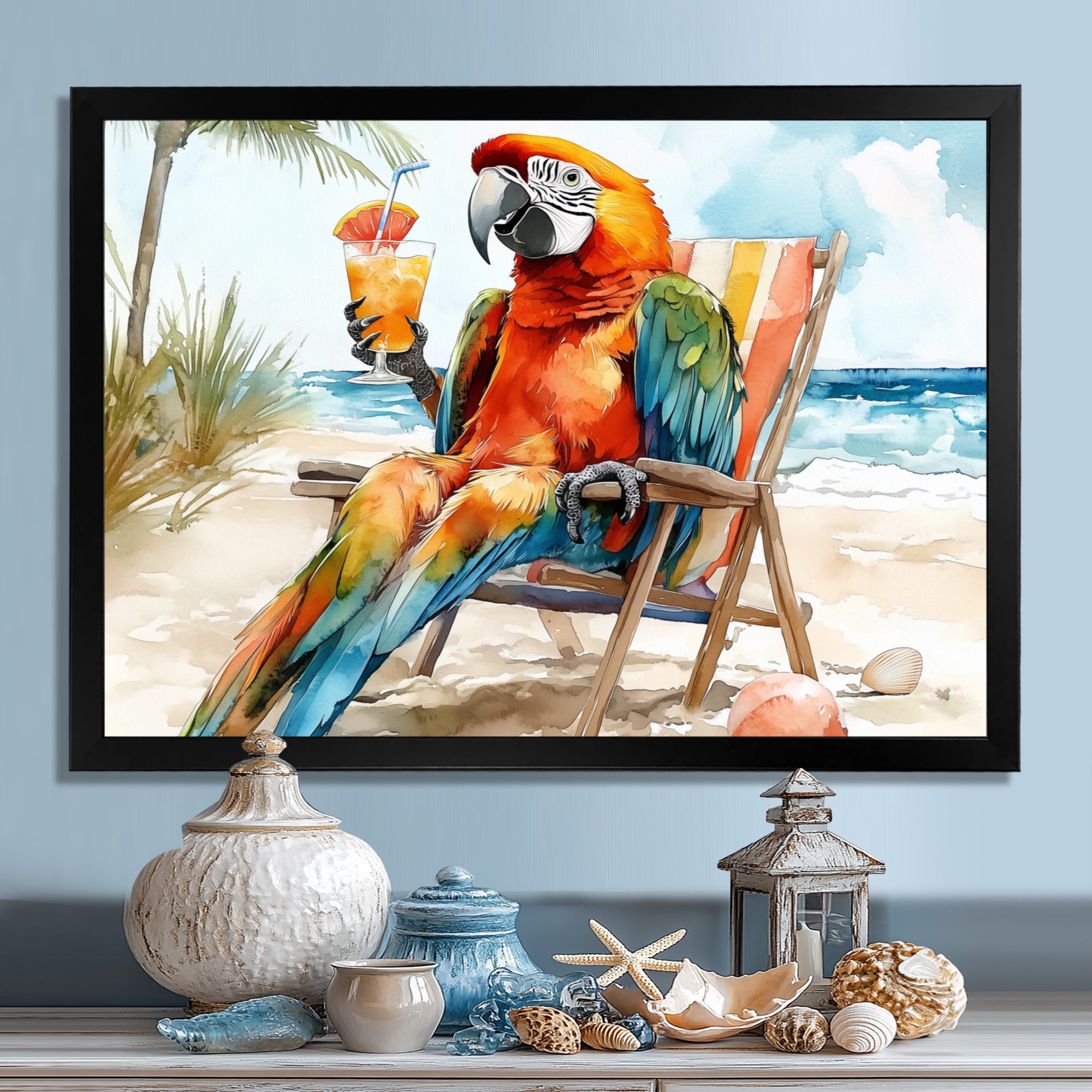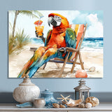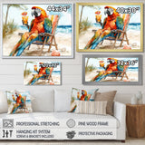 Macaw Parrot On A Beach Lounging Chair - Coastal Animal Canvas Wall Art