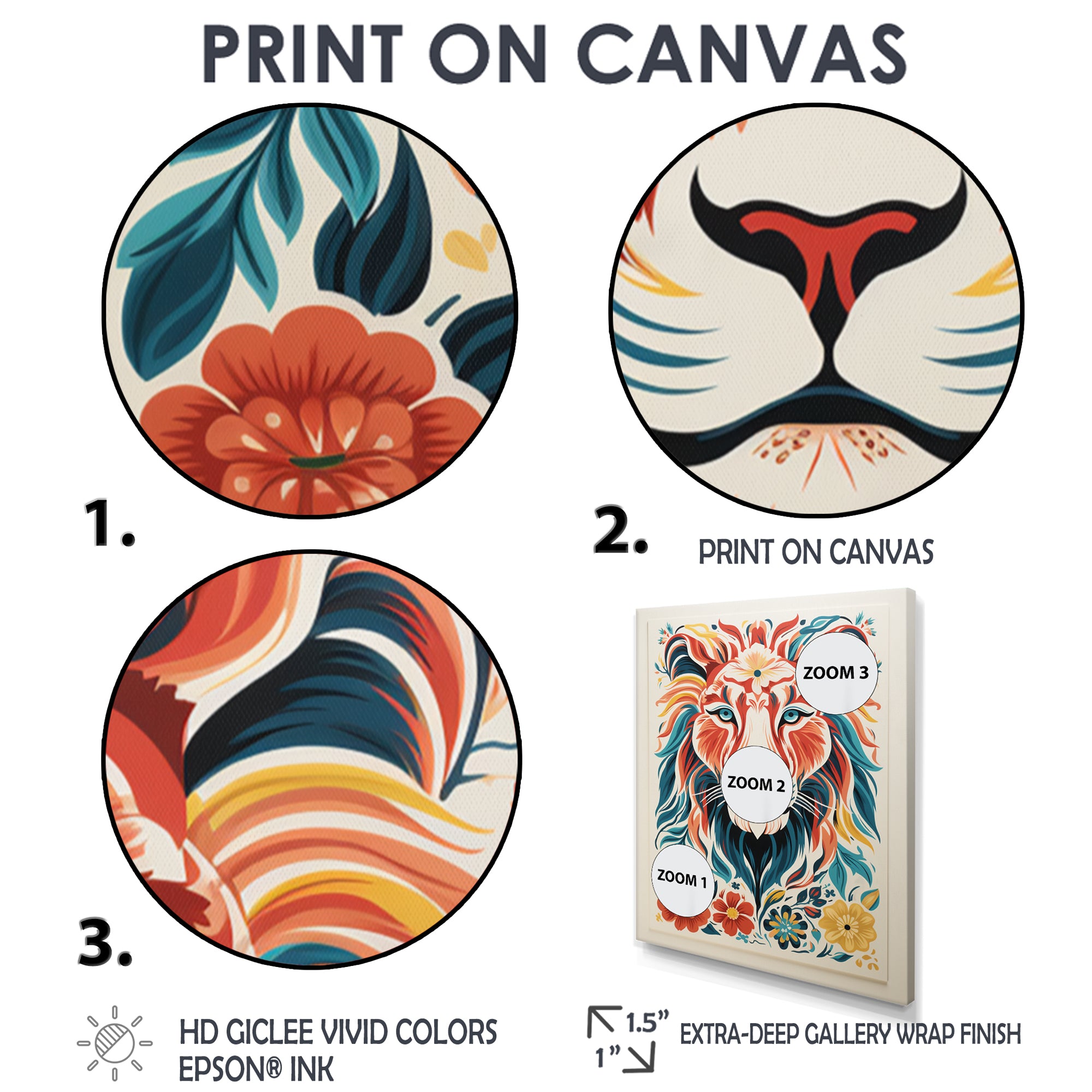 This beautiful Multi-color LION GRAPHIC Canvas Art is printed using the highest quality fade-resistant ink on canvas. Every one of our fine art giclee canvas prints is printed on premium quality cotton canvas, using the finest quality inks which will not fade over time. Each giclee print is stretched tightly over a 1-inch wood sub frame for small size prints or a 1.5-inch wood subframe for large size prints ensuring the canvas is taught and does not buckle. This canvas art print is gallery-wrapped (the design continues on the sides), giving it a real art gallery feel. All of our canvas prints are carefully packaged with plastic protection, fragile labeling, and sturdy boxes to ensure safe delivery. Every canvas print arrives ready to hang on the wall, with the hanging kits included.