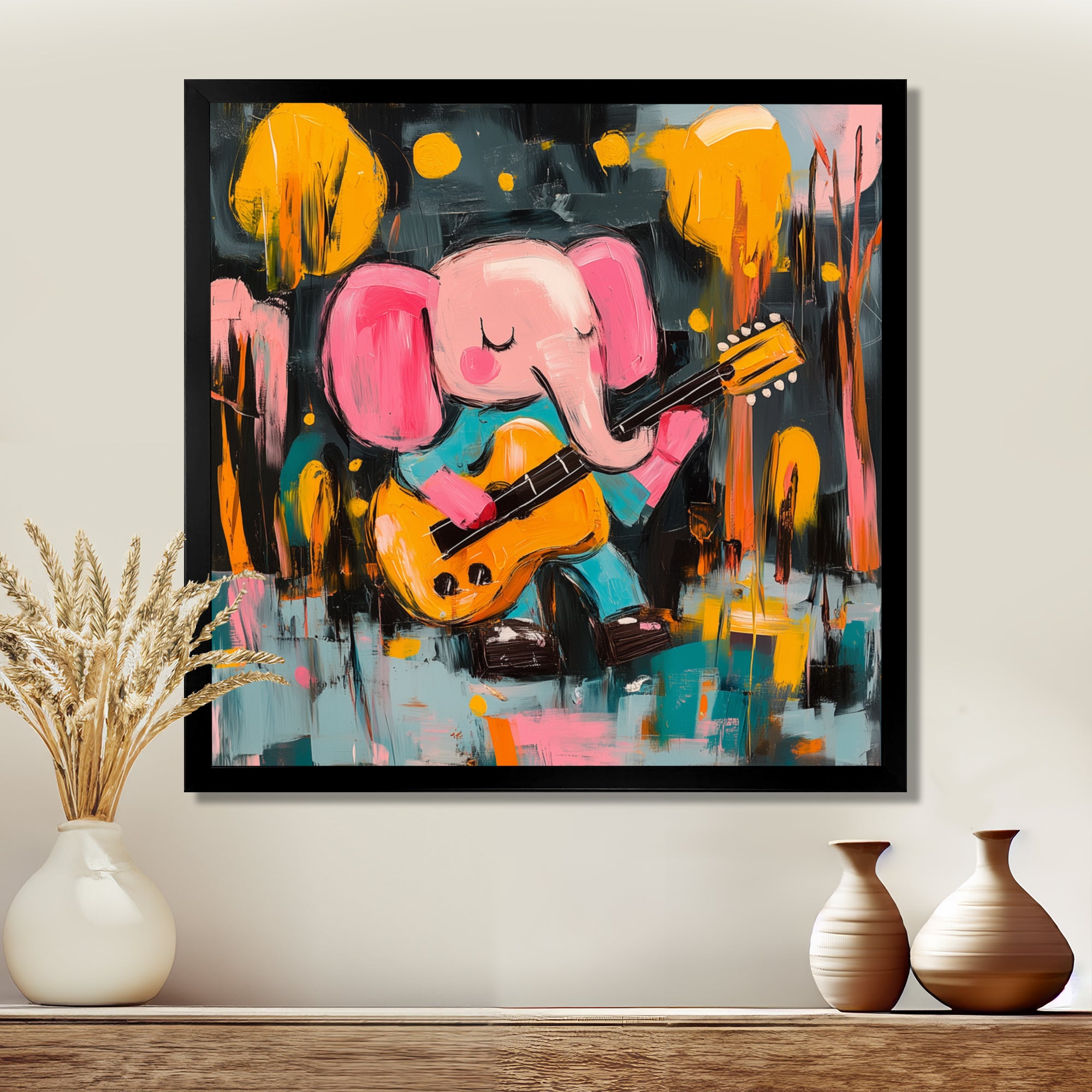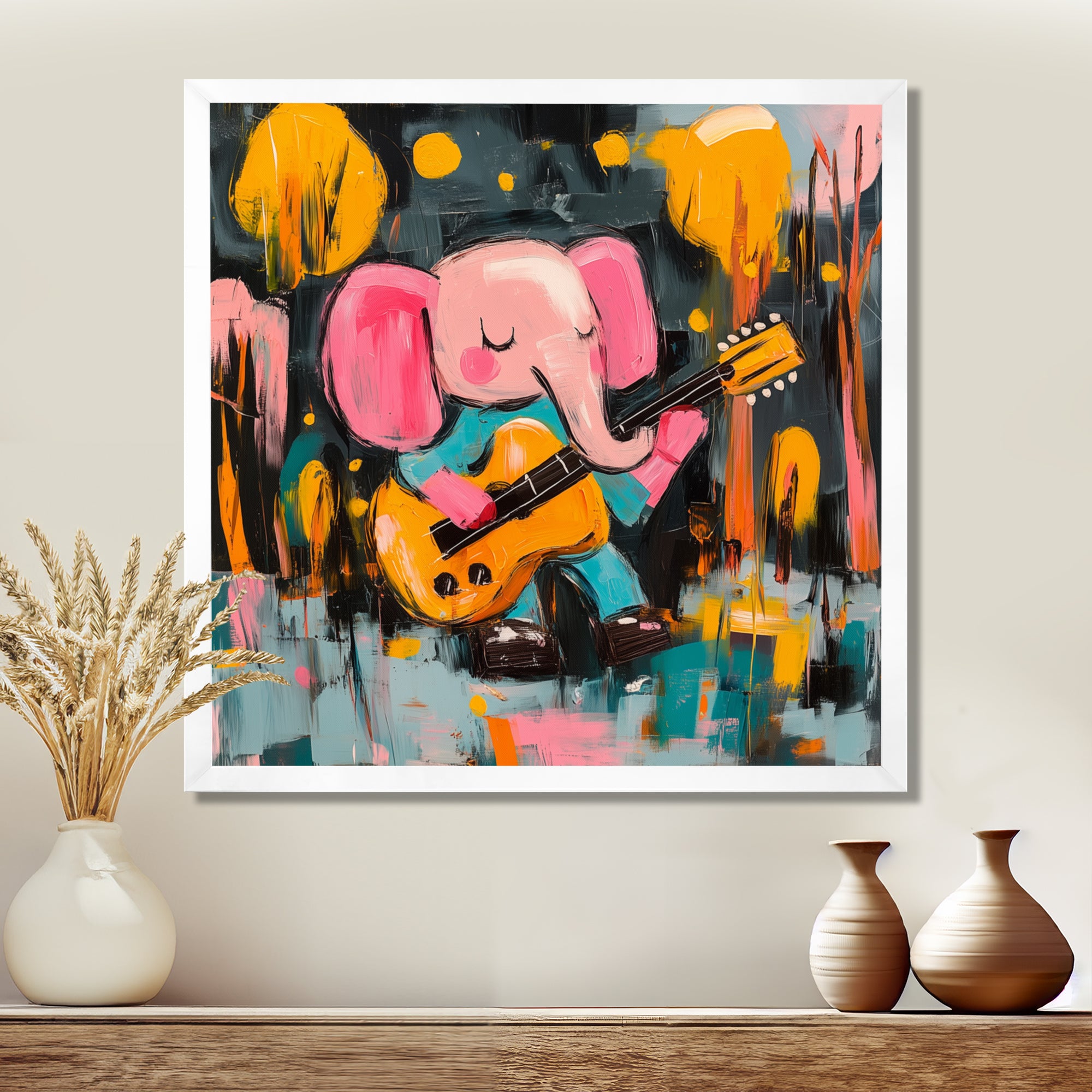 Nursery Elephant Playing Guitar - Elephant Large Canvas Wall Art