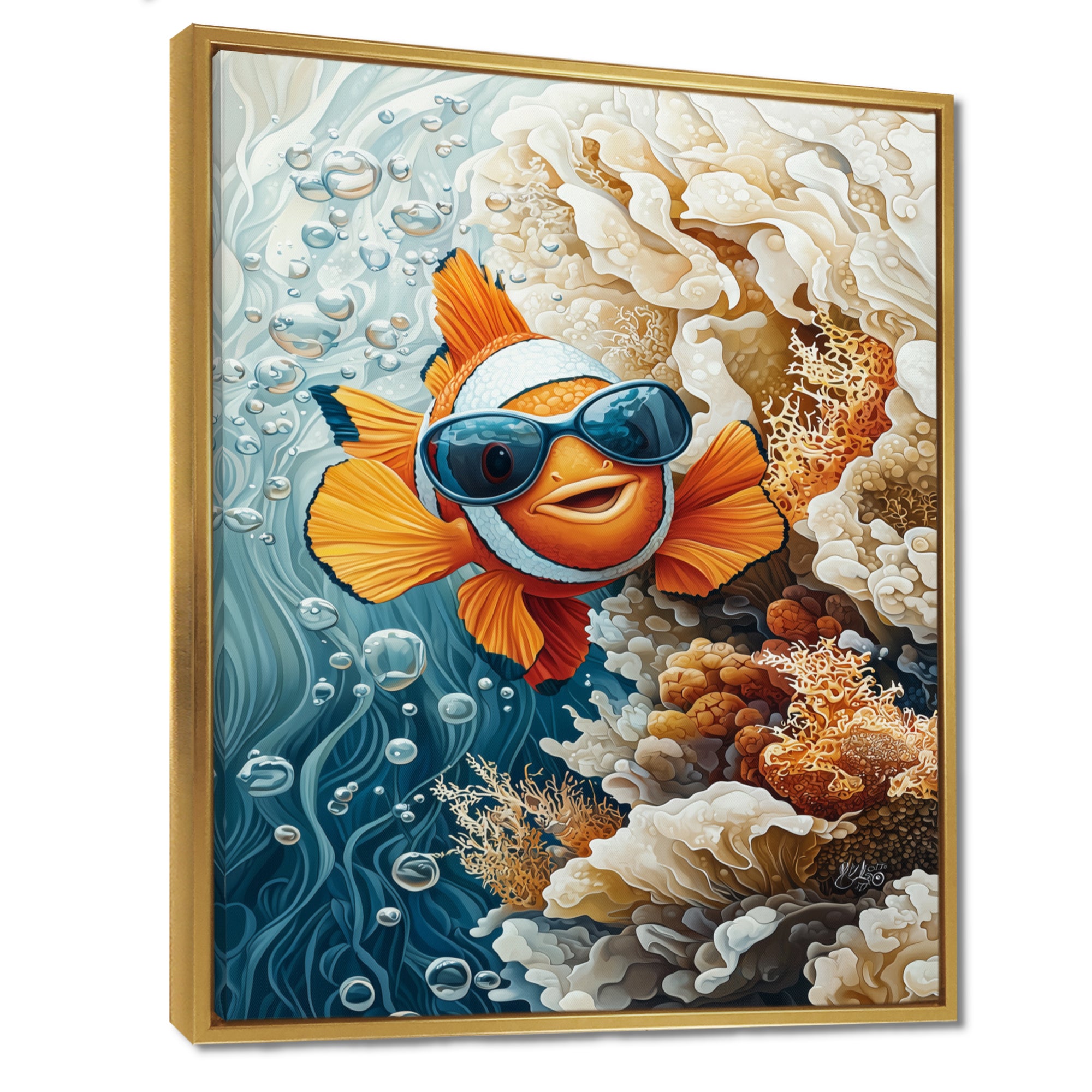 Orange Nemo Fish With Glasses In The Ocean - Fish Large Canvas Wall Art