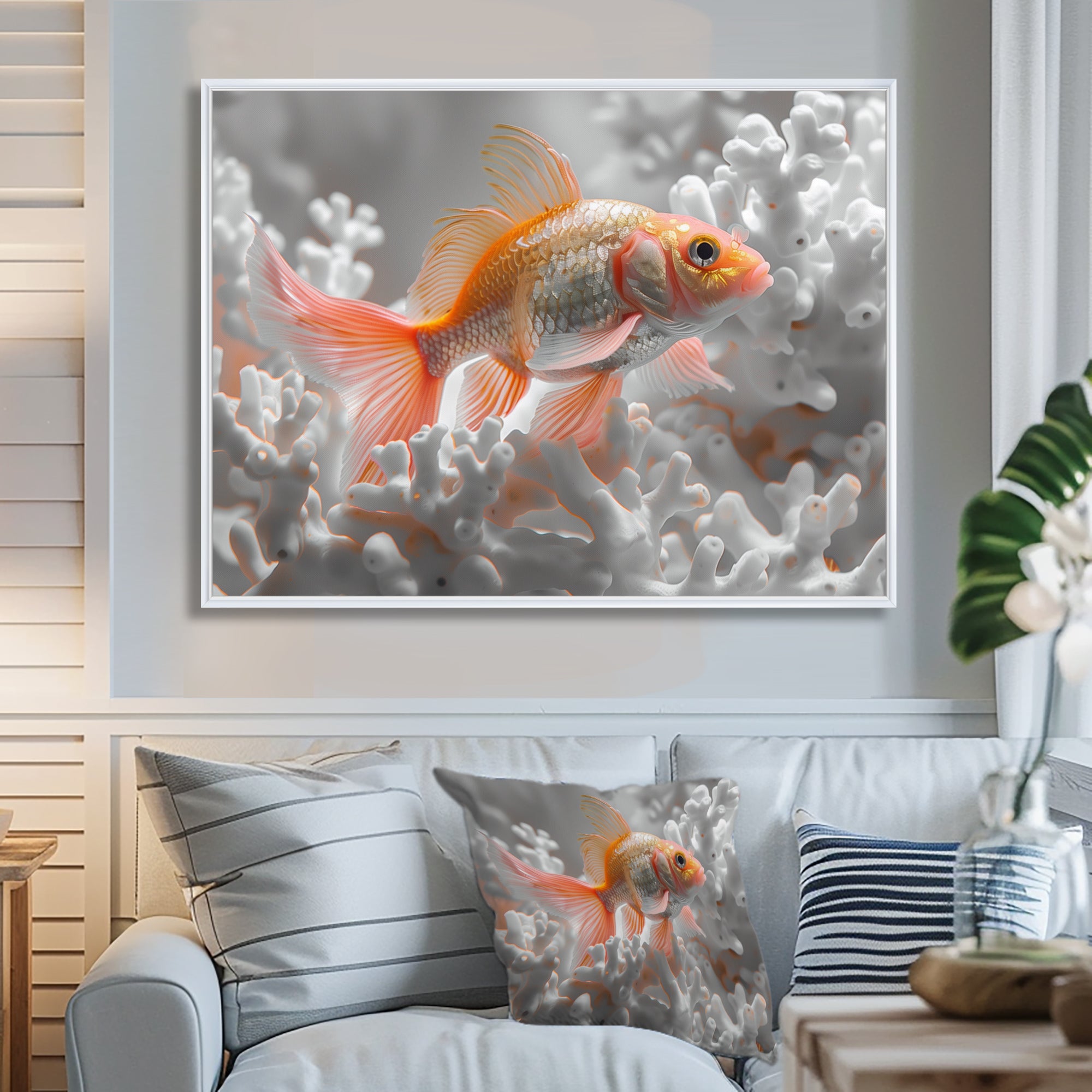 This beautiful Orange white fish coral dream Canvas Art is printed using the highest quality fade-resistant ink on canvas. Every one of our fine art giclee canvas prints is printed on premium quality cotton canvas, using the finest quality inks which will not fade over time. Each giclee print is stretched tightly over a 1-inch wood sub frame for small size prints or a 1.5-inch wood subframe for large size prints ensuring the canvas is taught and does not buckle. This canvas art print is gallery-wrapped (the design continues on the sides), giving it a real art gallery feel. All of our canvas prints are carefully packaged with plastic protection, fragile labeling, and sturdy boxes to ensure safe delivery. Every canvas print arrives ready to hang on the wall, with the hanging kits included.