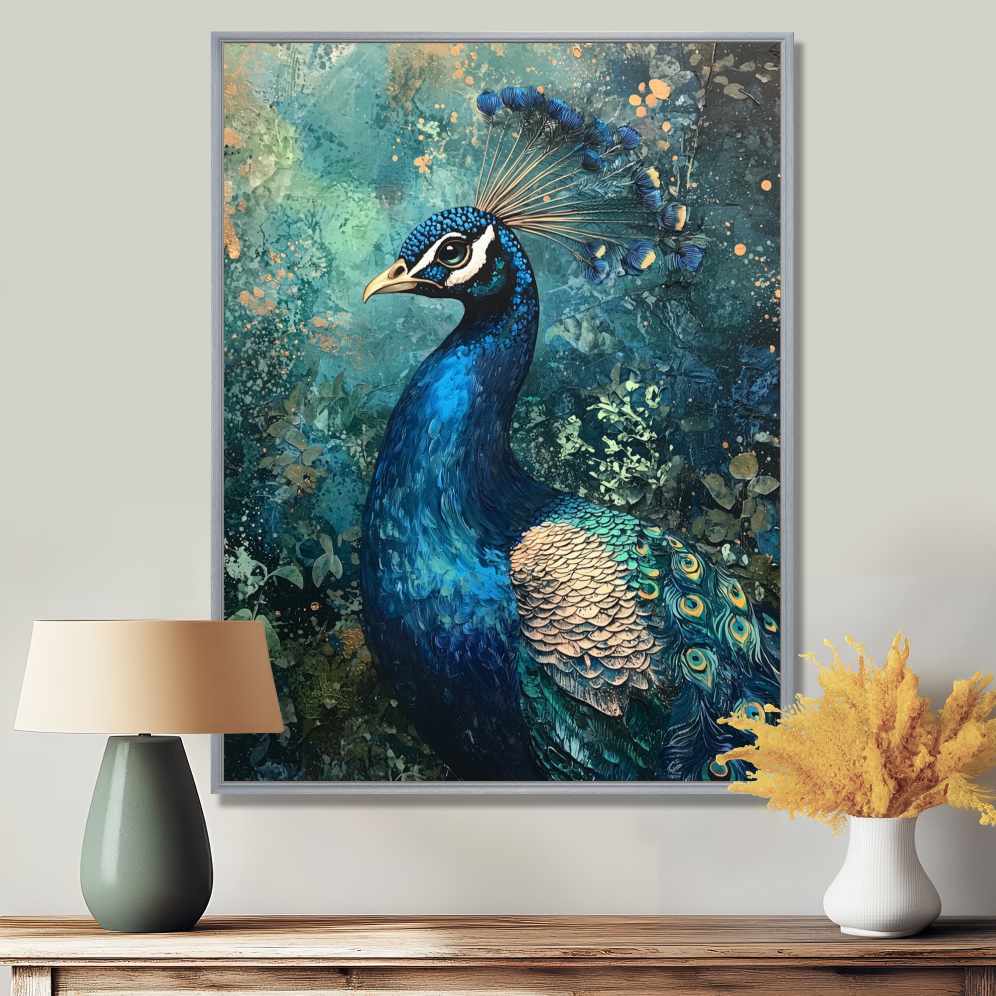 Peacock At The Garden Gate - Blue Bird Wall Art