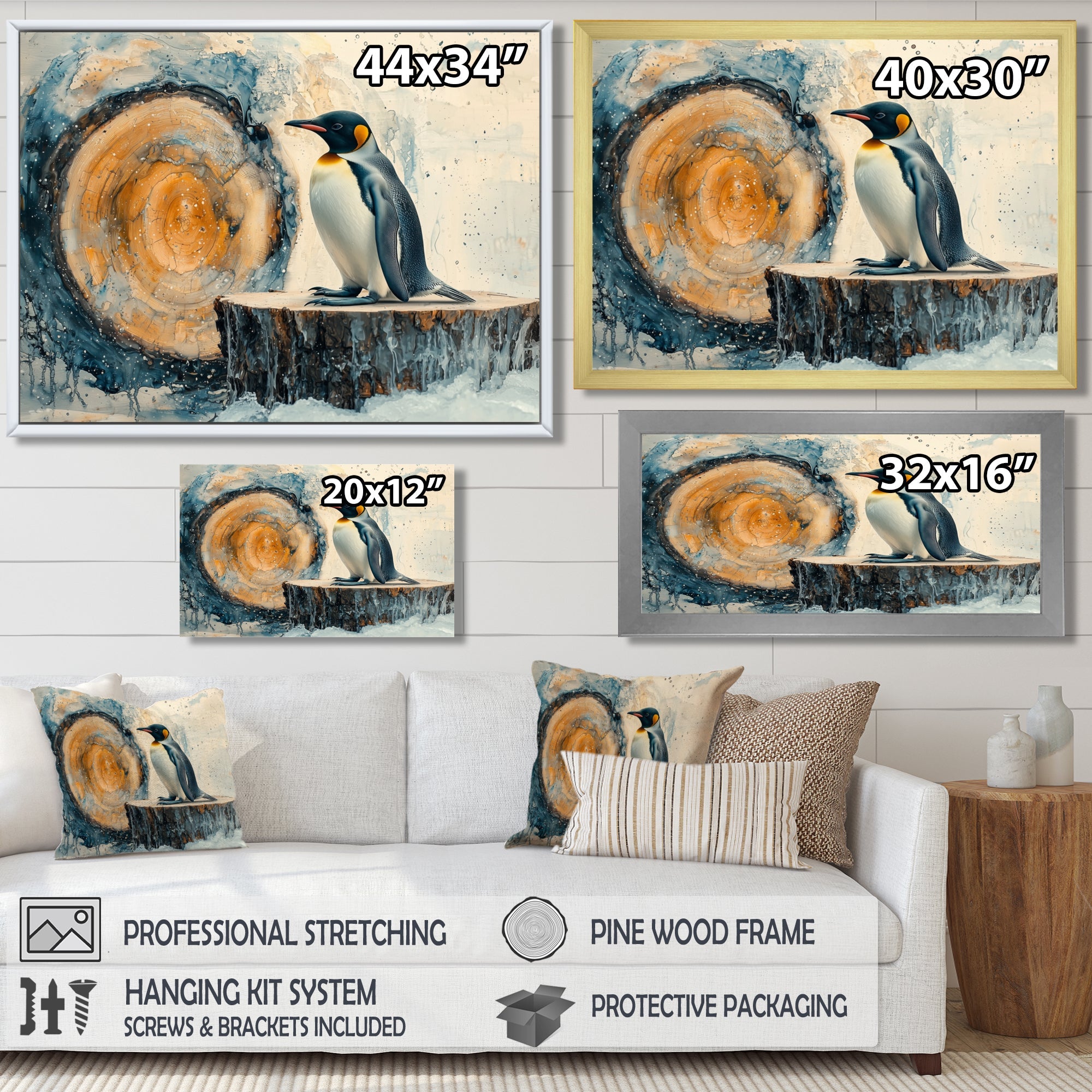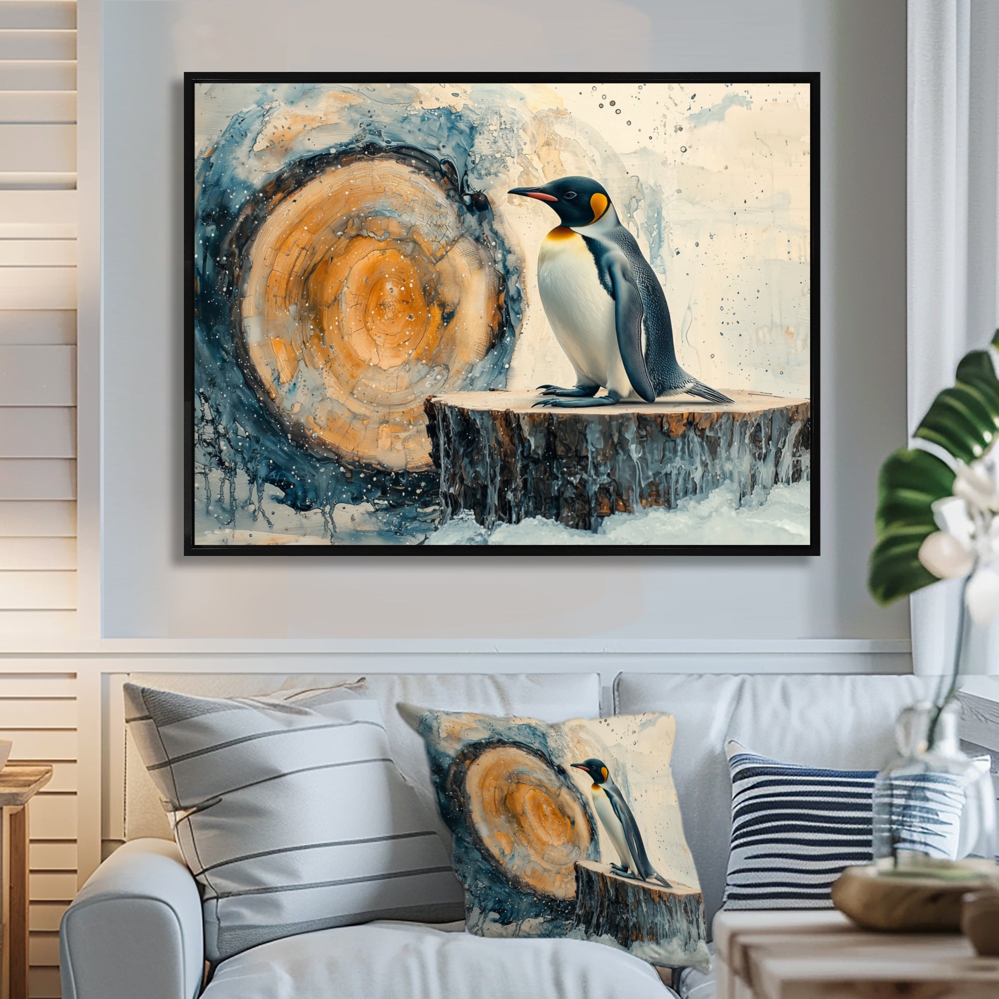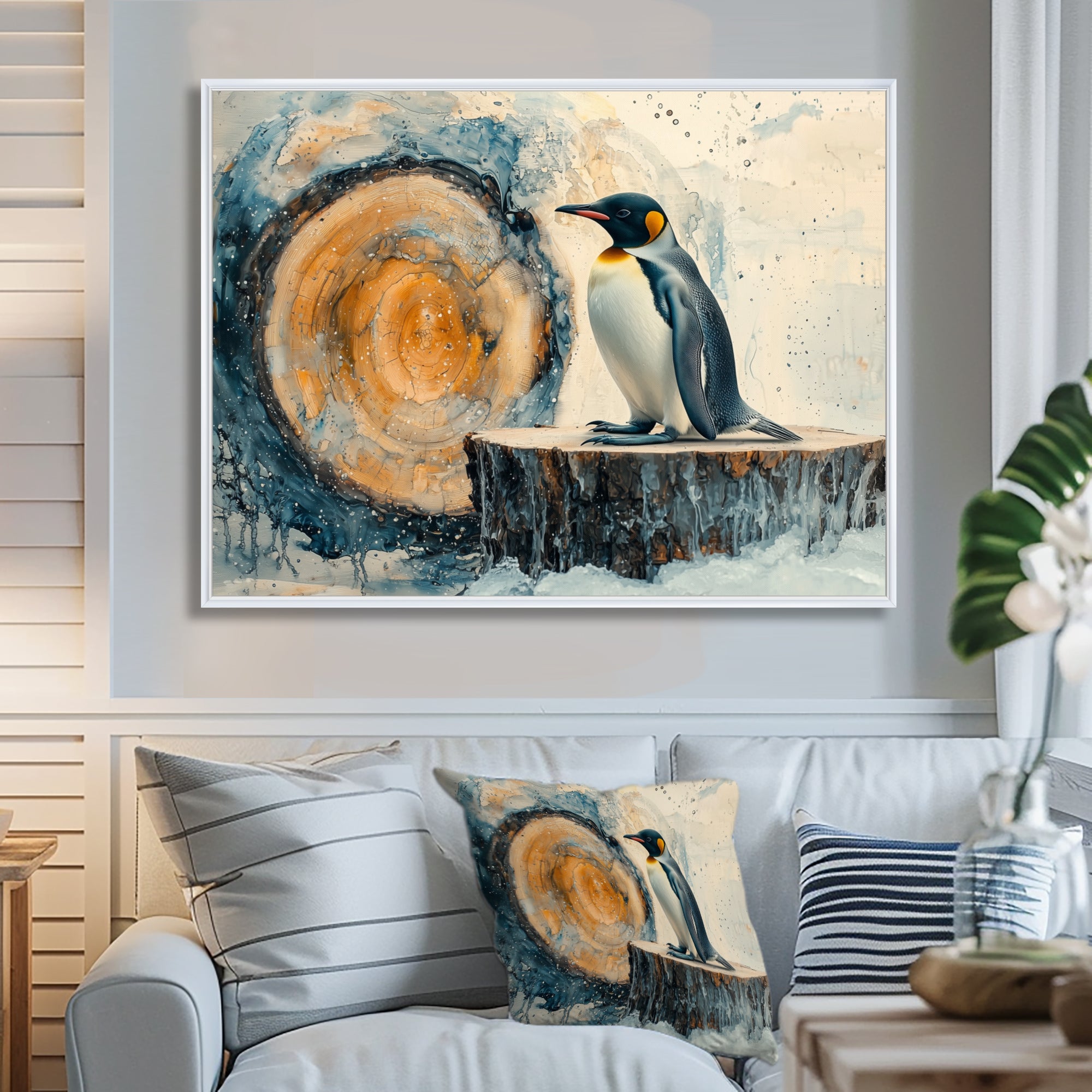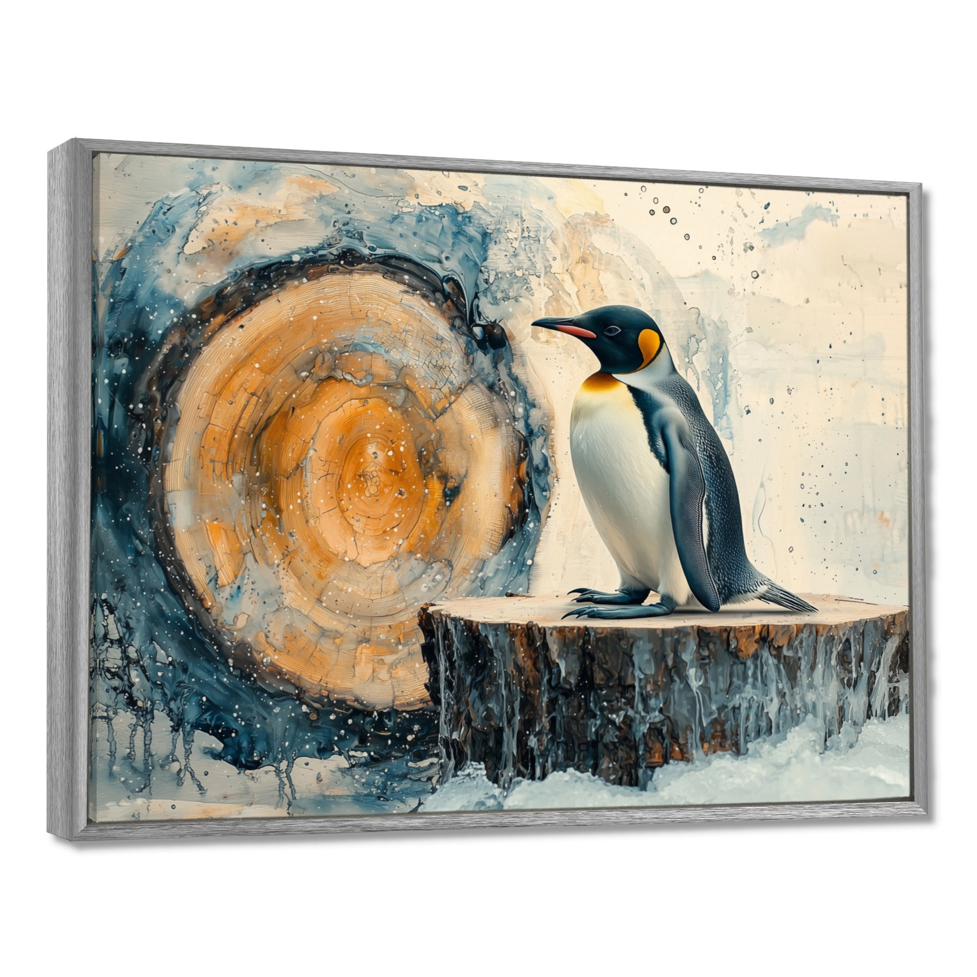 Penguin In A Winter Landscape - Penguin Framed Canvas Art