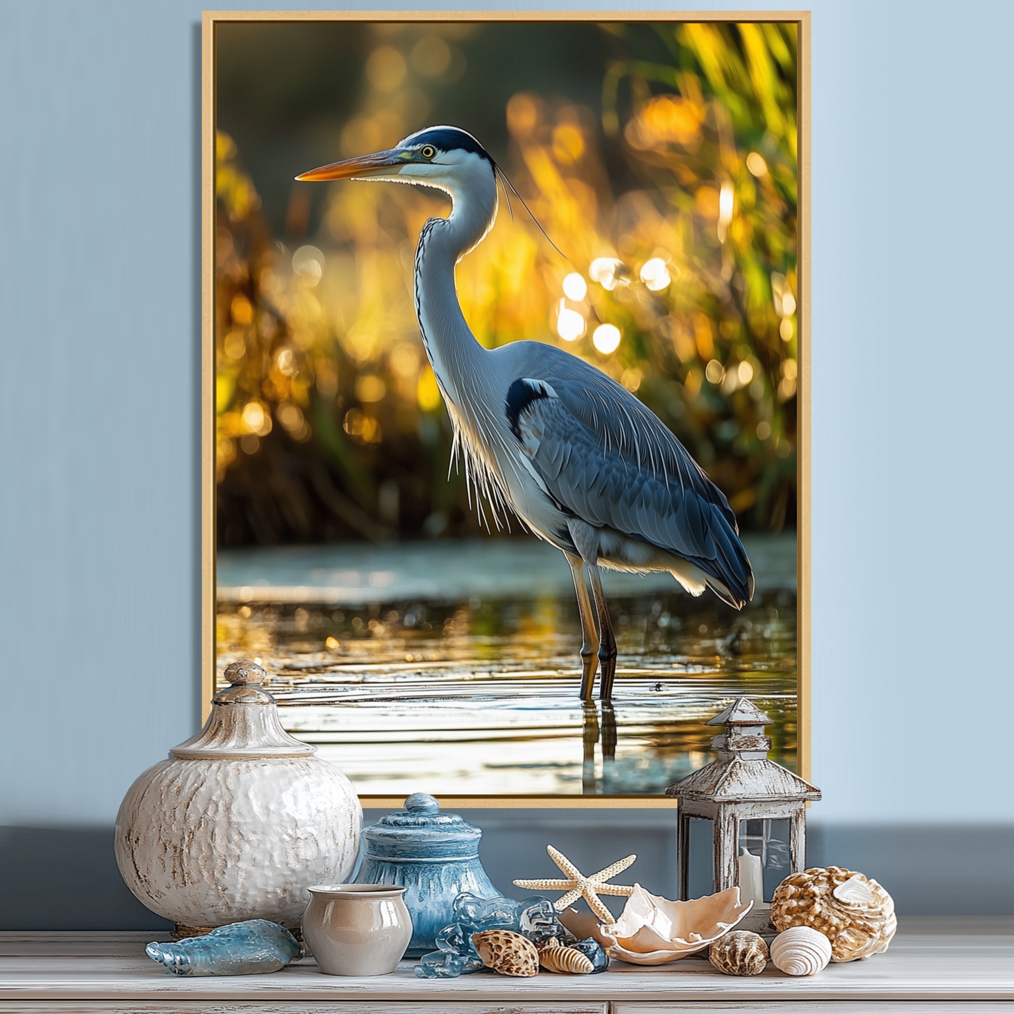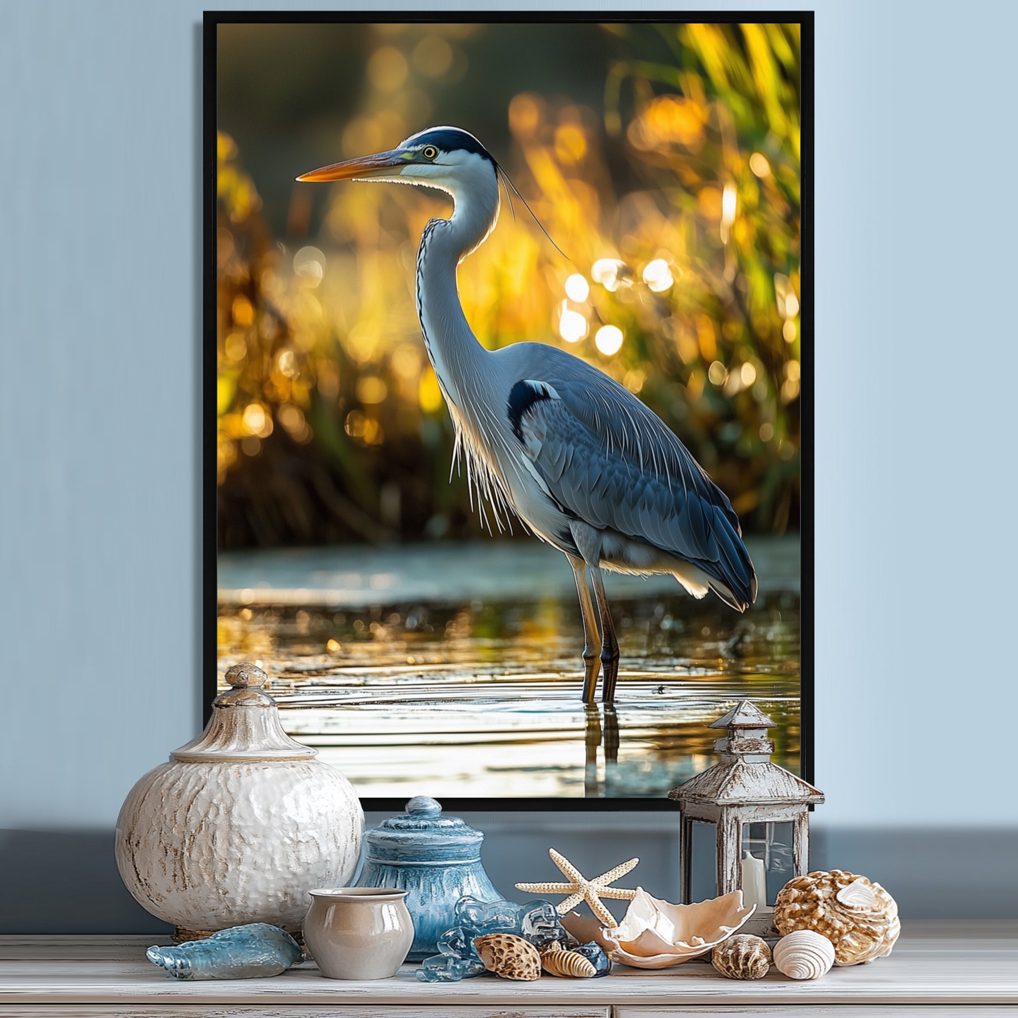 Photo Of Heron At The Farm Lake - Grey Heron Wall Art