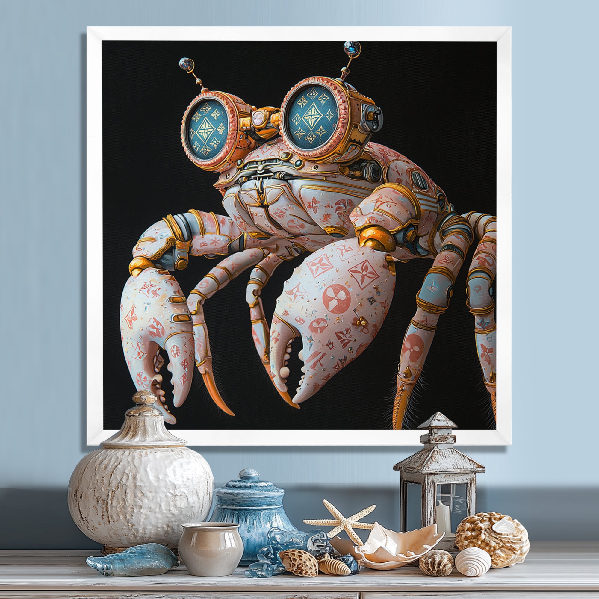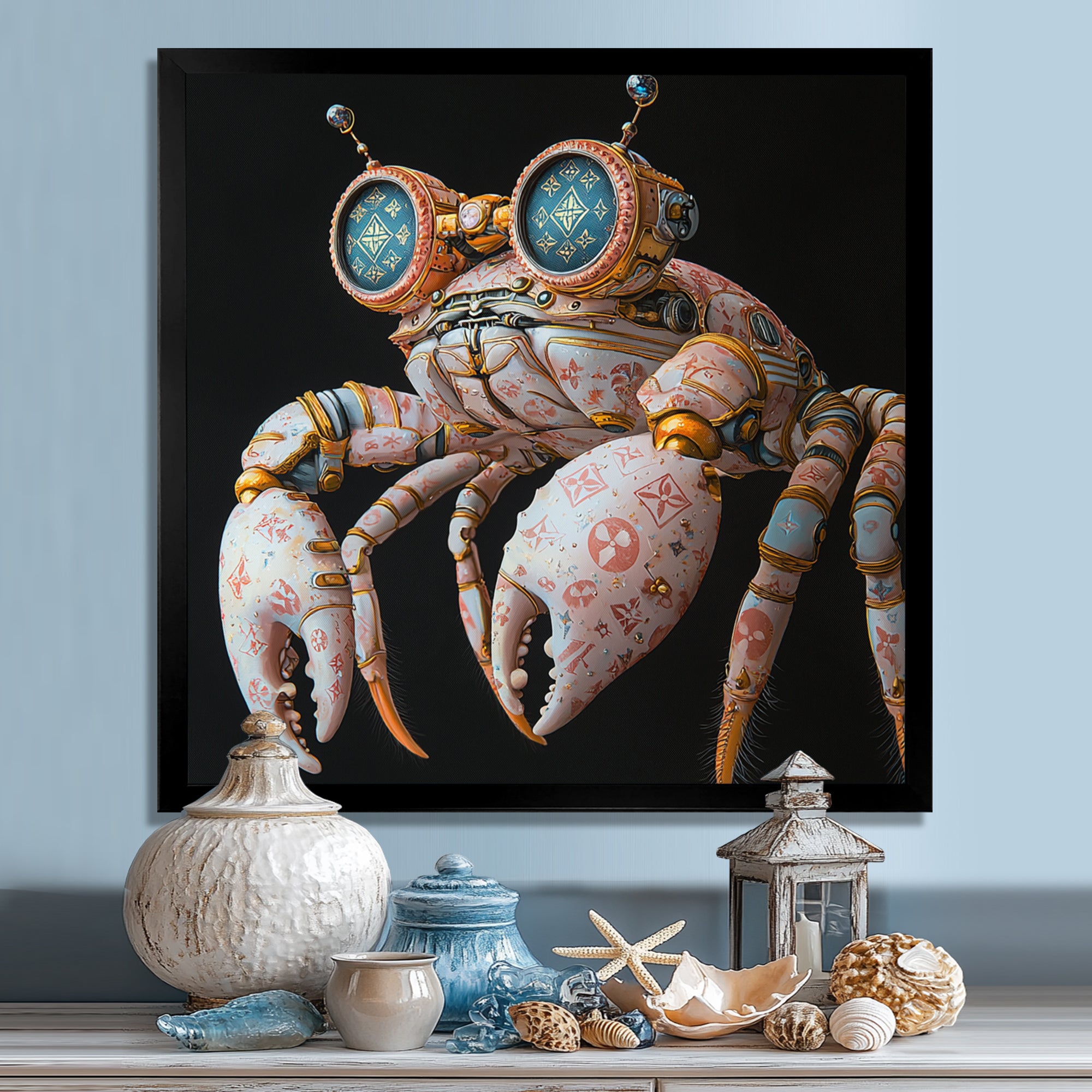 Pink And Blue Crab A Walking Robot - Crab Framed Canvas Art