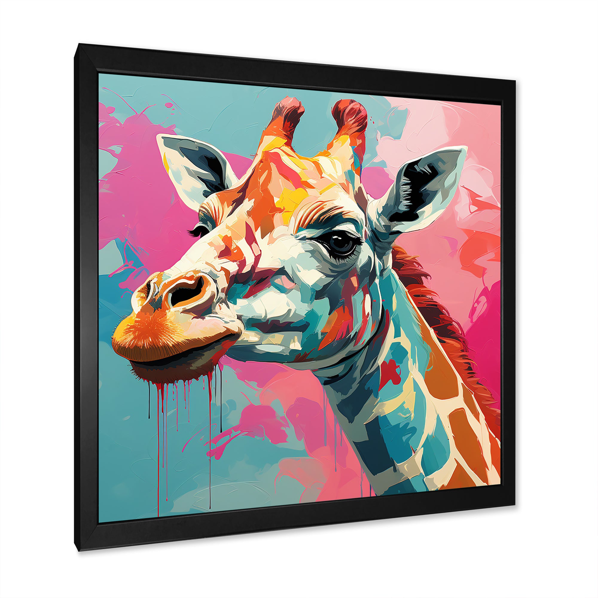 Pink and green Giraffe Portrait - Pink Giraffe Wall Art