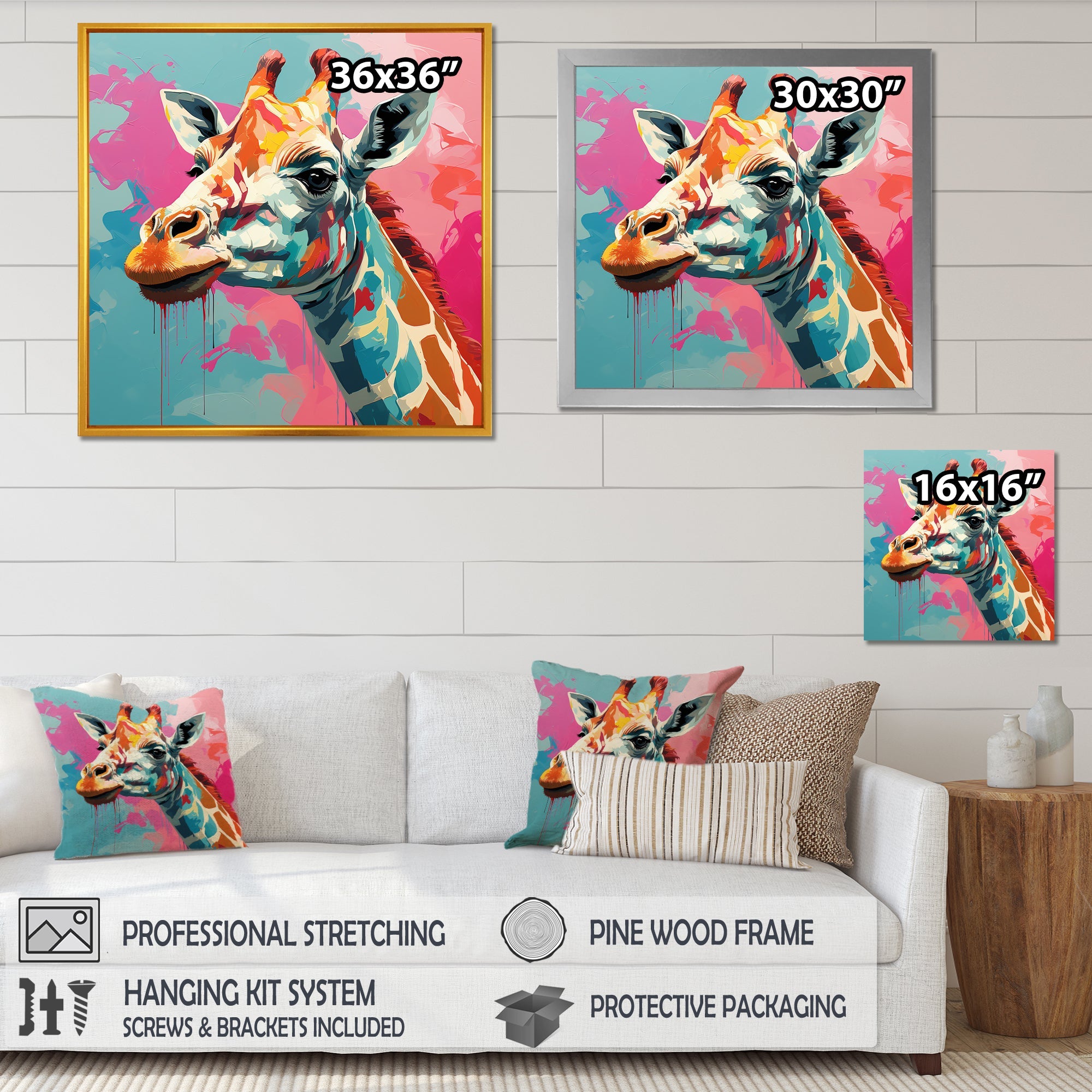 This beautiful Pink and green Giraffe Portrait Canvas Art is printed using the highest quality fade-resistant ink on canvas. Every one of our fine art giclee canvas prints is printed on premium quality cotton canvas, using the finest quality inks which will not fade over time. Each giclee print is stretched tightly over a 1-inch wood sub frame for small size prints or a 1.5-inch wood subframe for large size prints ensuring the canvas is taught and does not buckle. This canvas art print is gallery-wrapped (the design continues on the sides), giving it a real art gallery feel. All of our canvas prints are carefully packaged with plastic protection, fragile labeling, and sturdy boxes to ensure safe delivery. Every canvas print arrives ready to hang on the wall, with the hanging kits included.