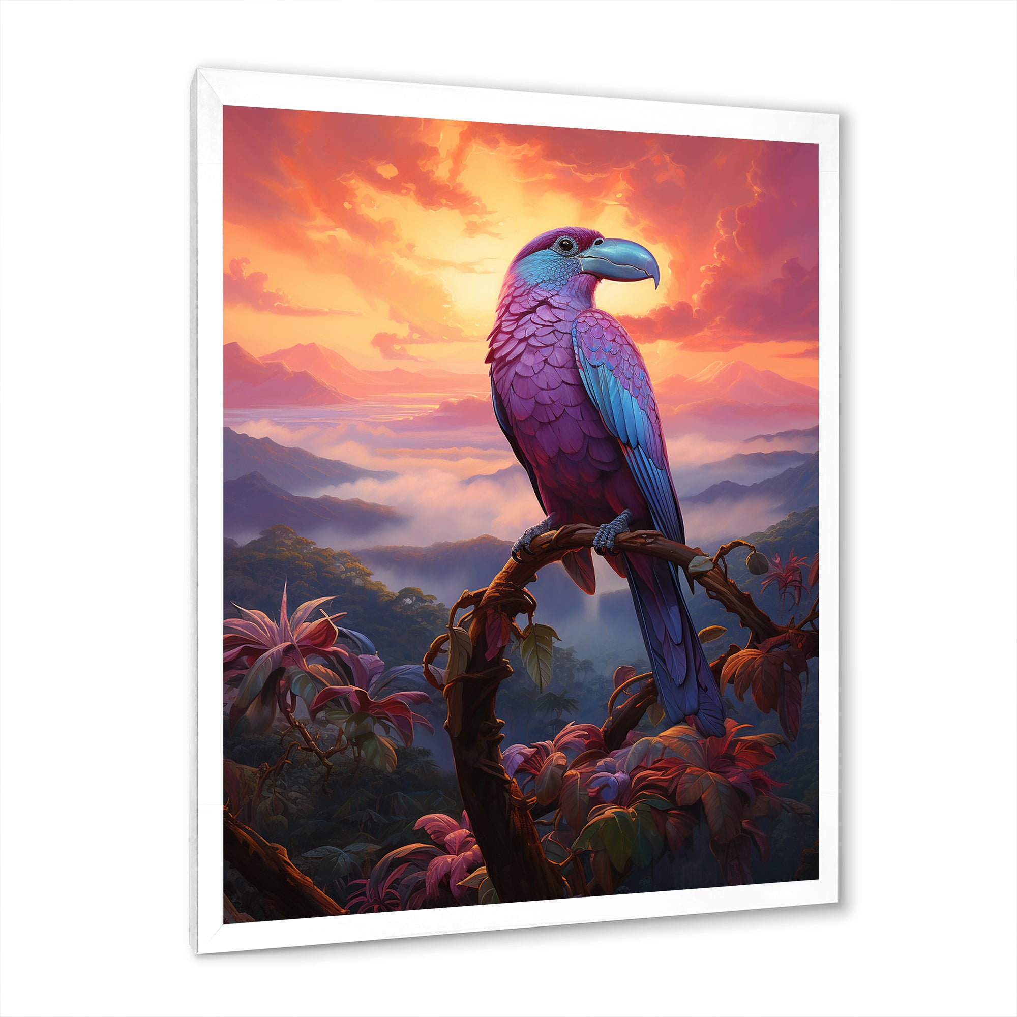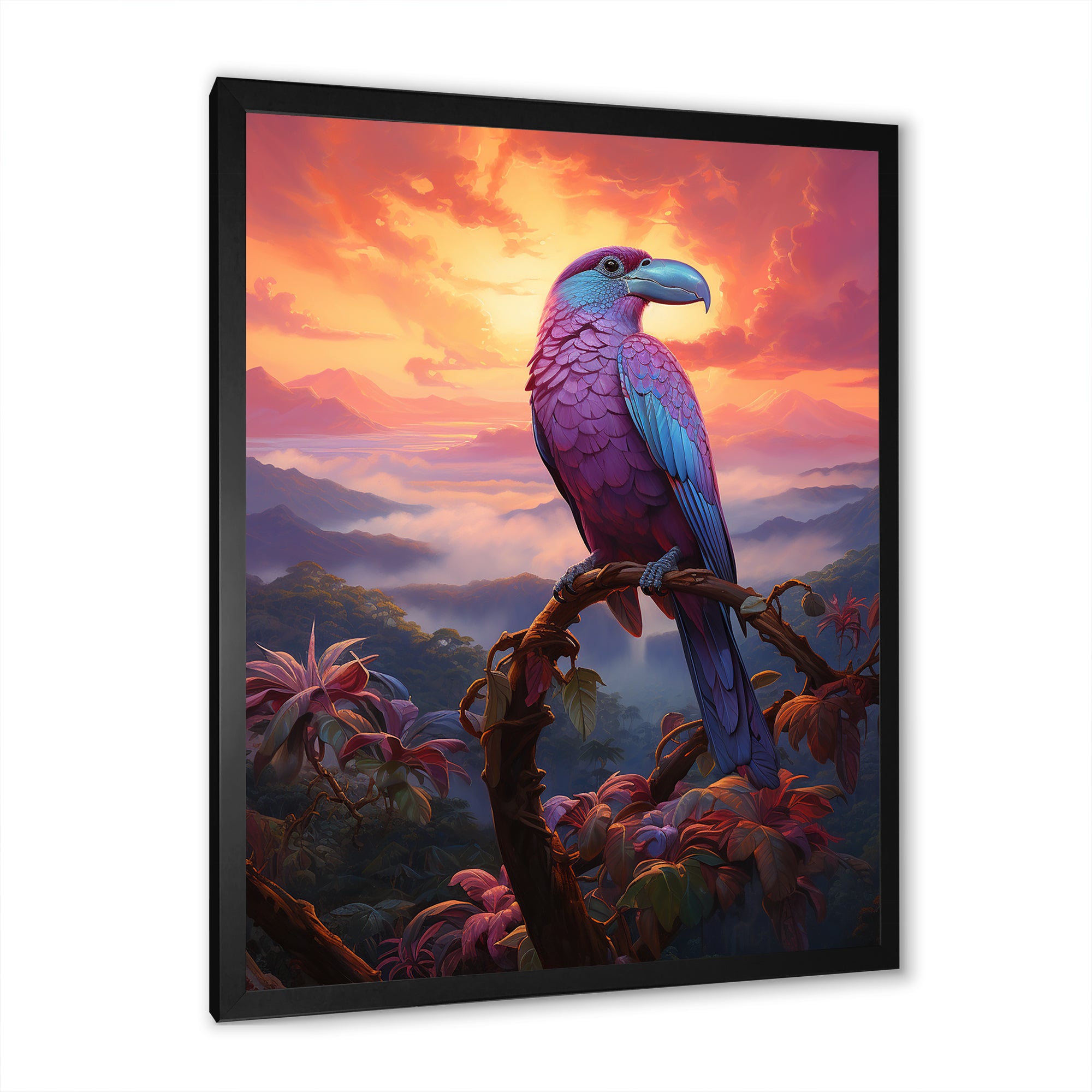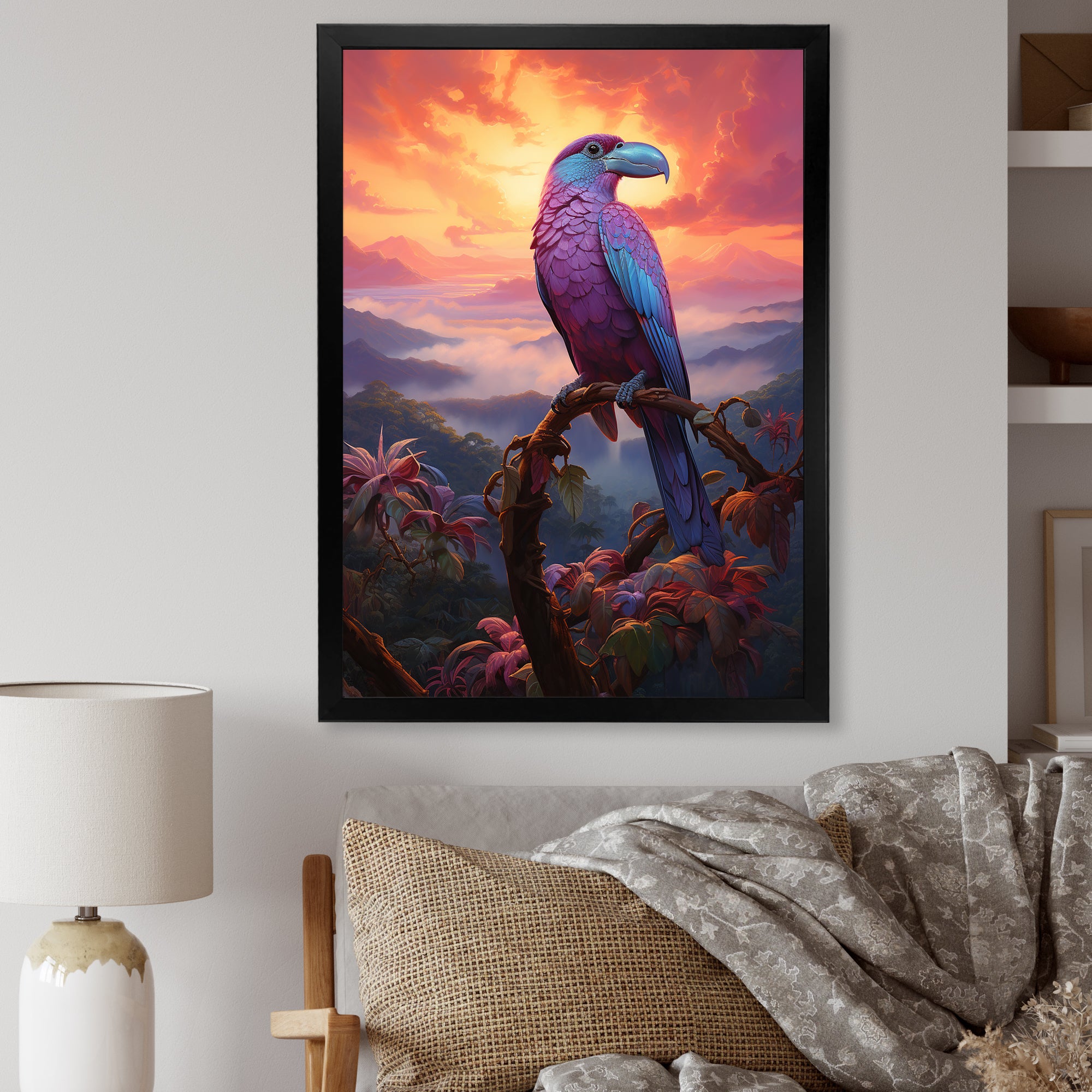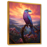 Pink and yellow Tropical Toucan jungle sunset - Toucan Framed Canvas Art
