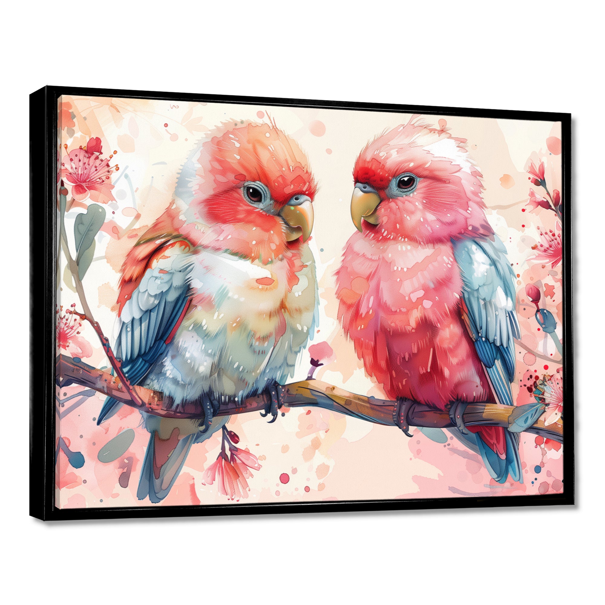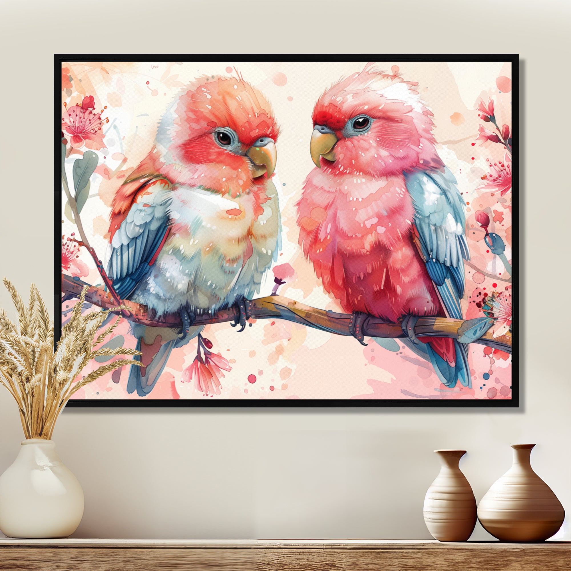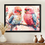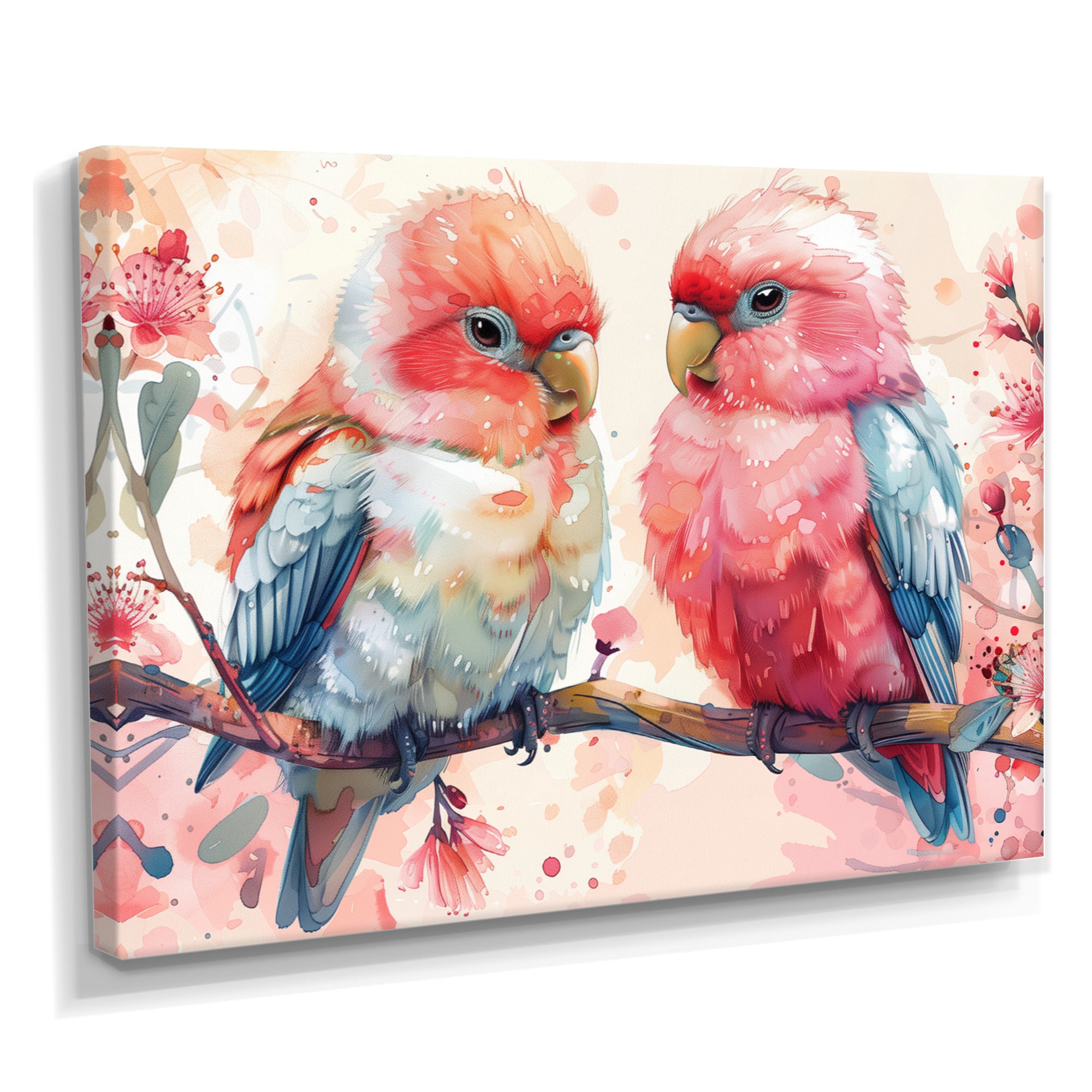 Pink blue parrots on a floral branch - Parrot Living Room Wall Art