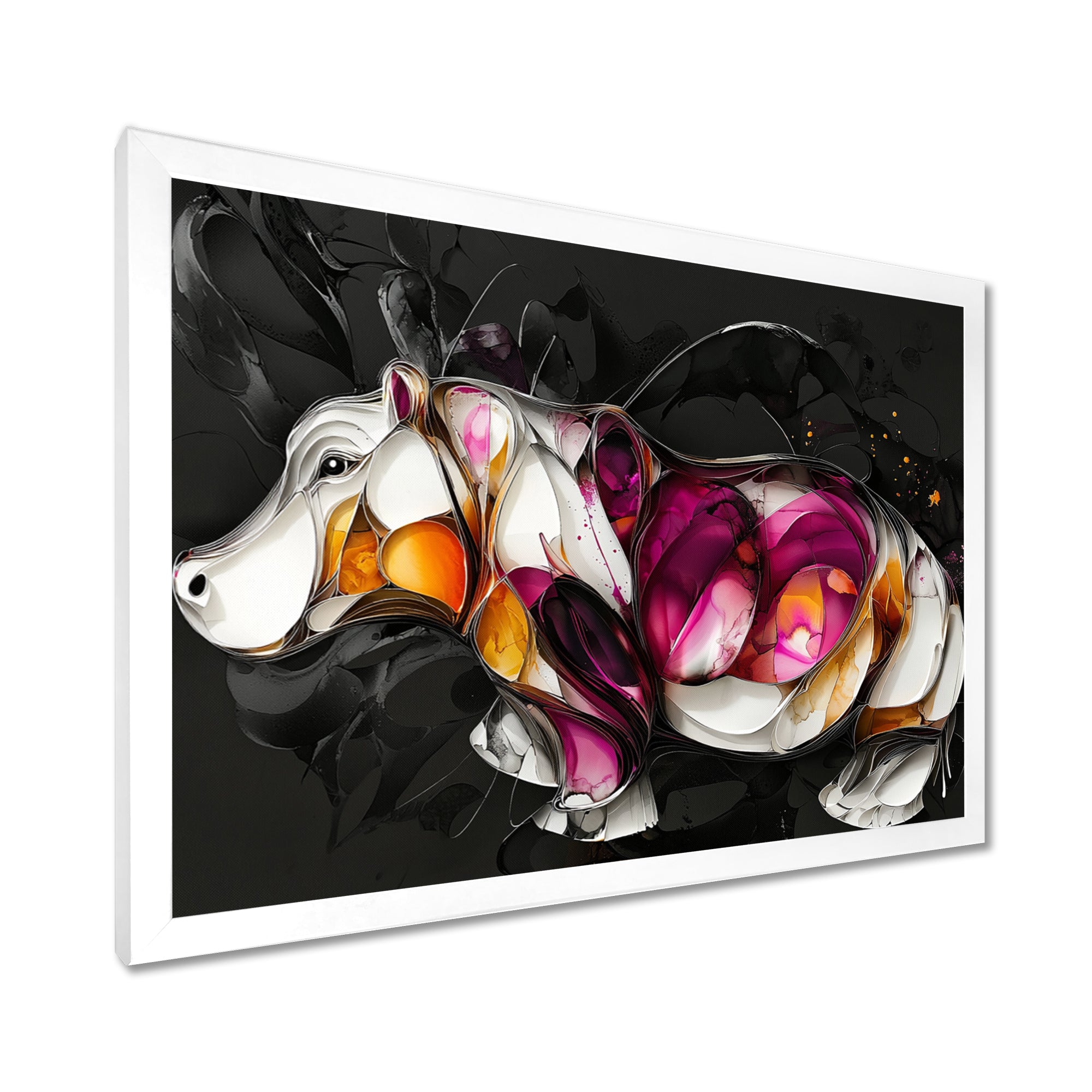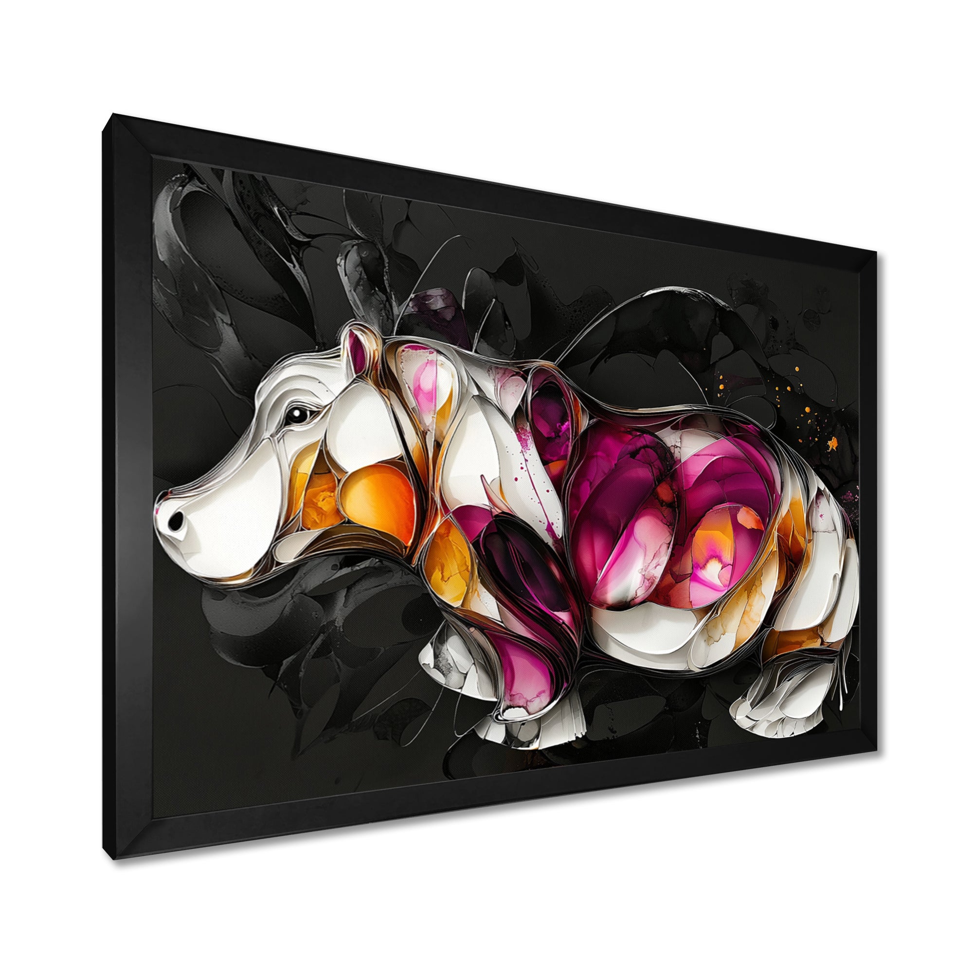 Pink Cubist Hippo Accented With Orange - Hippopotamus Wall Art Prints