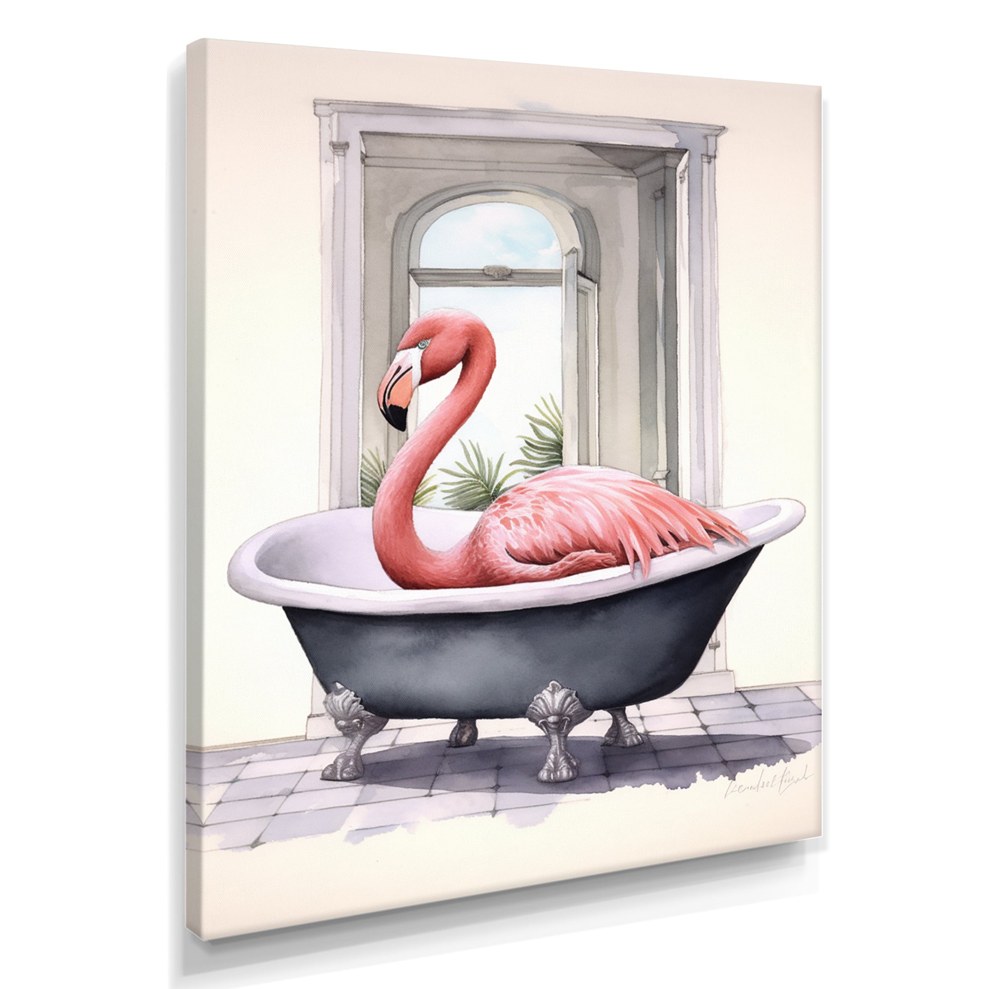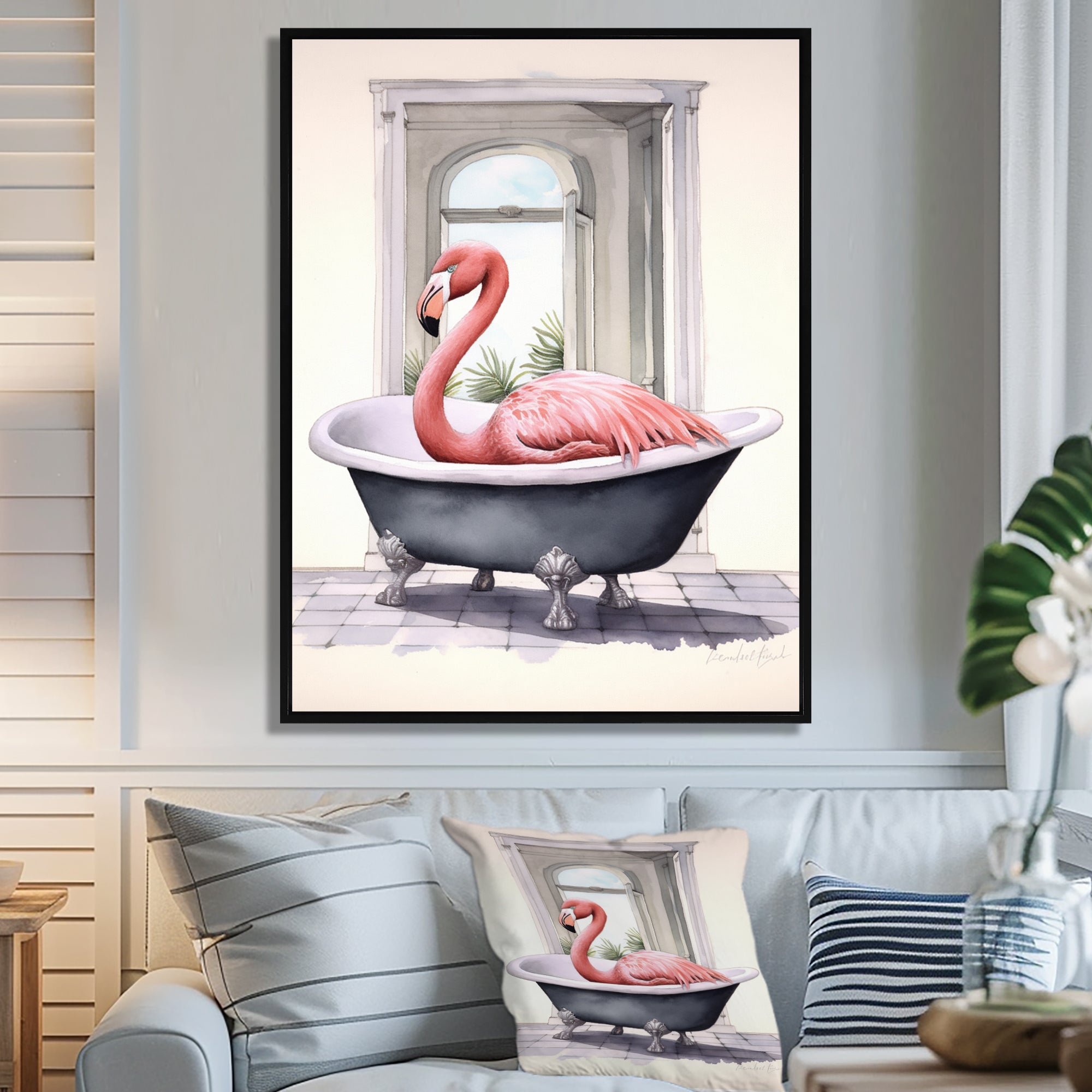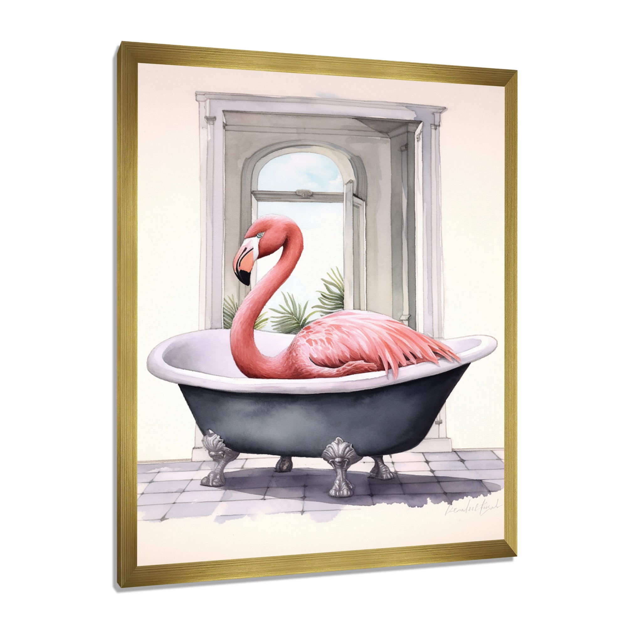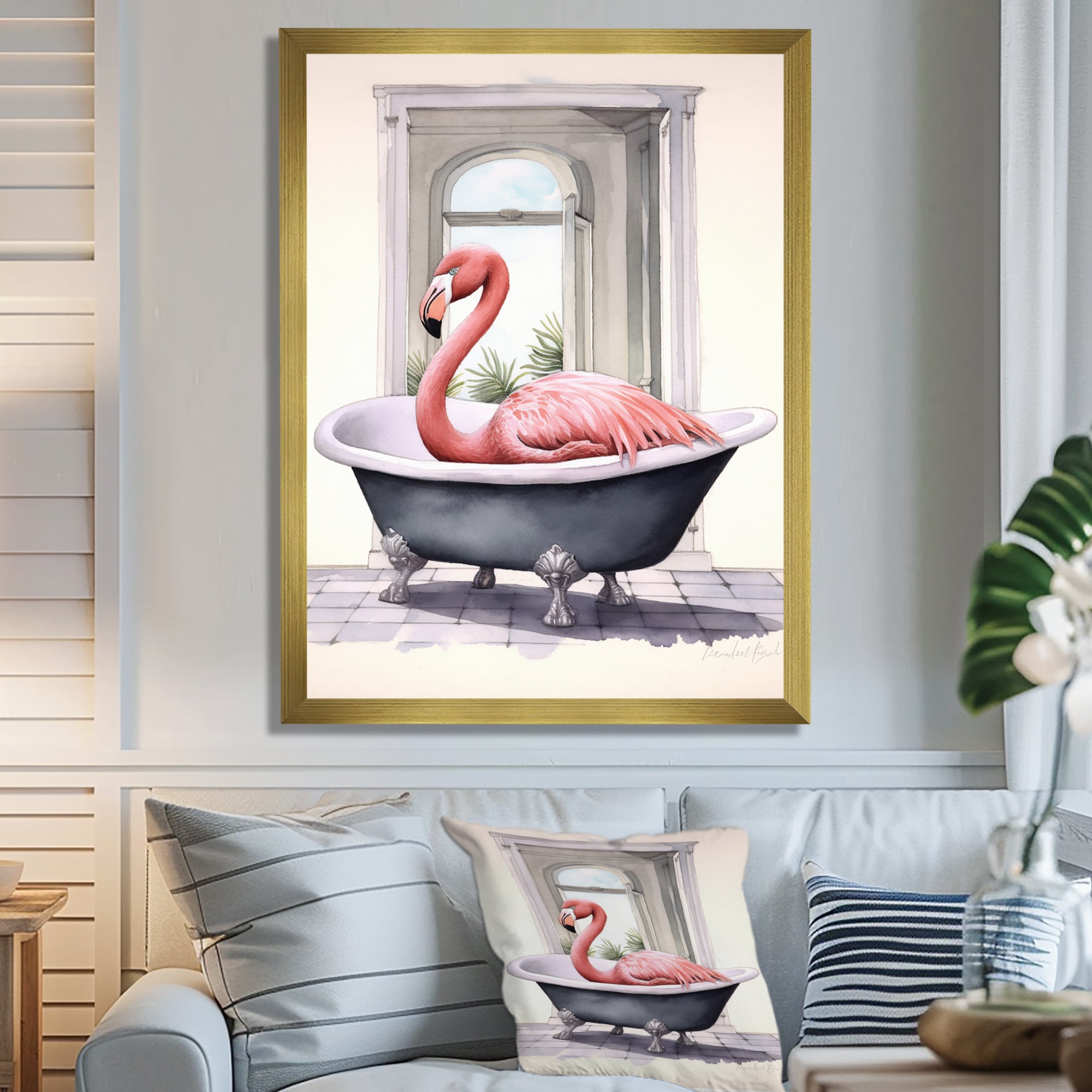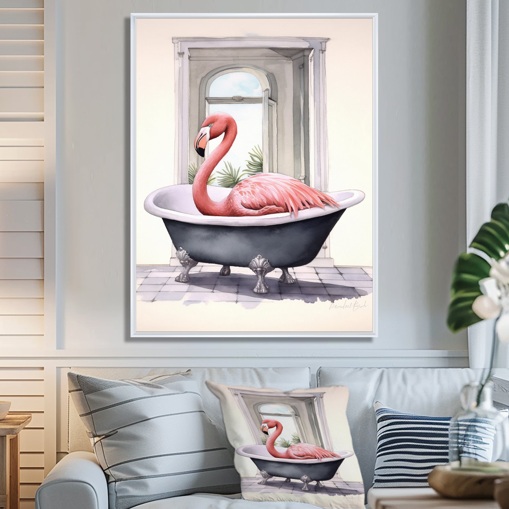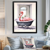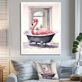 Pink Flamingo In Bathtub - Flamingo Bedroom Wall Art