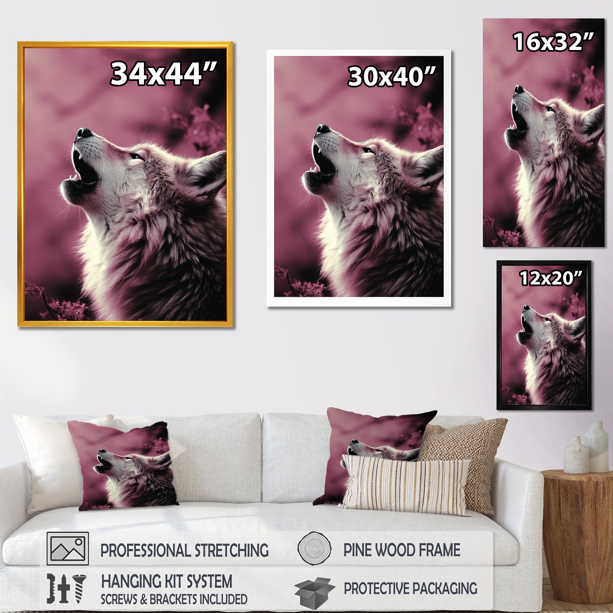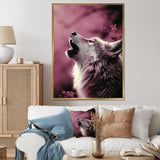 Pink Howling wolf at sunset - Wolf Wall Decor