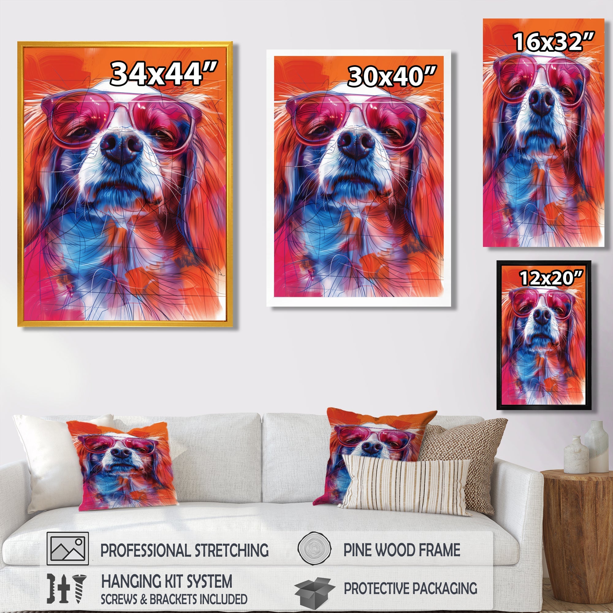 This beautiful Pink white sunglasses border collie portrait Canvas Art is printed using the highest quality fade-resistant ink on canvas. Every one of our fine art giclee canvas prints is printed on premium quality cotton canvas, using the finest quality inks which will not fade over time. Each giclee print is stretched tightly over a 1-inch wood sub frame for small size prints or a 1.5-inch wood subframe for large size prints ensuring the canvas is taught and does not buckle. This canvas art print is gallery-wrapped (the design continues on the sides), giving it a real art gallery feel. All of our canvas prints are carefully packaged with plastic protection, fragile labeling, and sturdy boxes to ensure safe delivery. Every canvas print arrives ready to hang on the wall, with the hanging kits included.