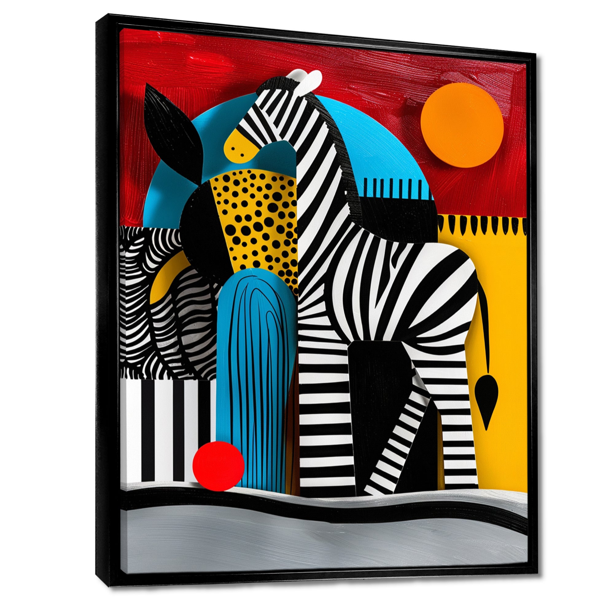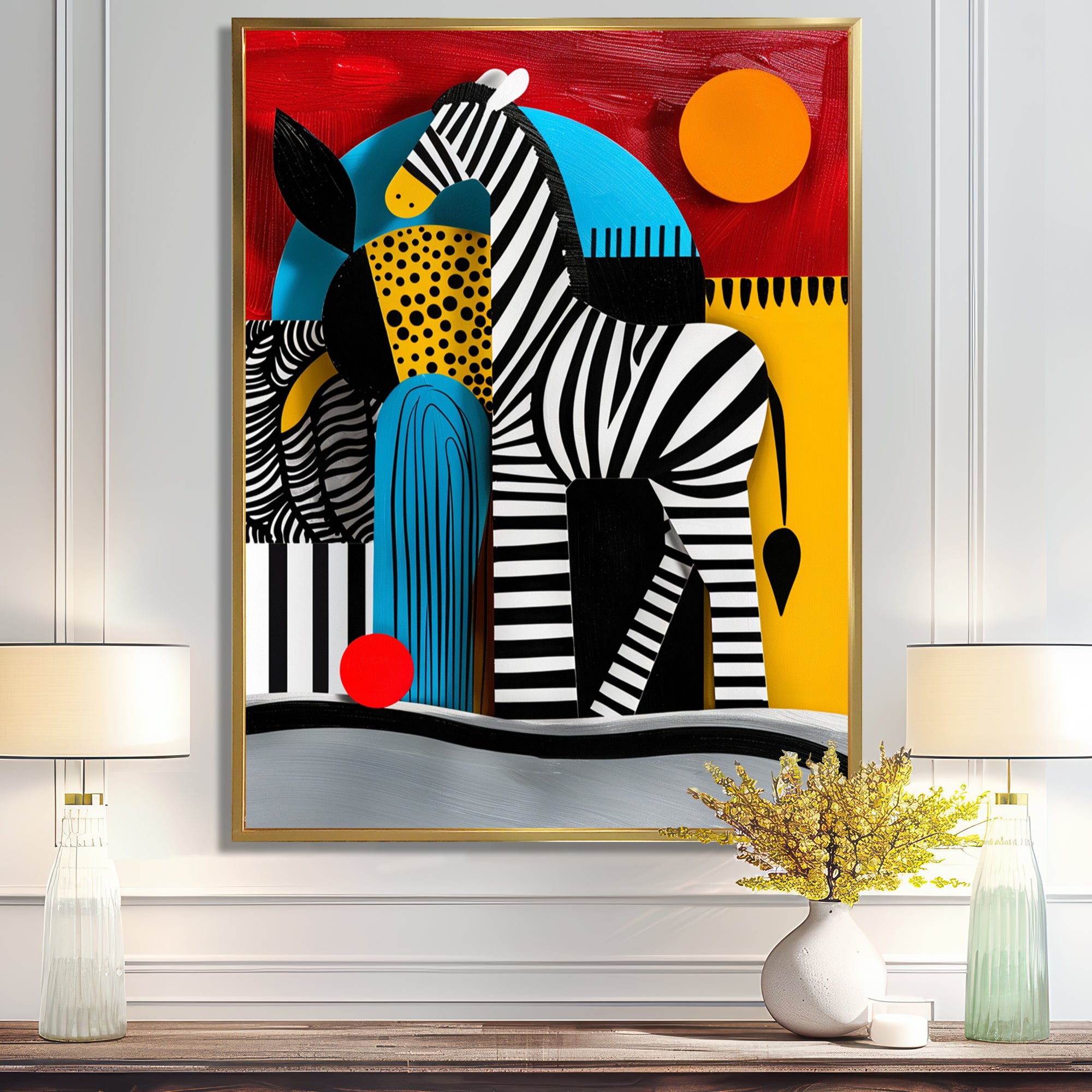 Playful Zebra Geometric Retro Abstract - Zebra Home Decor Art