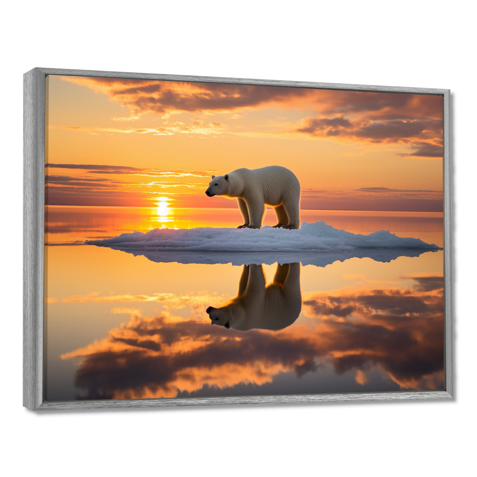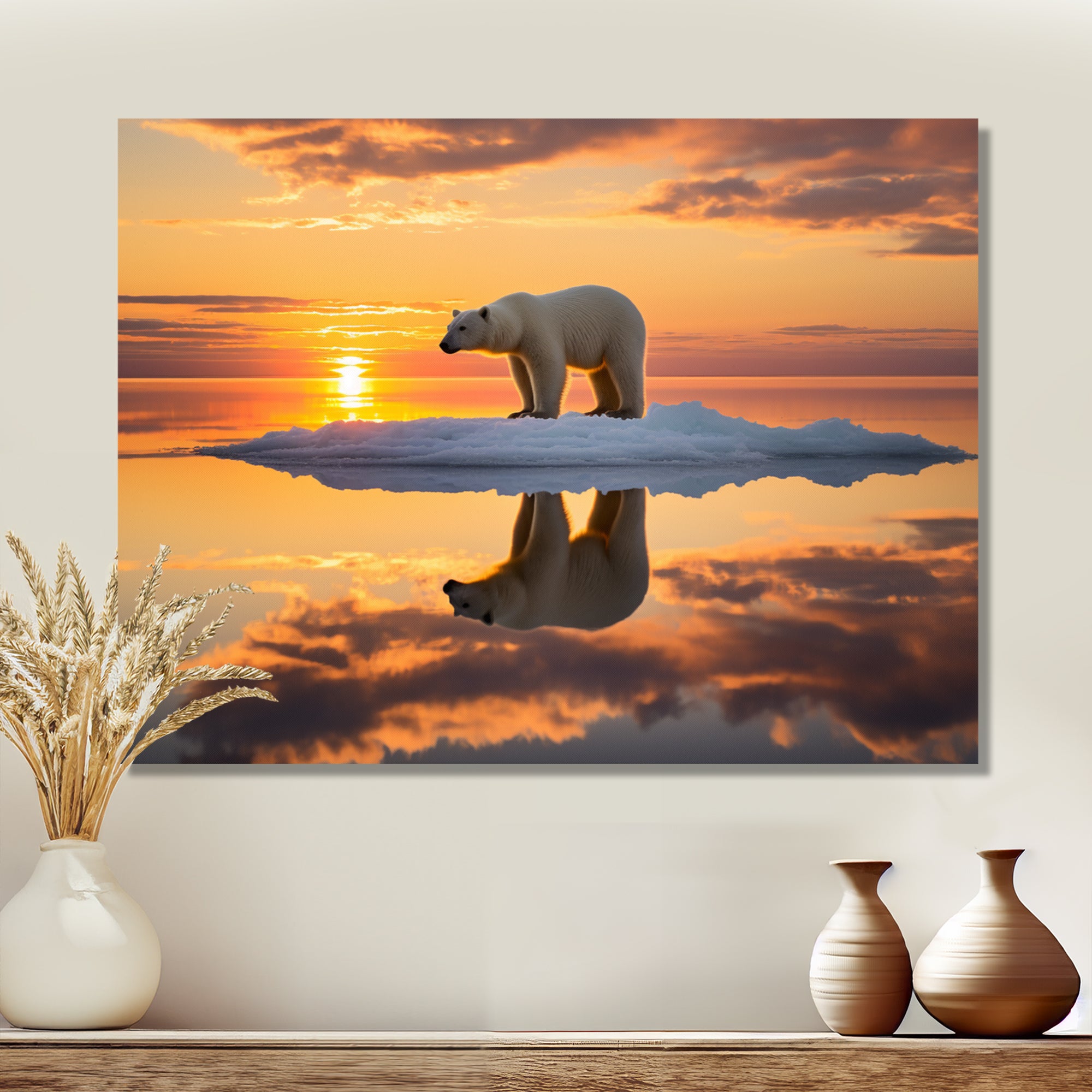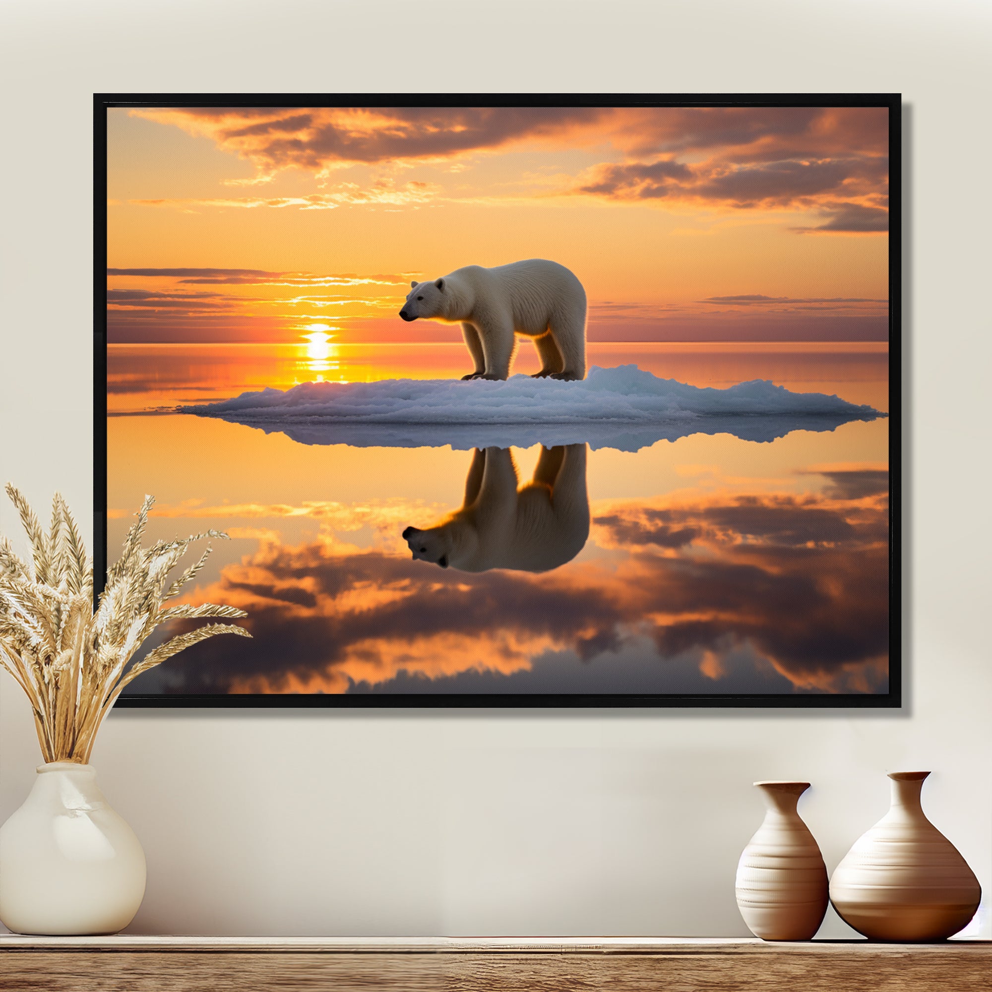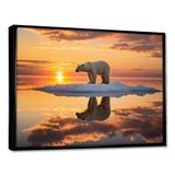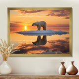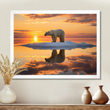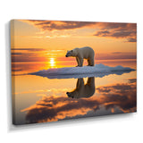 Polar Bear On Iceberg Pink Sunset - Bear Landscape Bedroom Wall Art