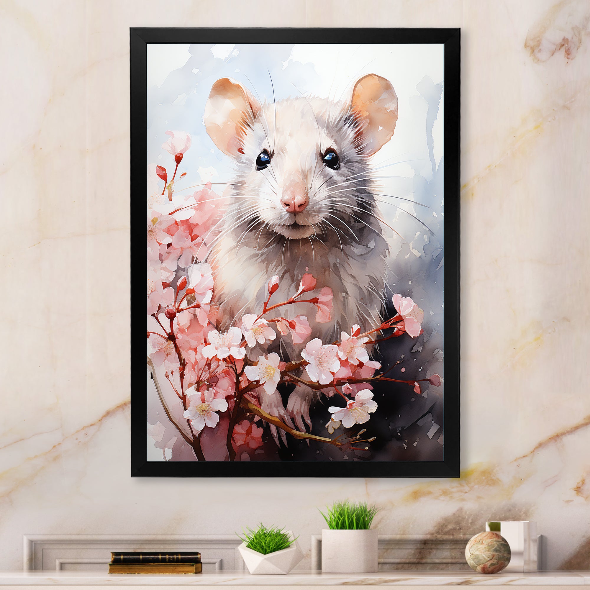 Rats floral Portrait blooms - Rodent Bedroom Wall Art