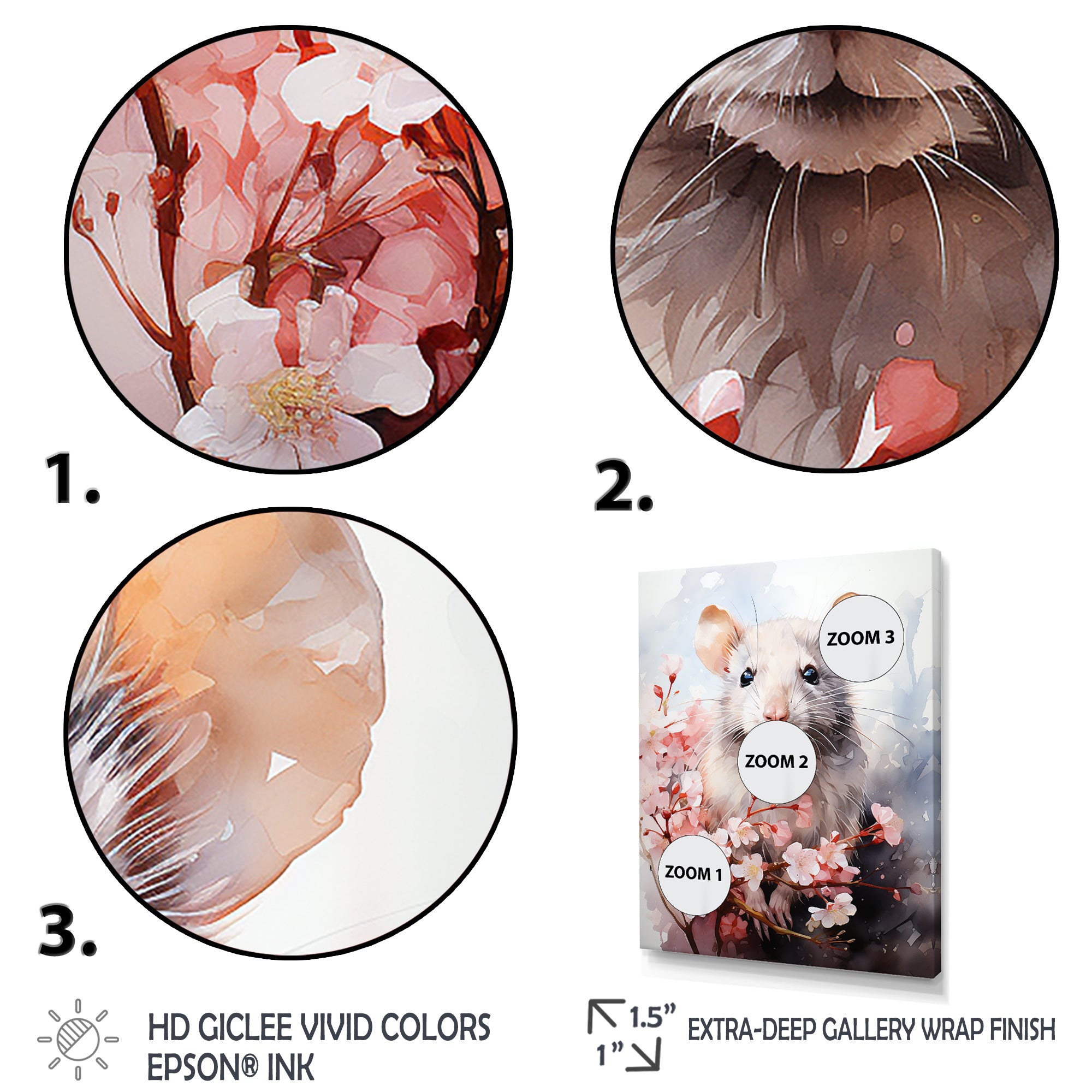 This beautiful Rats floral Portrait blooms Canvas Art is printed using the highest quality fade-resistant ink on canvas. Every one of our fine art giclee canvas prints is printed on premium quality cotton canvas, using the finest quality inks which will not fade over time. Each giclee print is stretched tightly over a 1-inch wood sub frame for small size prints or a 1.5-inch wood subframe for large size prints ensuring the canvas is taught and does not buckle. This canvas art print is gallery-wrapped (the design continues on the sides), giving it a real art gallery feel. All of our canvas prints are carefully packaged with plastic protection, fragile labeling, and sturdy boxes to ensure safe delivery. Every canvas print arrives ready to hang on the wall, with the hanging kits included.