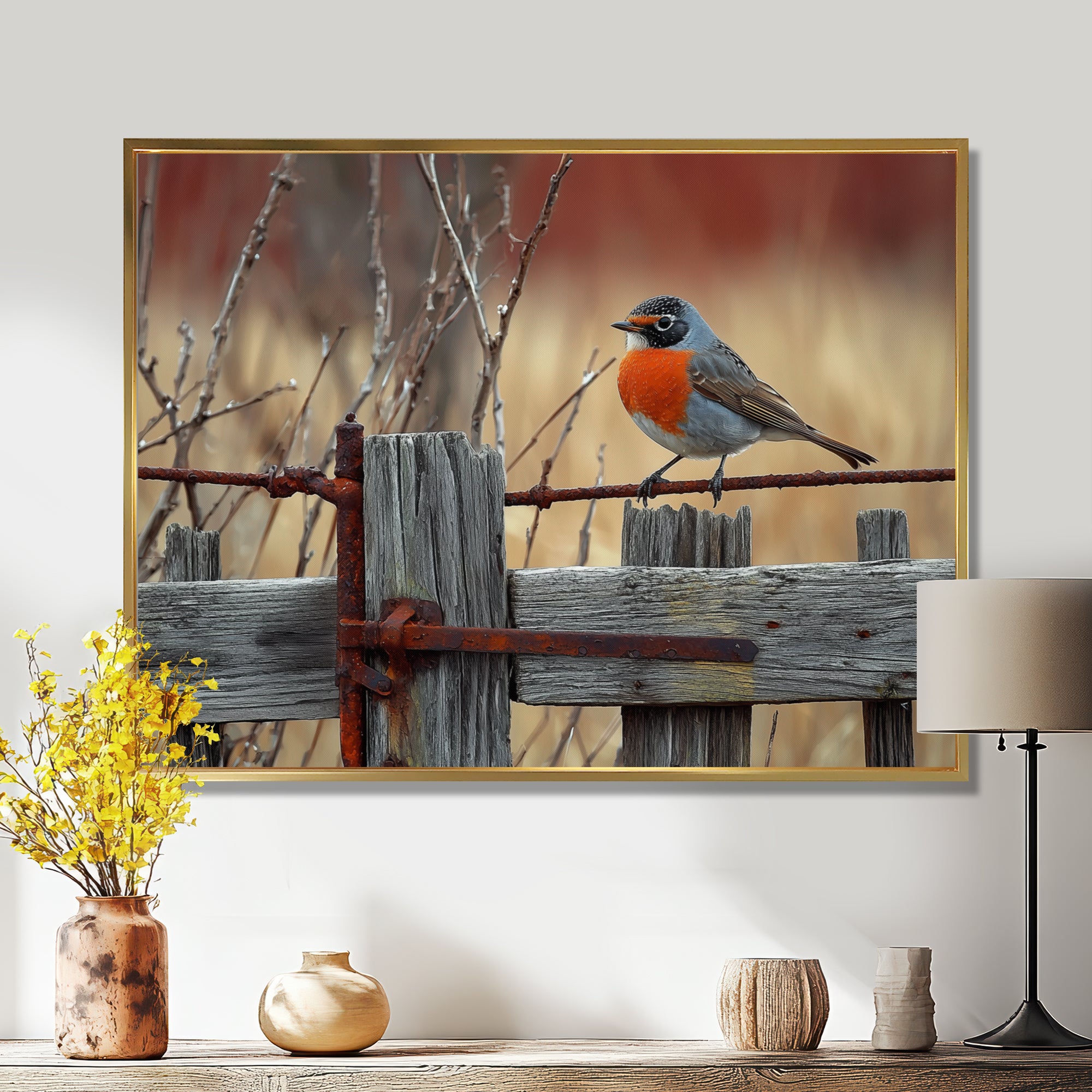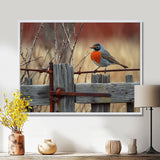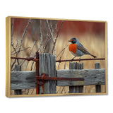 Robin Bird On The Farm Gate - Bird Framed Canvas Art