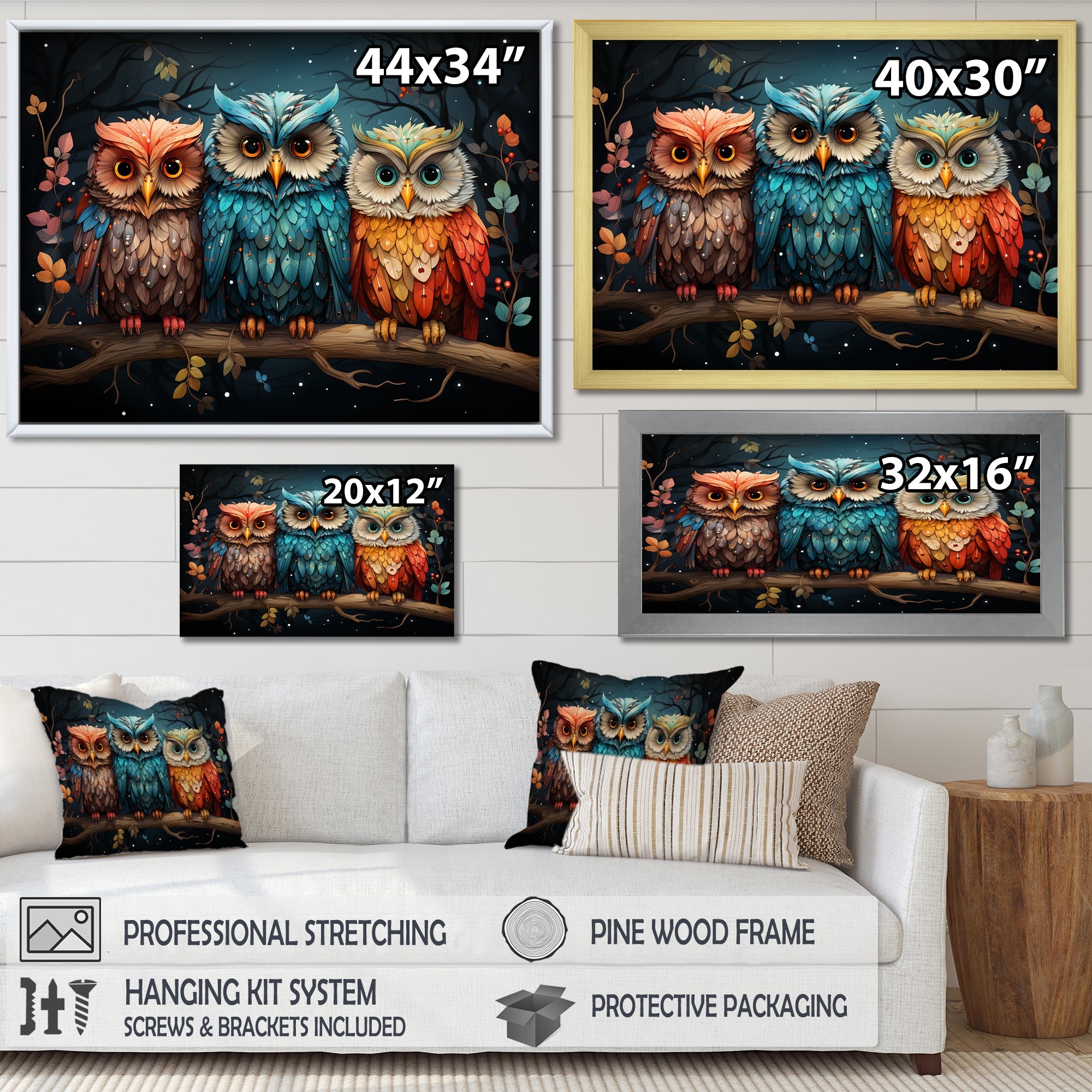 This beautiful Stalking forest owls Canvas Art is printed using the highest quality fade-resistant ink on canvas. Every one of our fine art giclee canvas prints is printed on premium quality cotton canvas, using the finest quality inks which will not fade over time. Each giclee print is stretched tightly over a 1-inch wood sub frame for small size prints or a 1.5-inch wood subframe for large size prints ensuring the canvas is taught and does not buckle. This canvas art print is gallery-wrapped (the design continues on the sides), giving it a real art gallery feel. All of our canvas prints are carefully packaged with plastic protection, fragile labeling, and sturdy boxes to ensure safe delivery. Every canvas print arrives ready to hang on the wall, with the hanging kits included.
