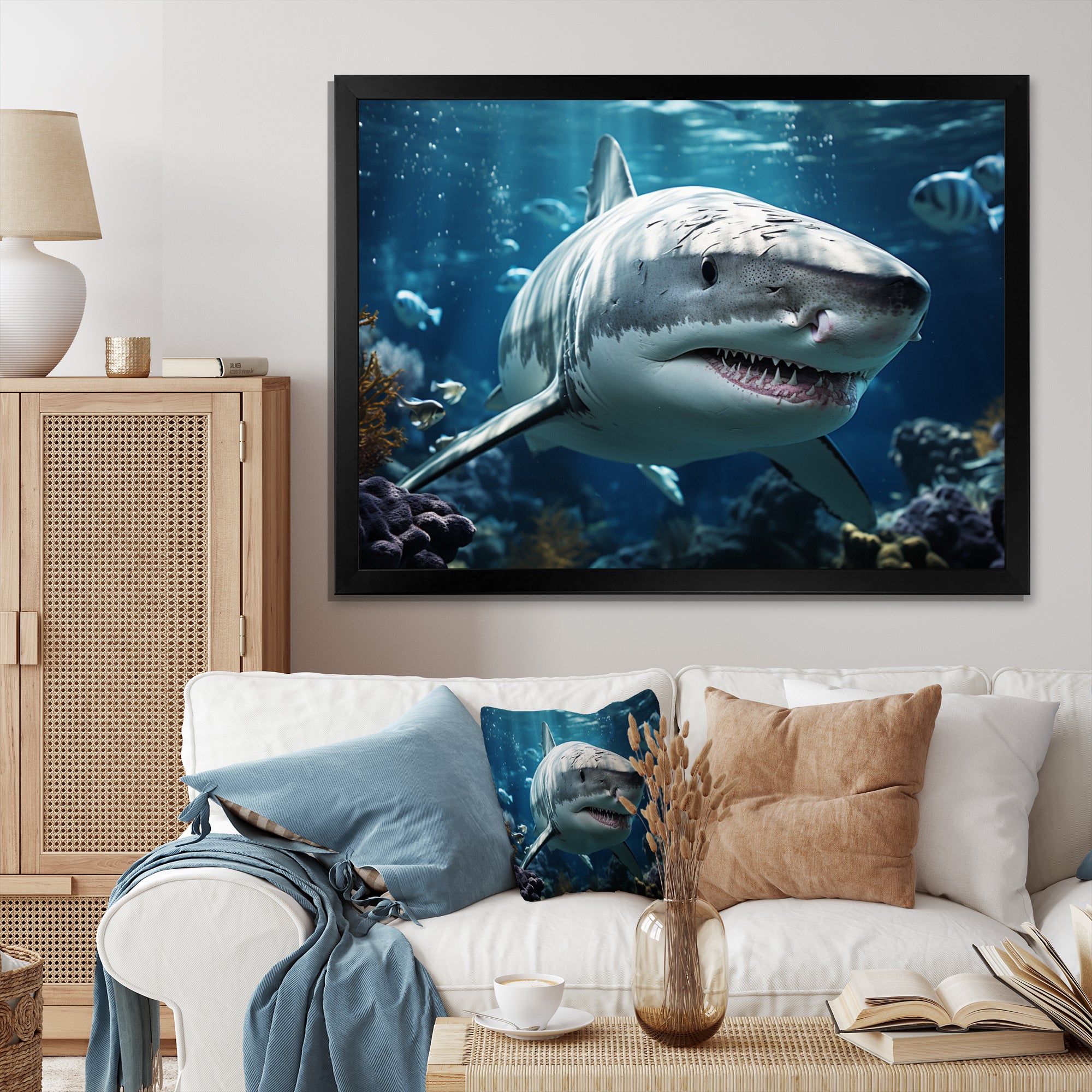 Teal Grey Shark Marine Symphony - Teal Shark Wall Art