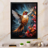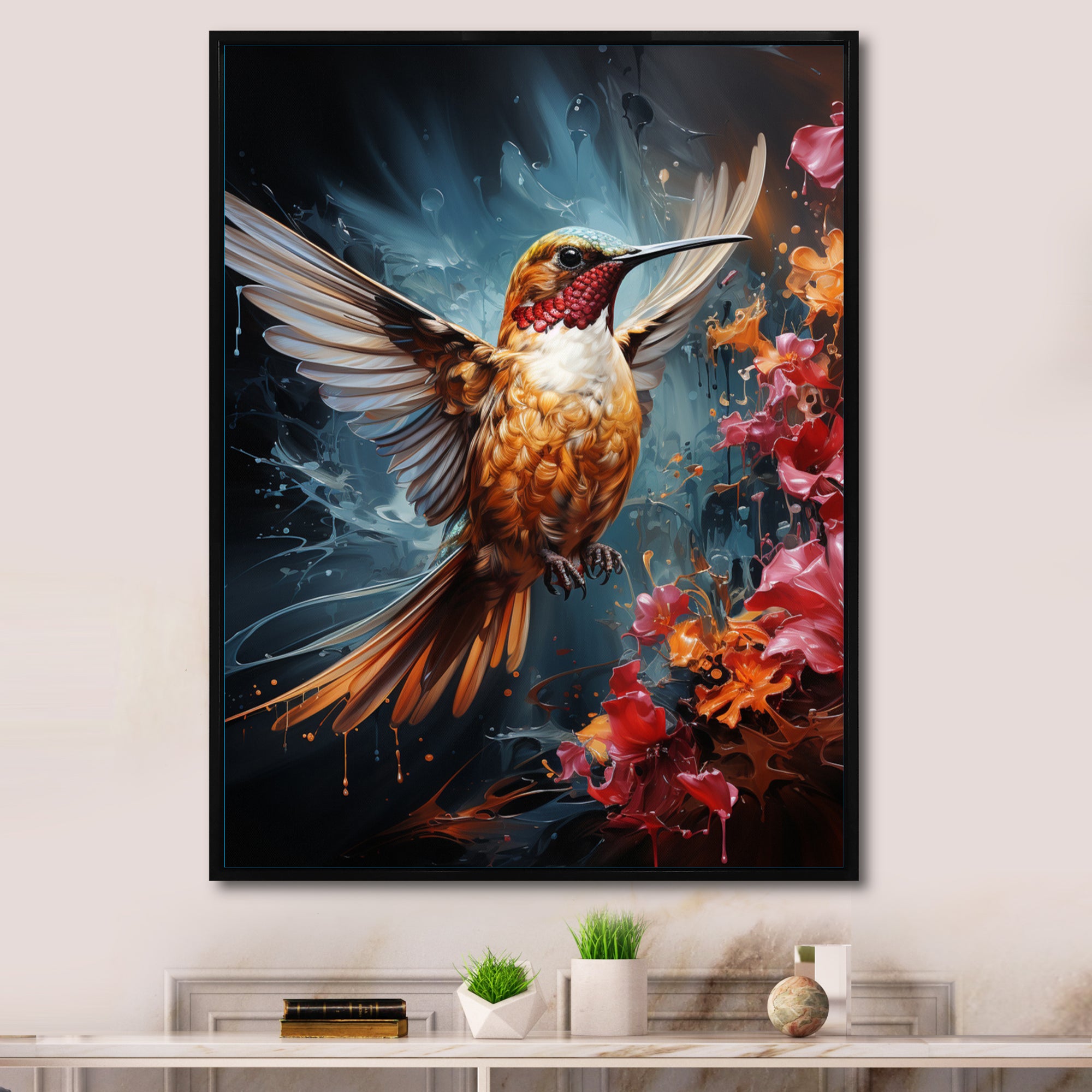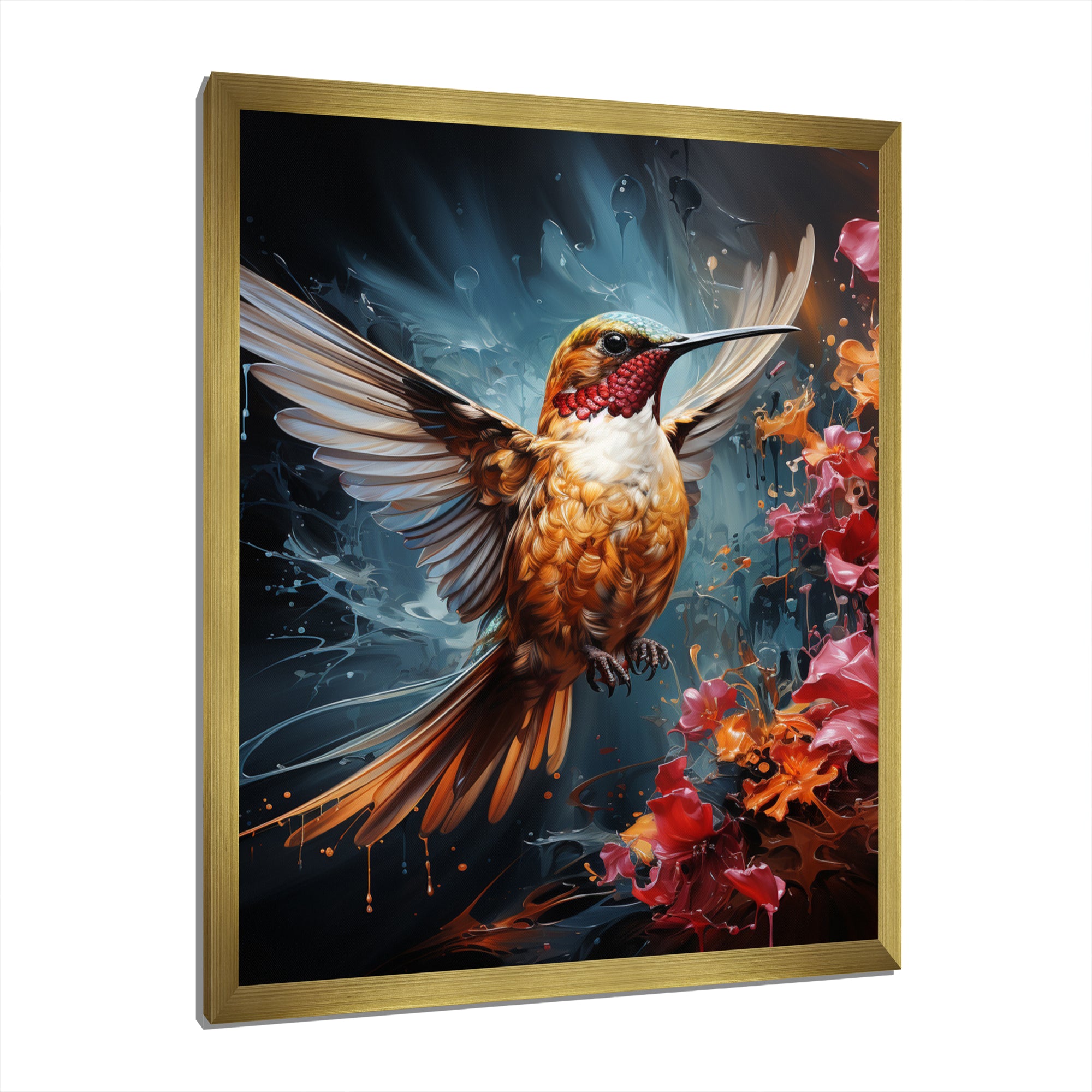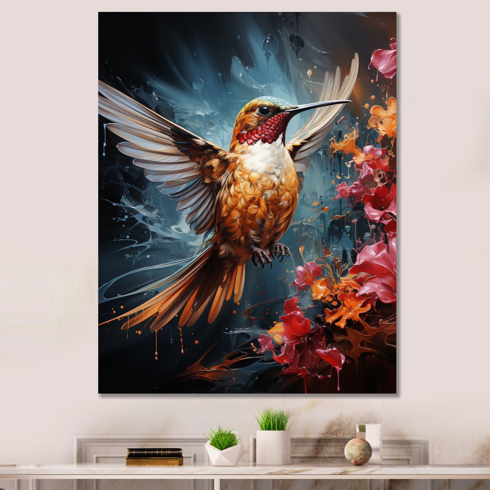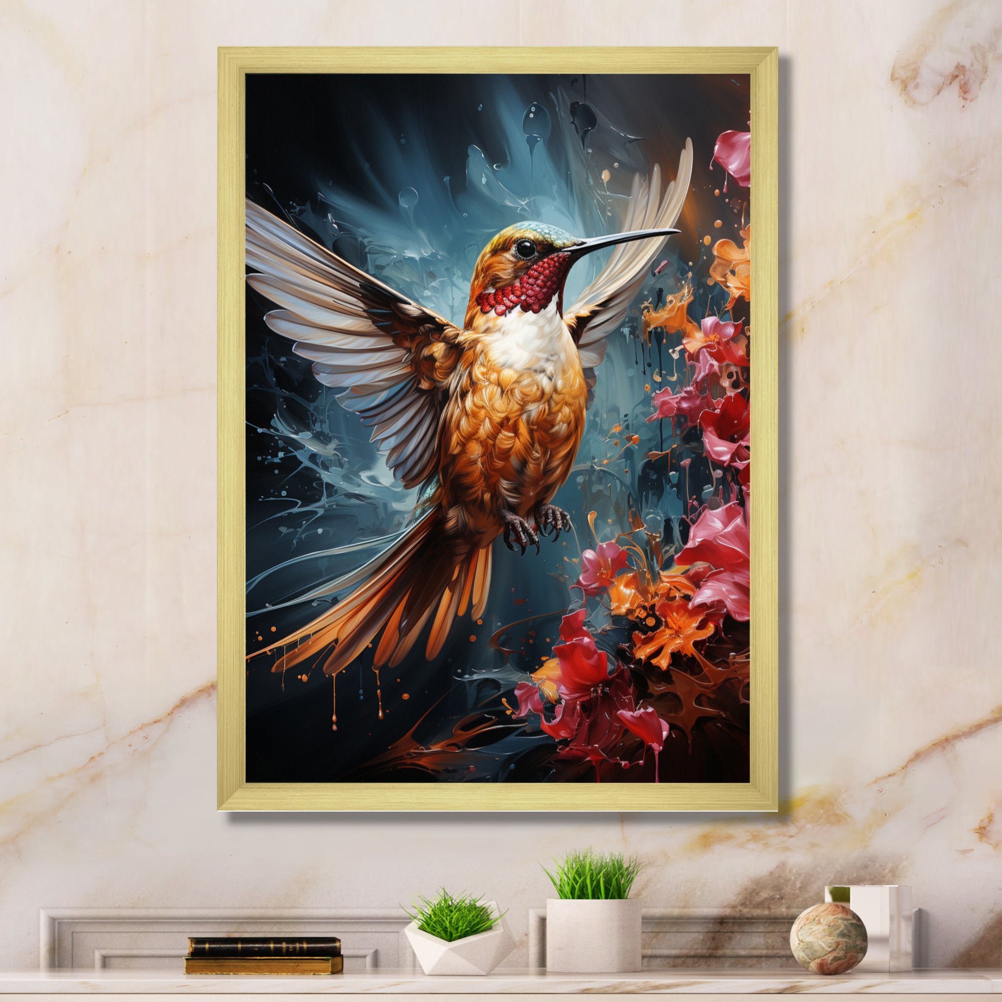 Teal Orange Animal Ruby Hummingbird Drips - Hummingbird Home Decor Art