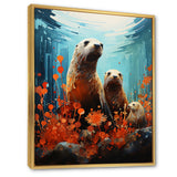 Teal Orange Marine Animals Curious Sea - Marine Animals Canvas Wall Art