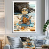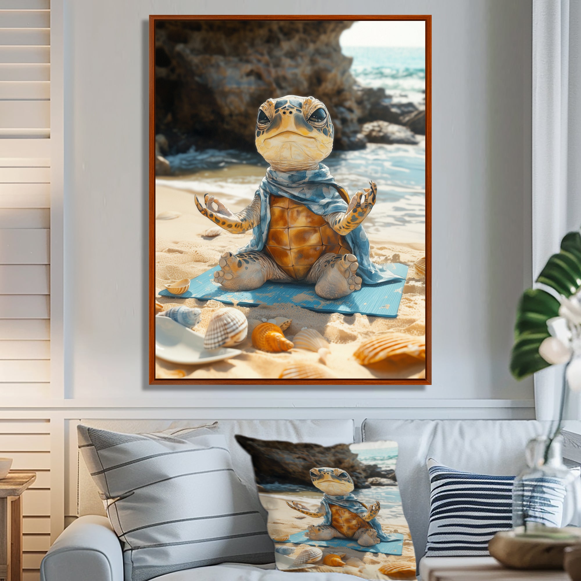 Turtle Beach Yoga In Caribbean - Coastal Animal Framed Canvas Art
