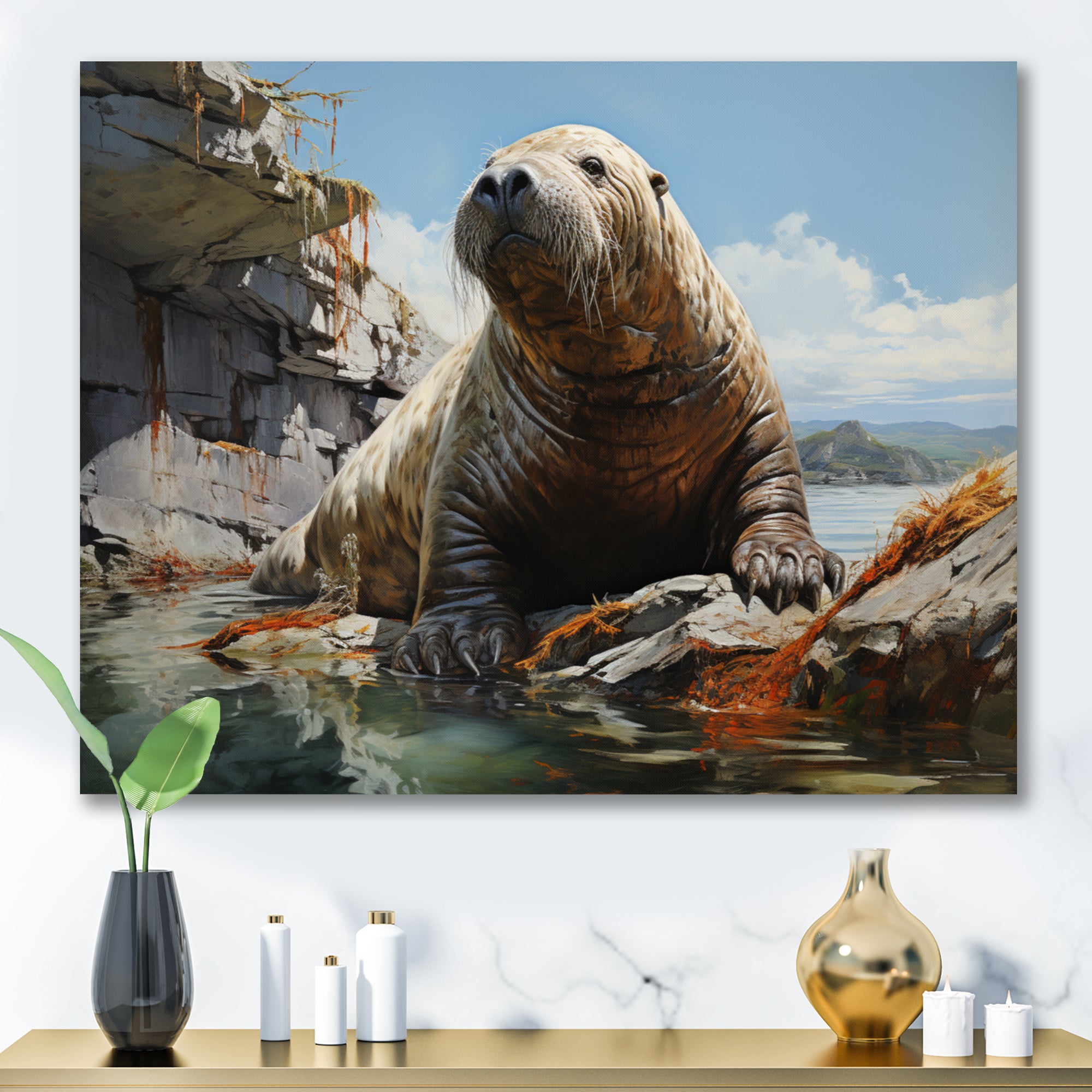 Walrus Rustic Charm - Walrus Large Canvas Wall Art