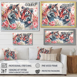 White pink tigers flowers meadows - Tiger Framed Canvas Art