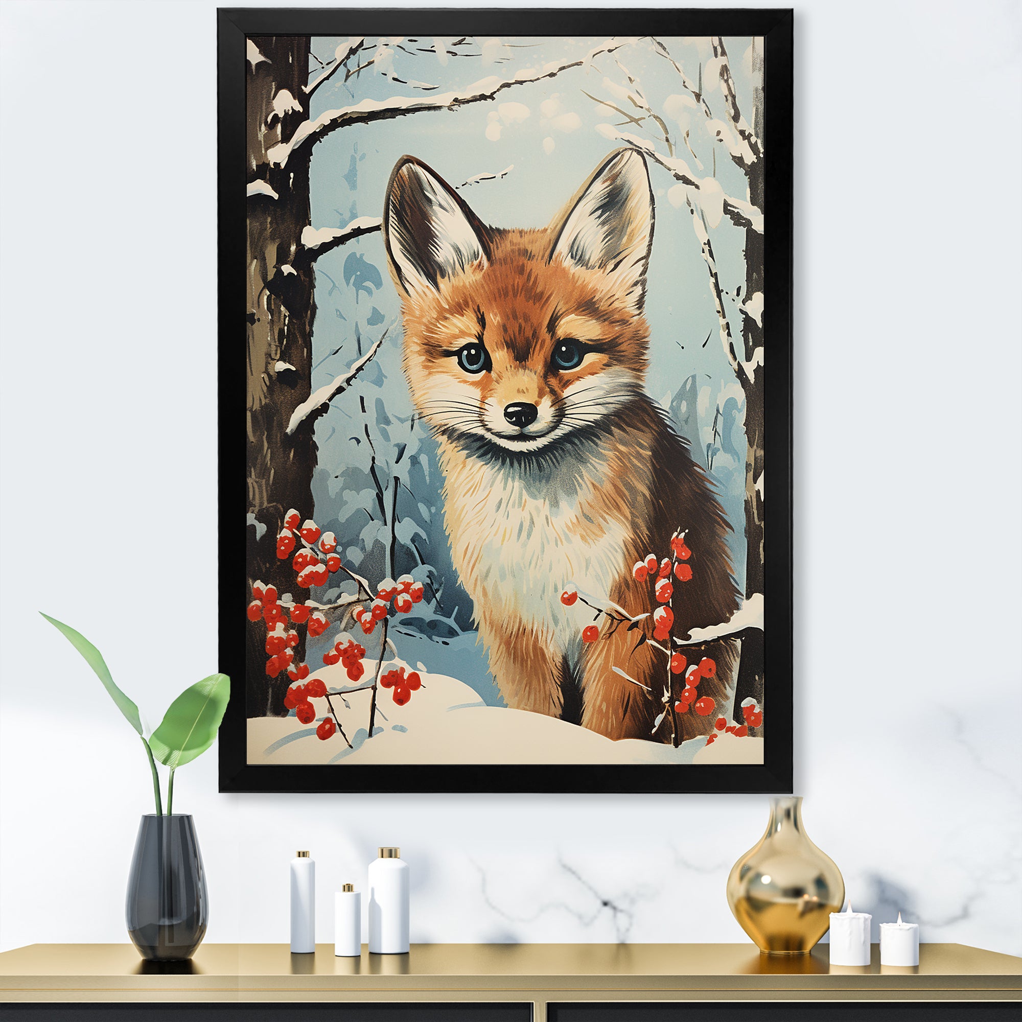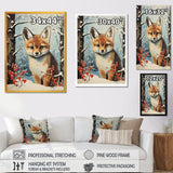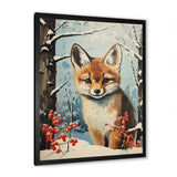 Winter scene cute fox in forest - Fox Framed Canvas Art