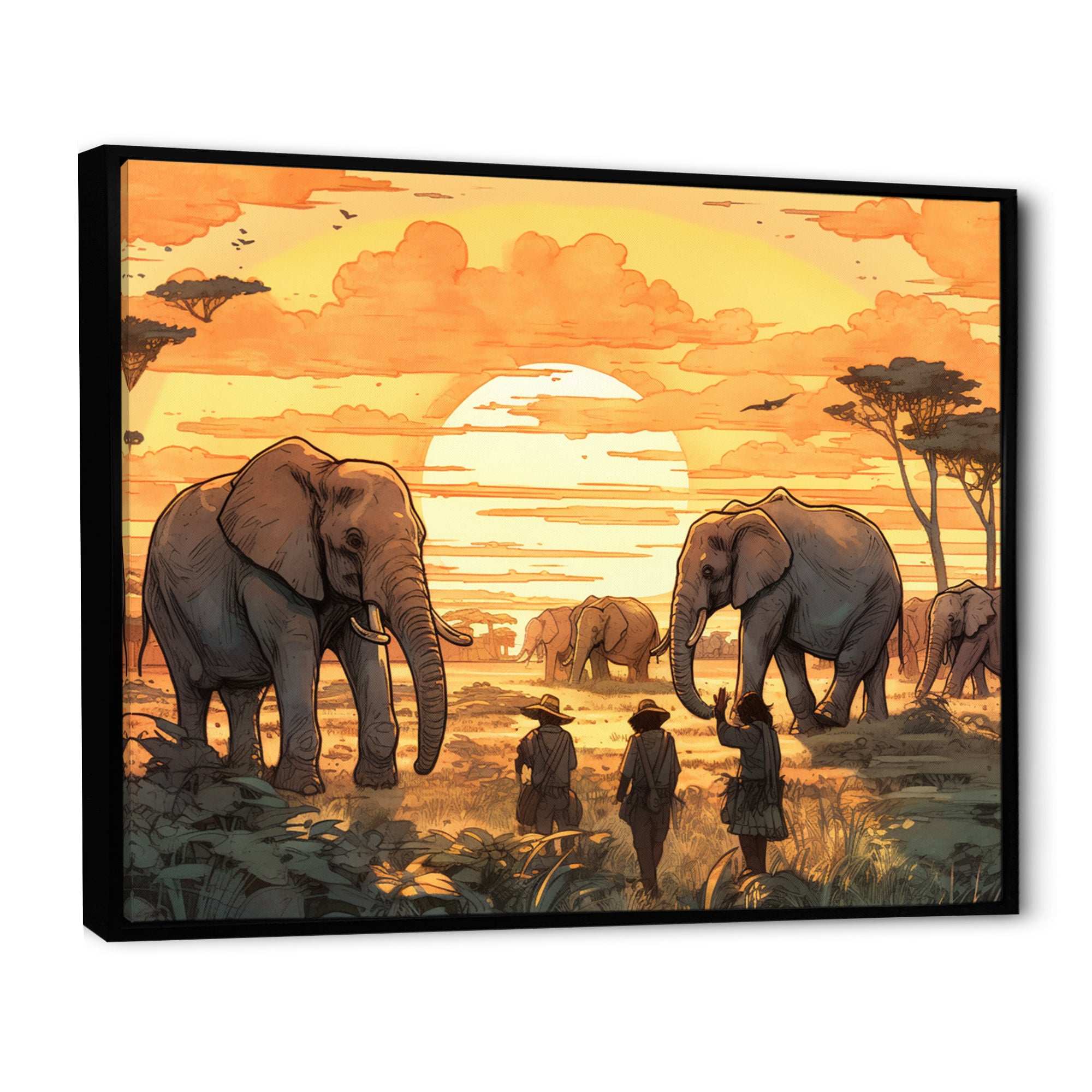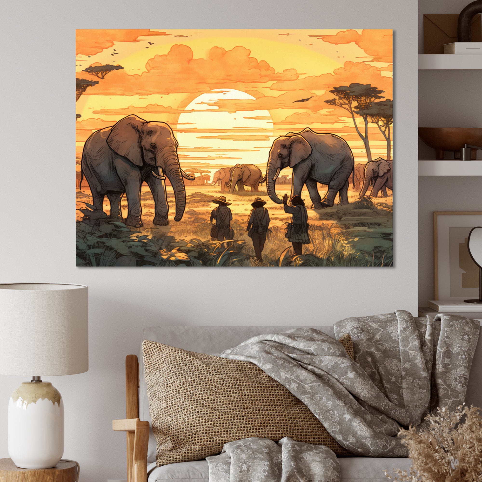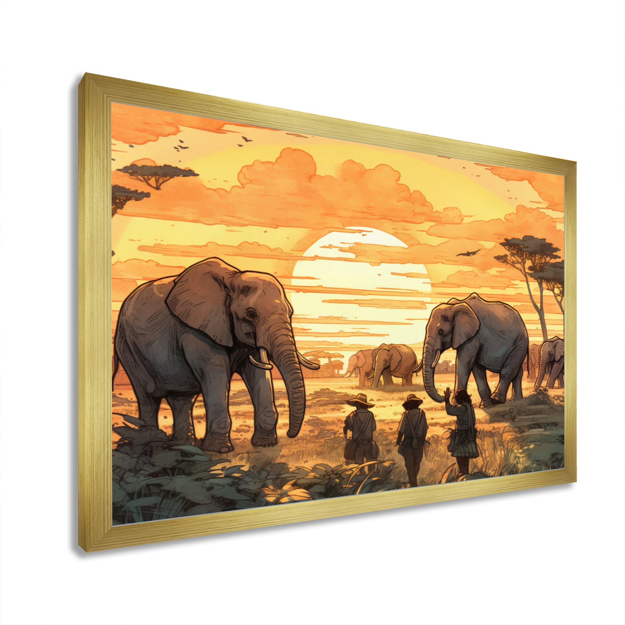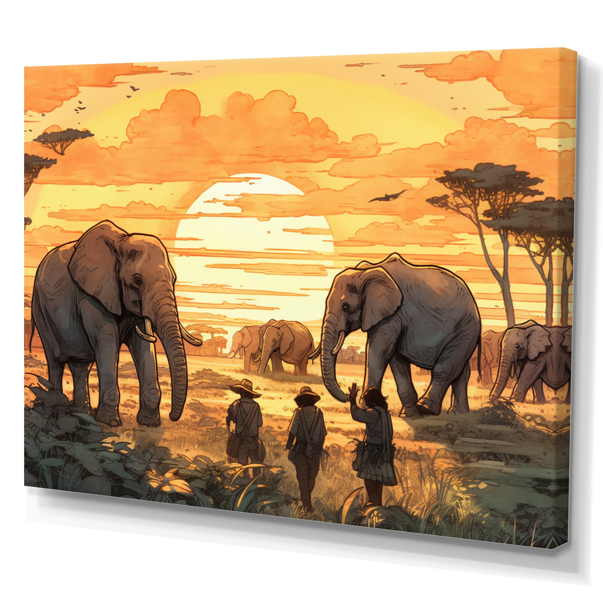 Yellow African Safari With Elephants - Elephant Large Canvas Wall Art