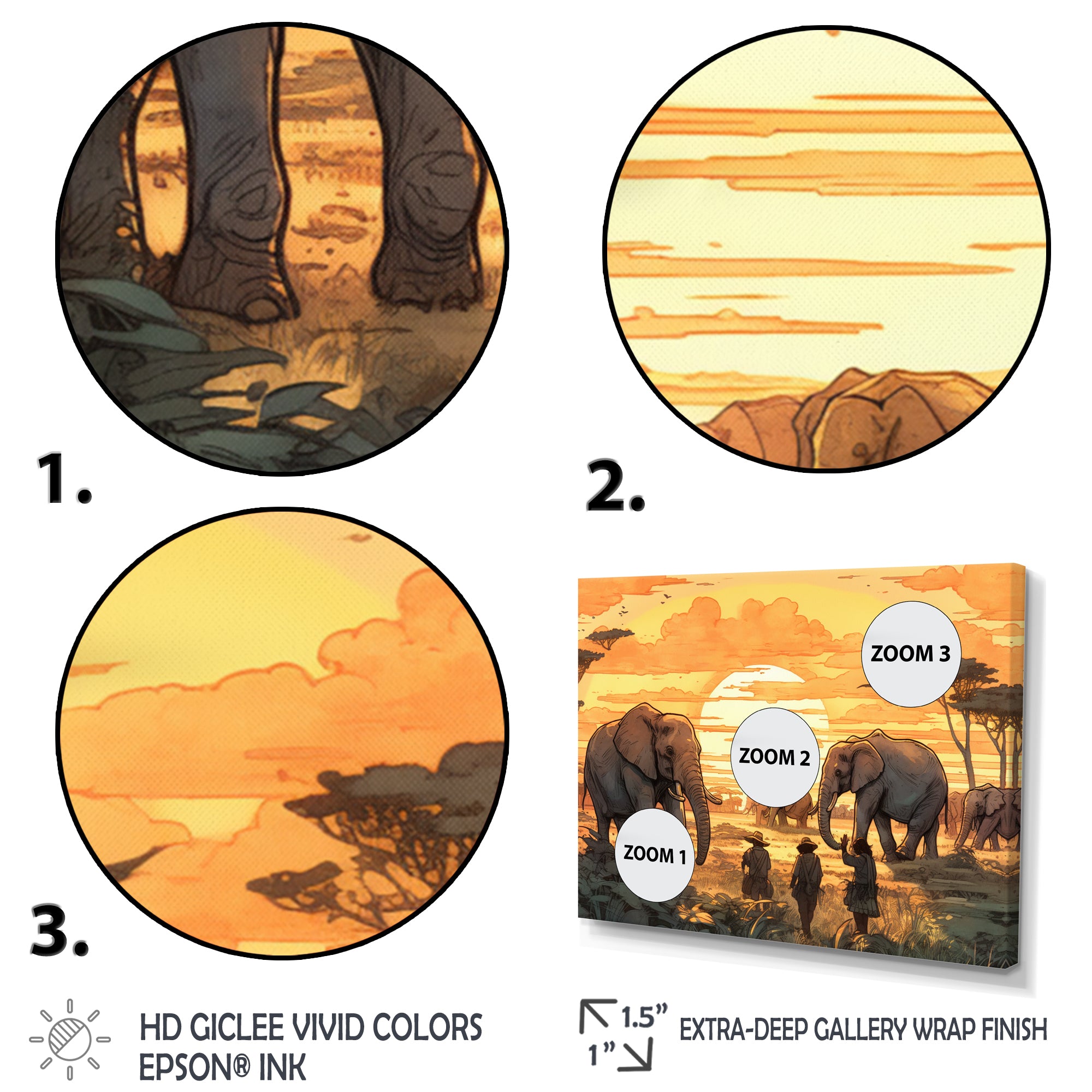This beautiful Yellow African Safari With Elephants Canvas Art is printed using the highest quality fade-resistant ink on canvas. Every one of our fine art giclee canvas prints is printed on premium quality cotton canvas, using the finest quality inks which will not fade over time. Each giclee print is stretched tightly over a 1-inch wood sub frame for small size prints or a 1.5-inch wood subframe for large size prints ensuring the canvas is taught and does not buckle. This canvas art print is gallery-wrapped (the design continues on the sides), giving it a real art gallery feel. All of our canvas prints are carefully packaged with plastic protection, fragile labeling, and sturdy boxes to ensure safe delivery. Every canvas print arrives ready to hang on the wall, with the hanging kits included.