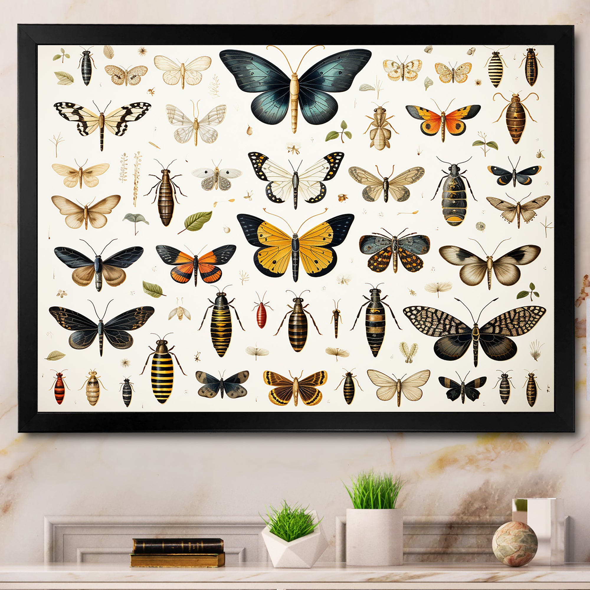Yellow and blue Insects and Bugs - Insects & Bugs Framed Canvas Art
