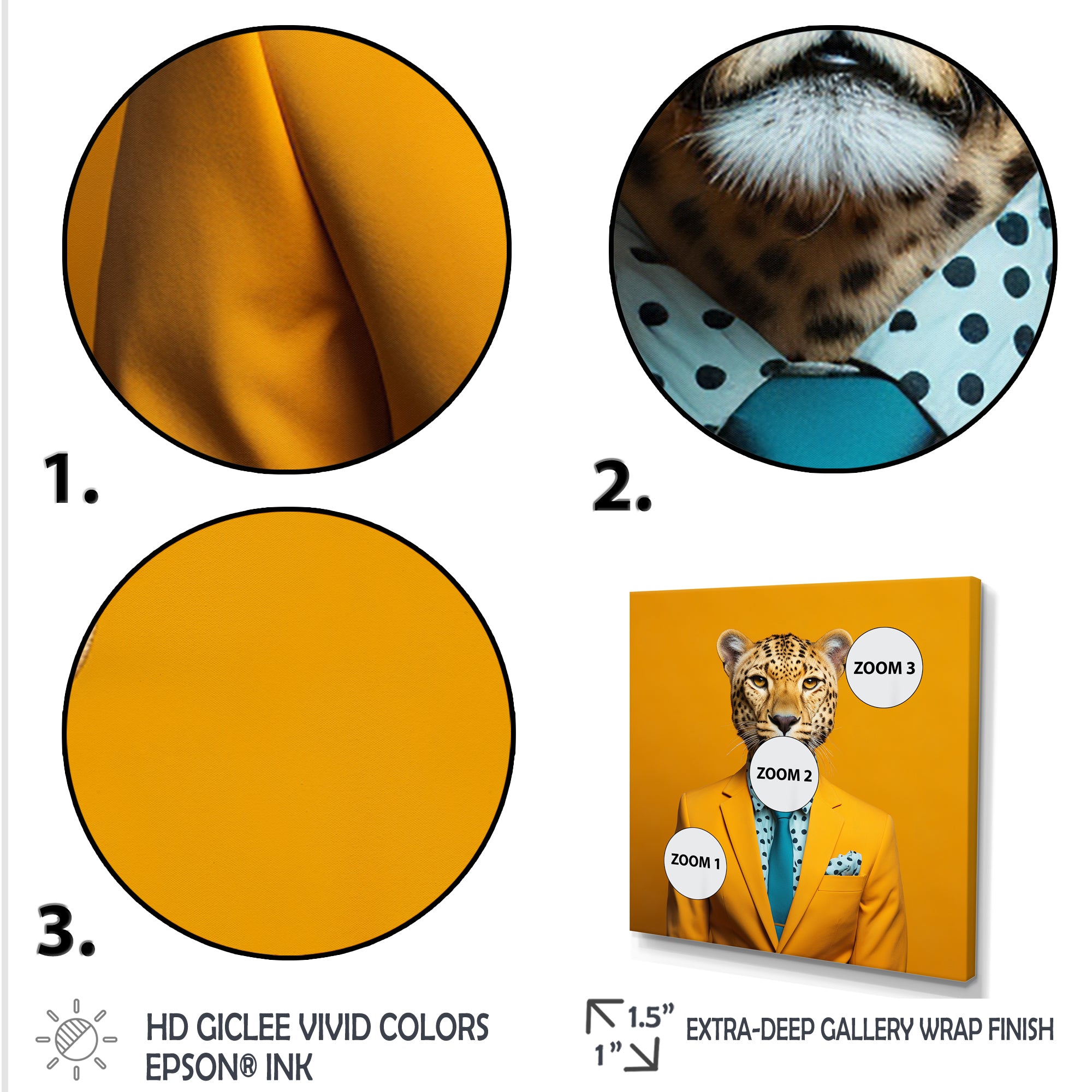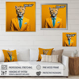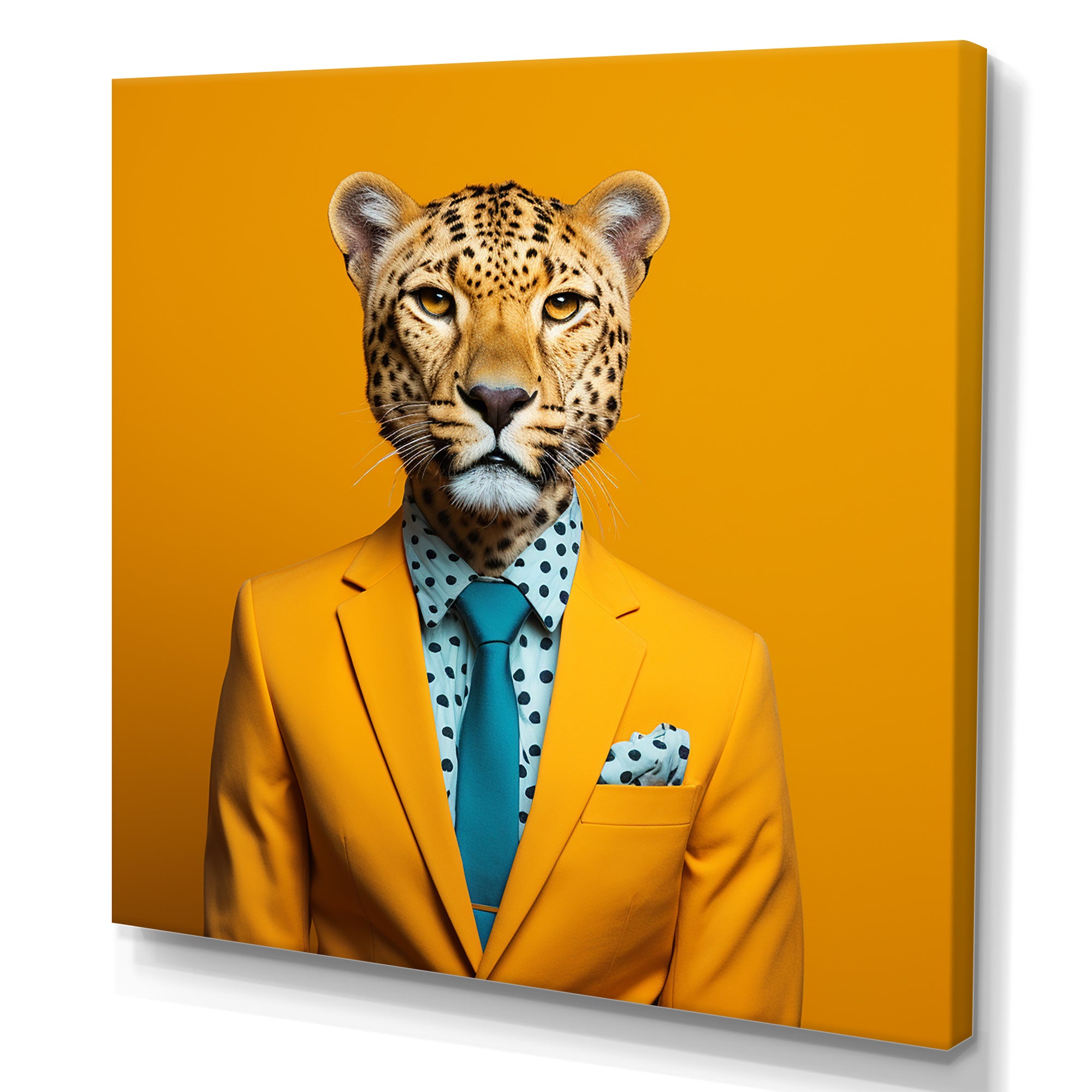 Yellow and blue suited up cheetah - Zebra Fashion Canvas Wall Art