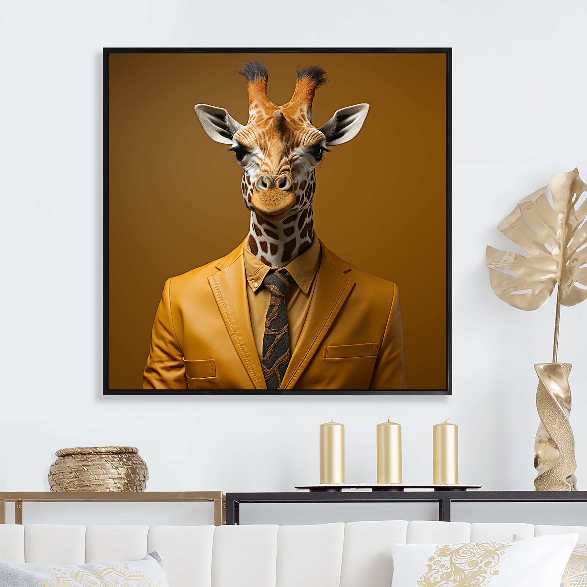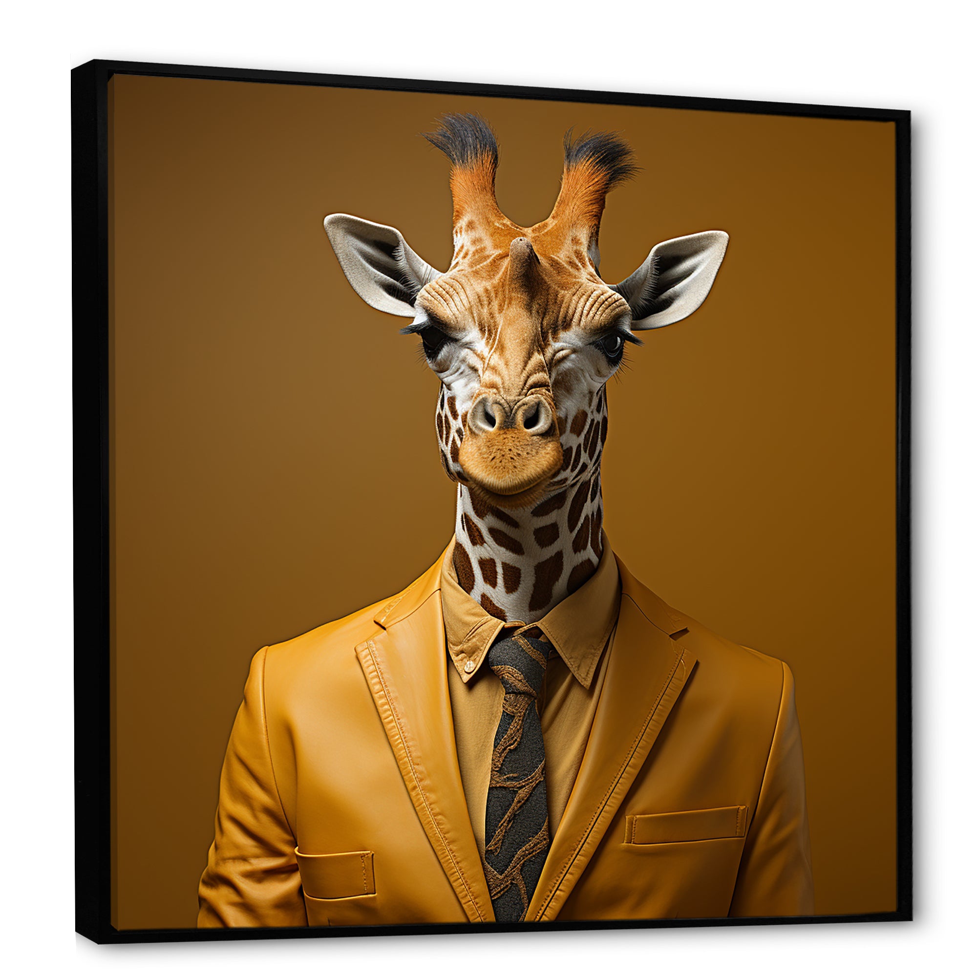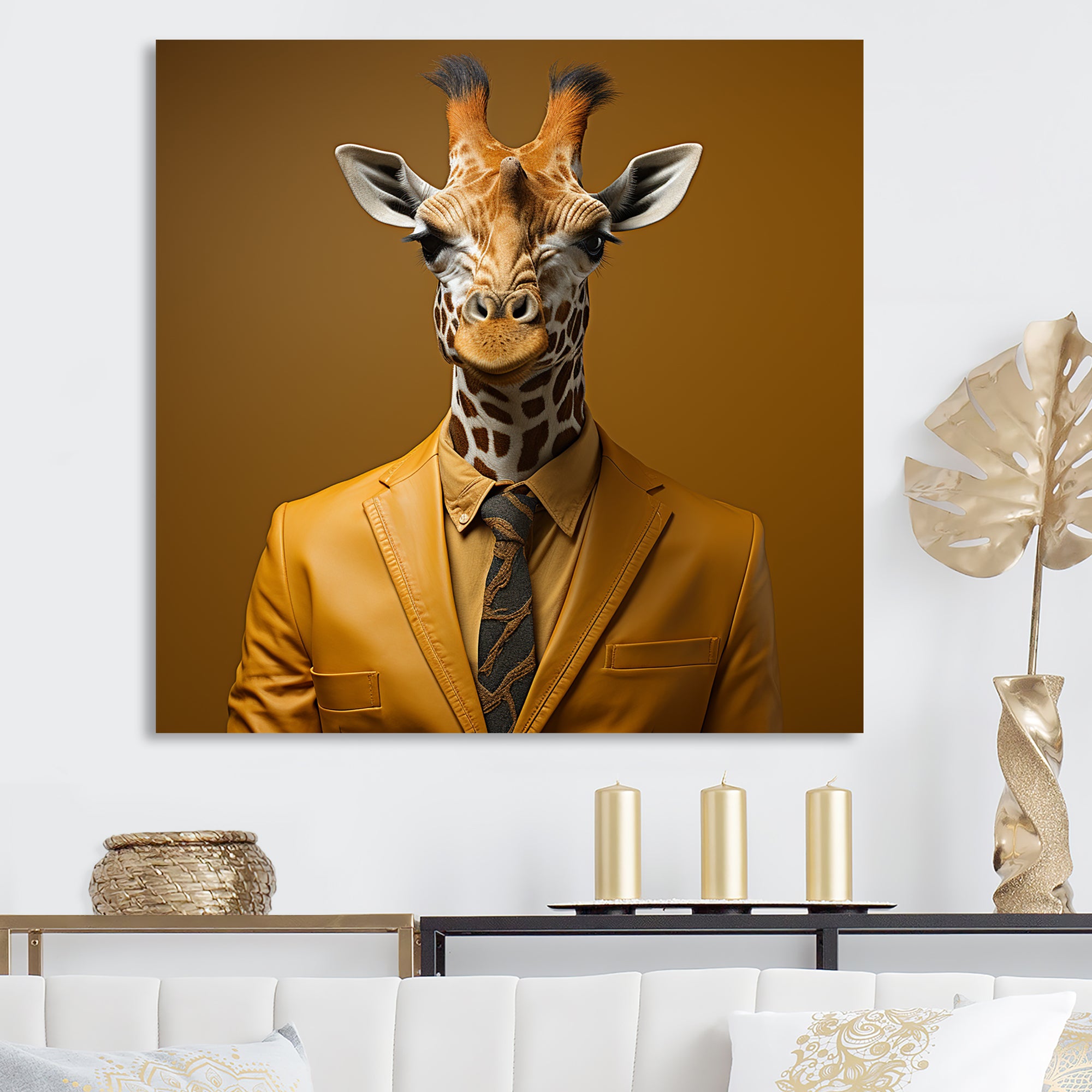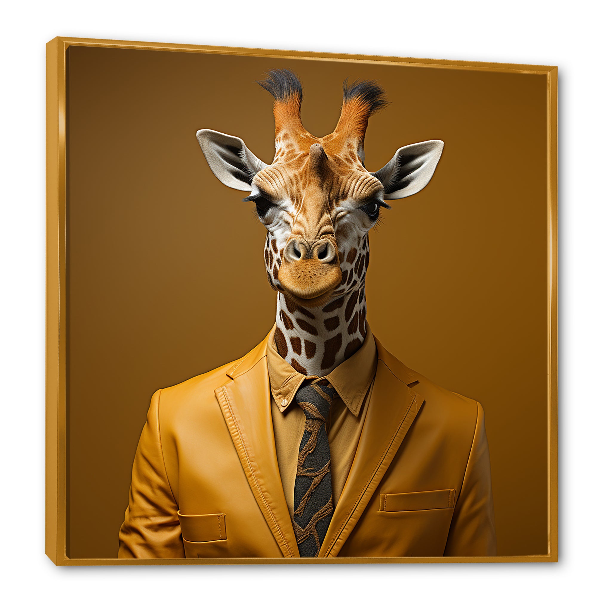 Yellow and brown suited up fashion giraffe - Giraffe Fashion Wall Decor