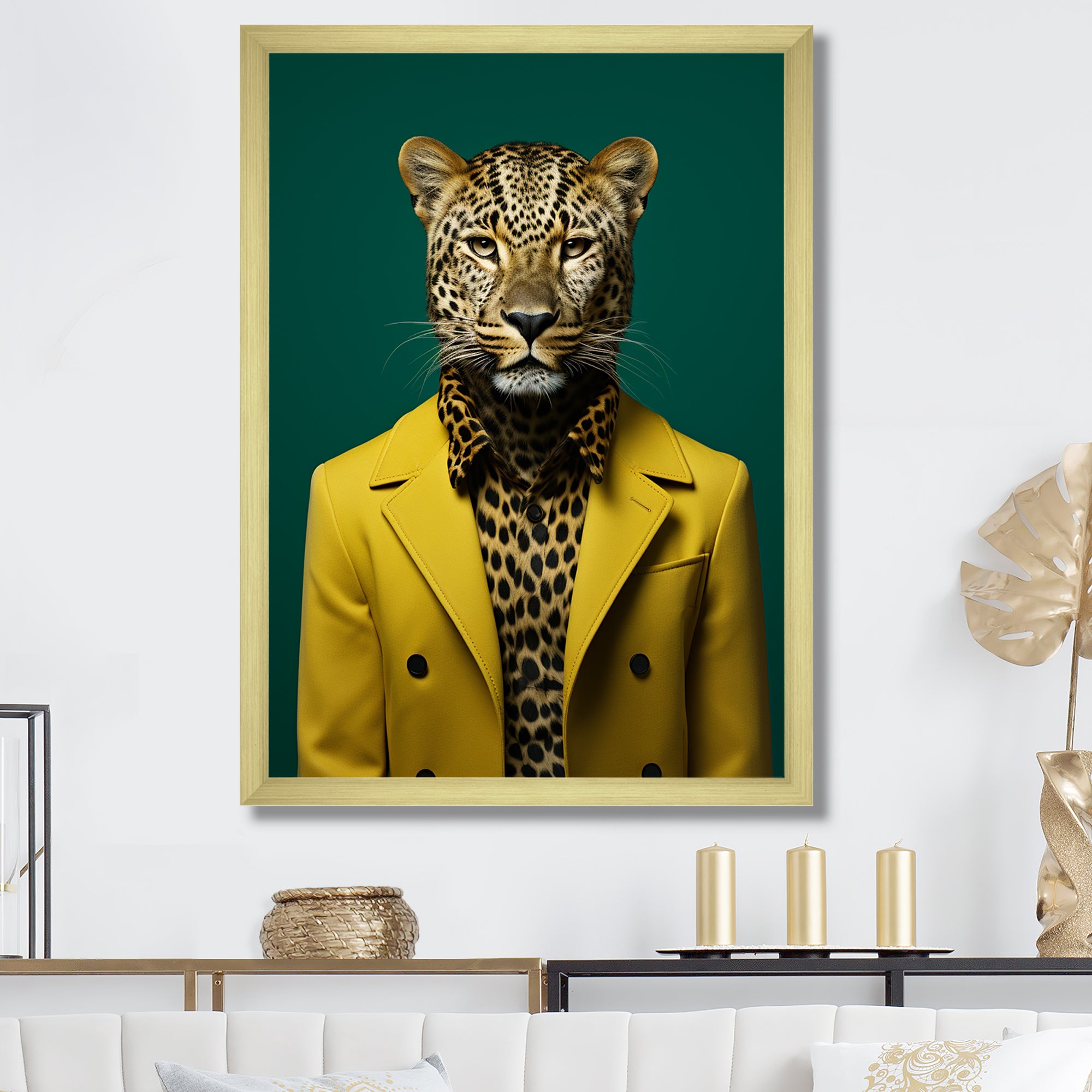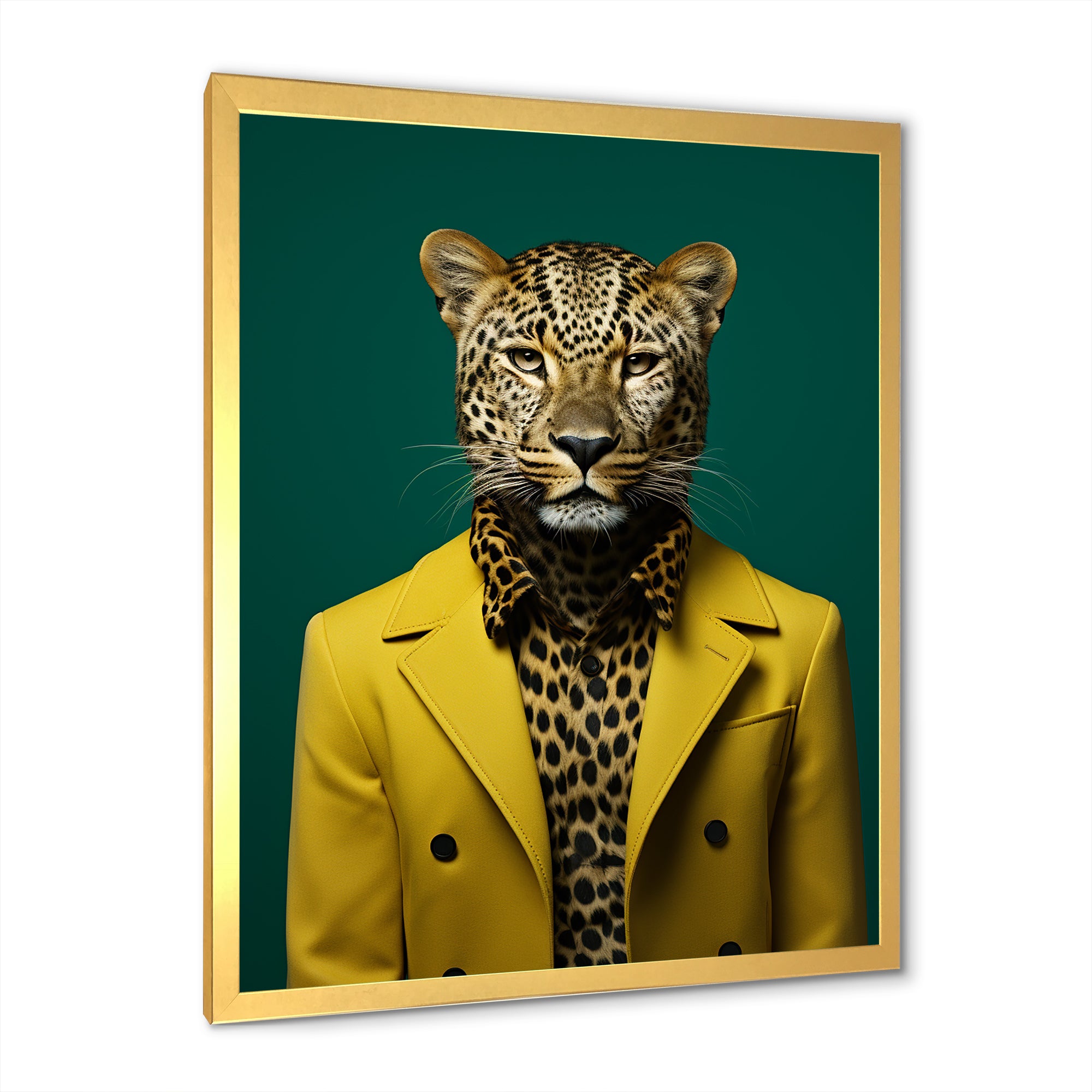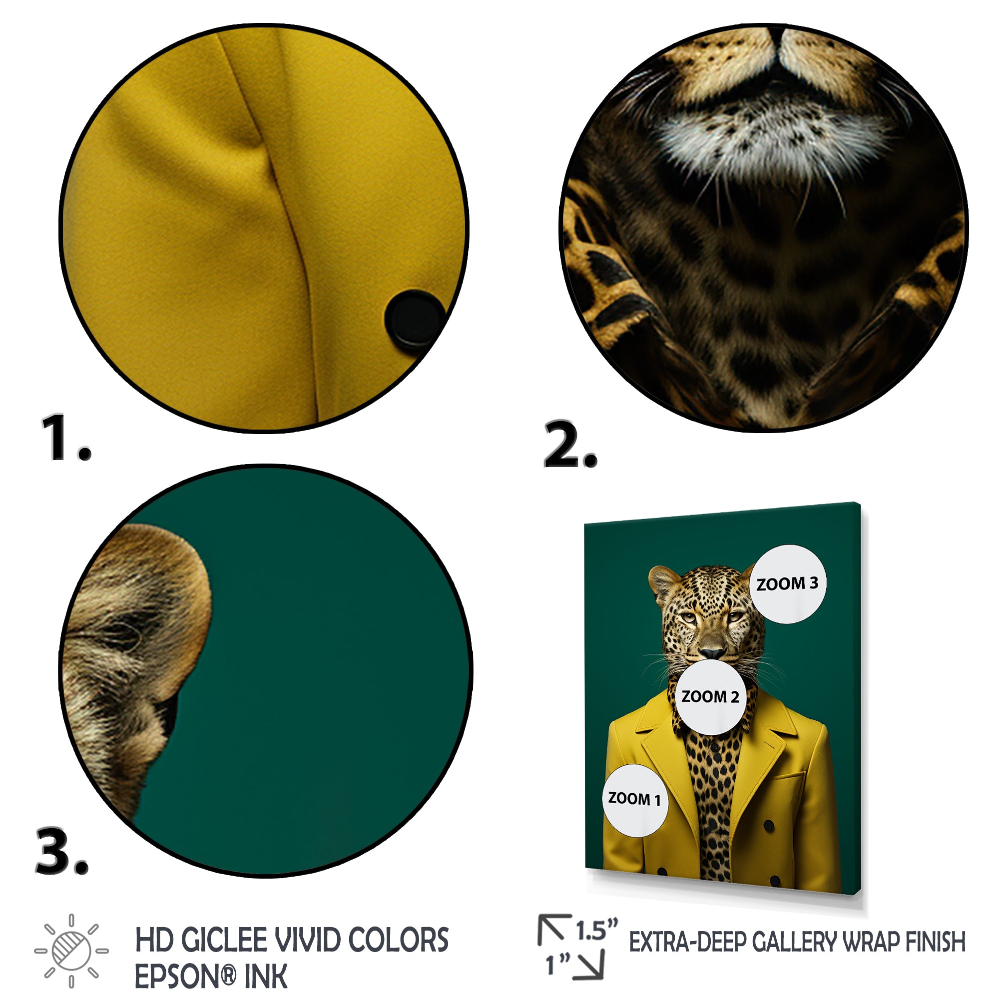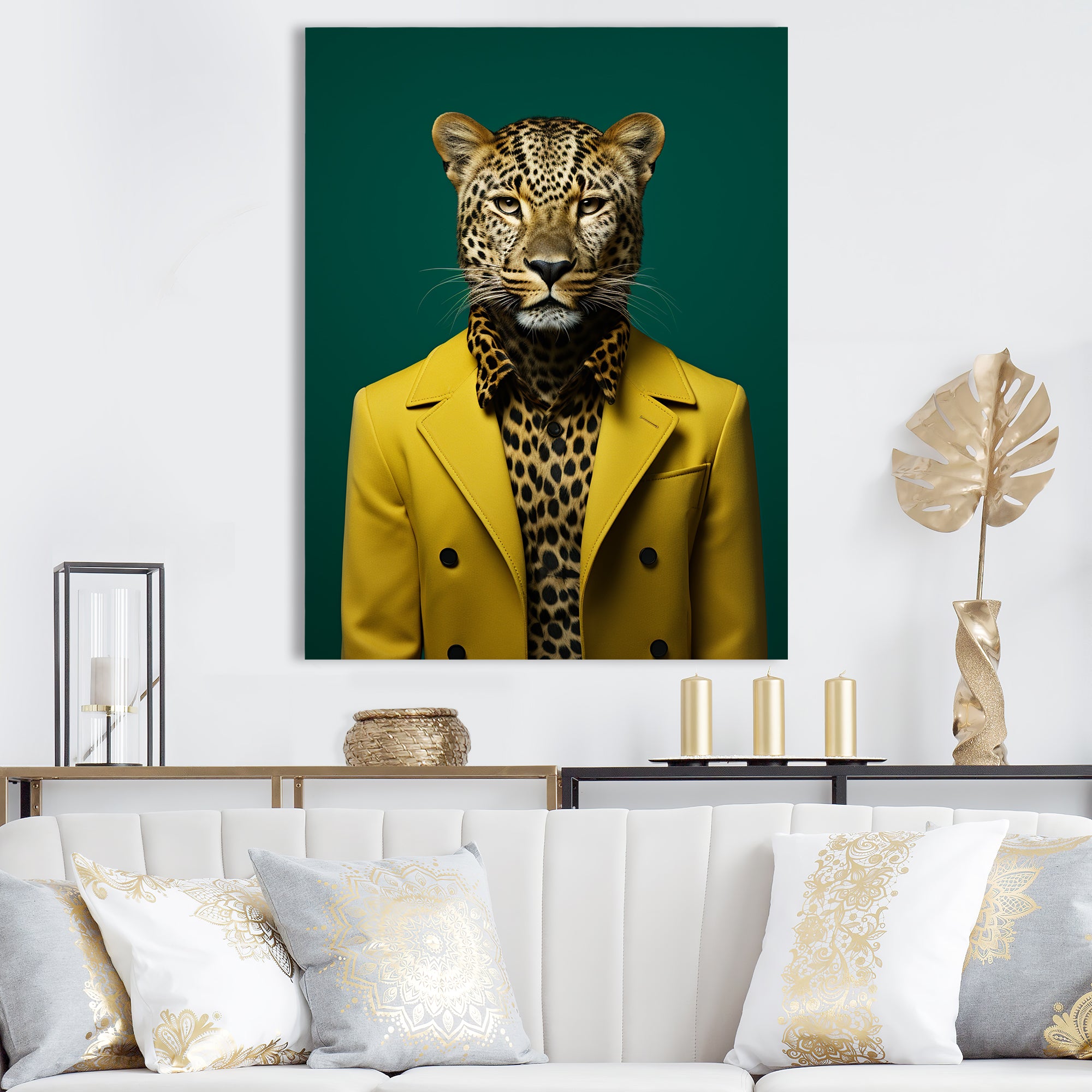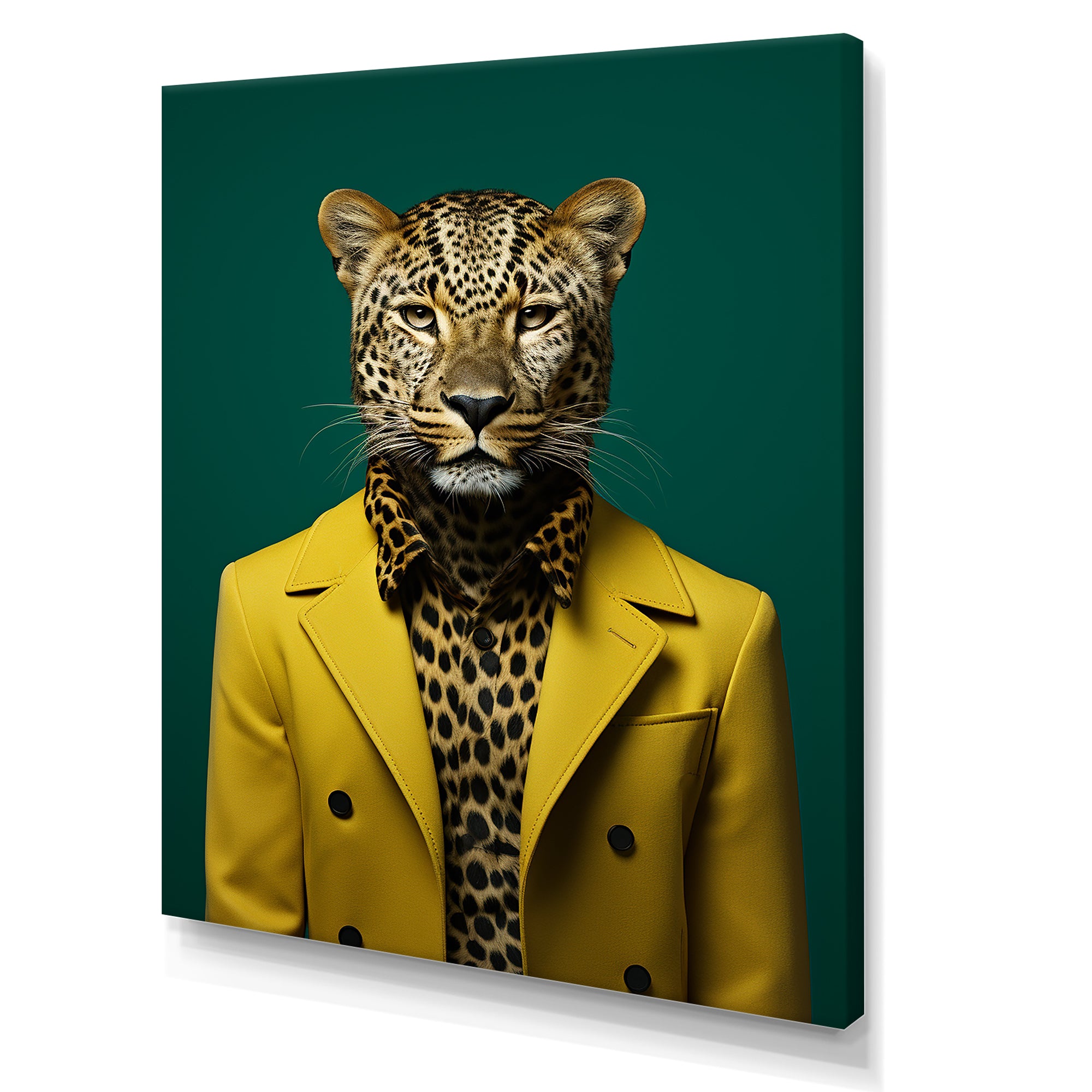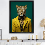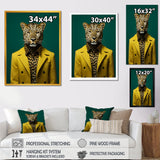 Yellow and green suited up cheetah - Tiger Fashion Large Canvas Wall Art