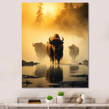 Yellow Black Buffalo Ethereal Grazing - Buffalo Canvas Wall Art