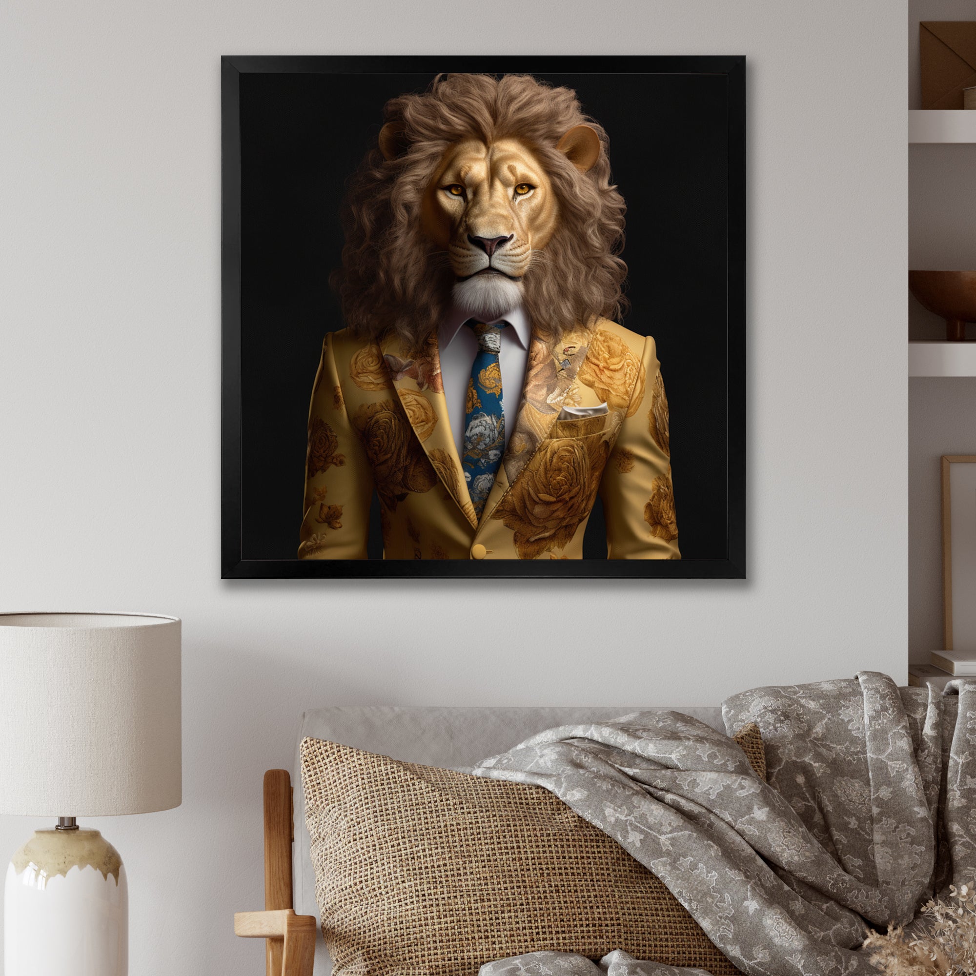 Yellow Lion In Suit - Lion Fashion Canvas Wall Art
