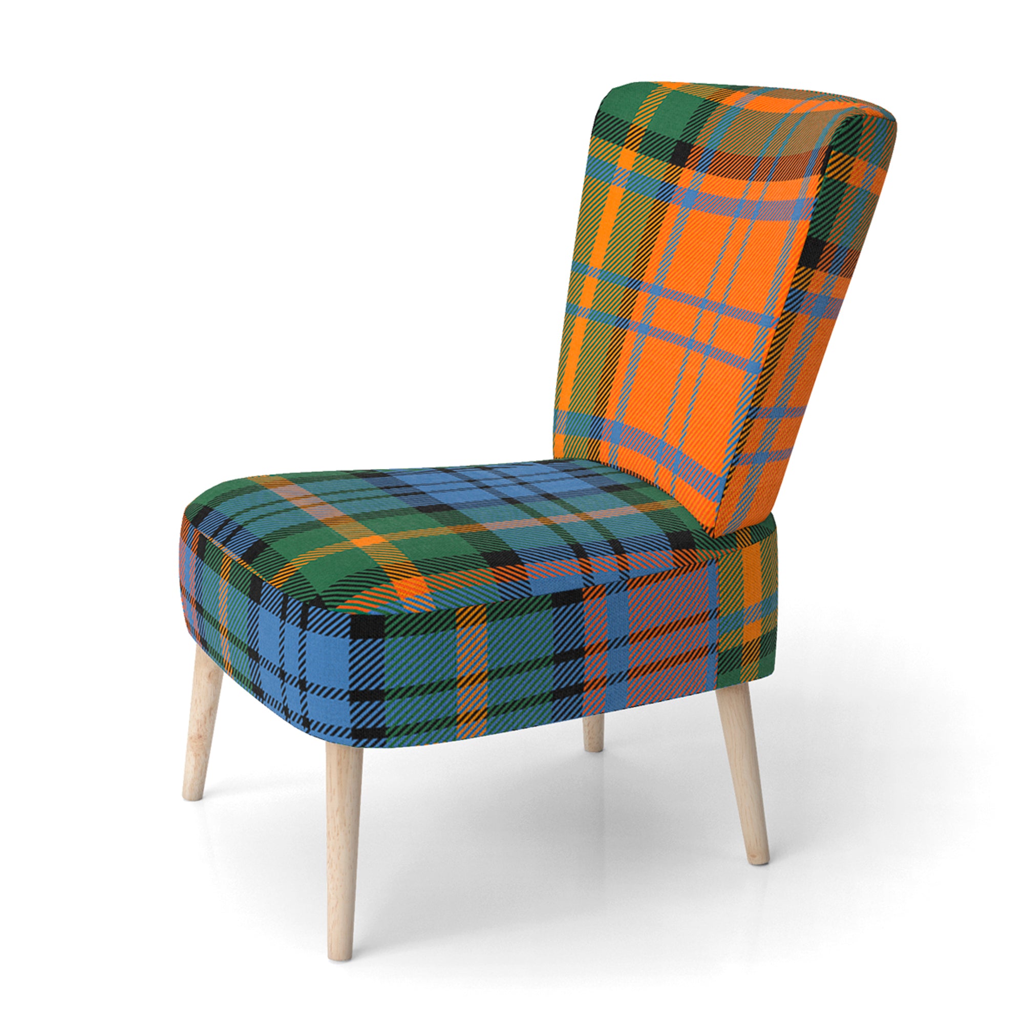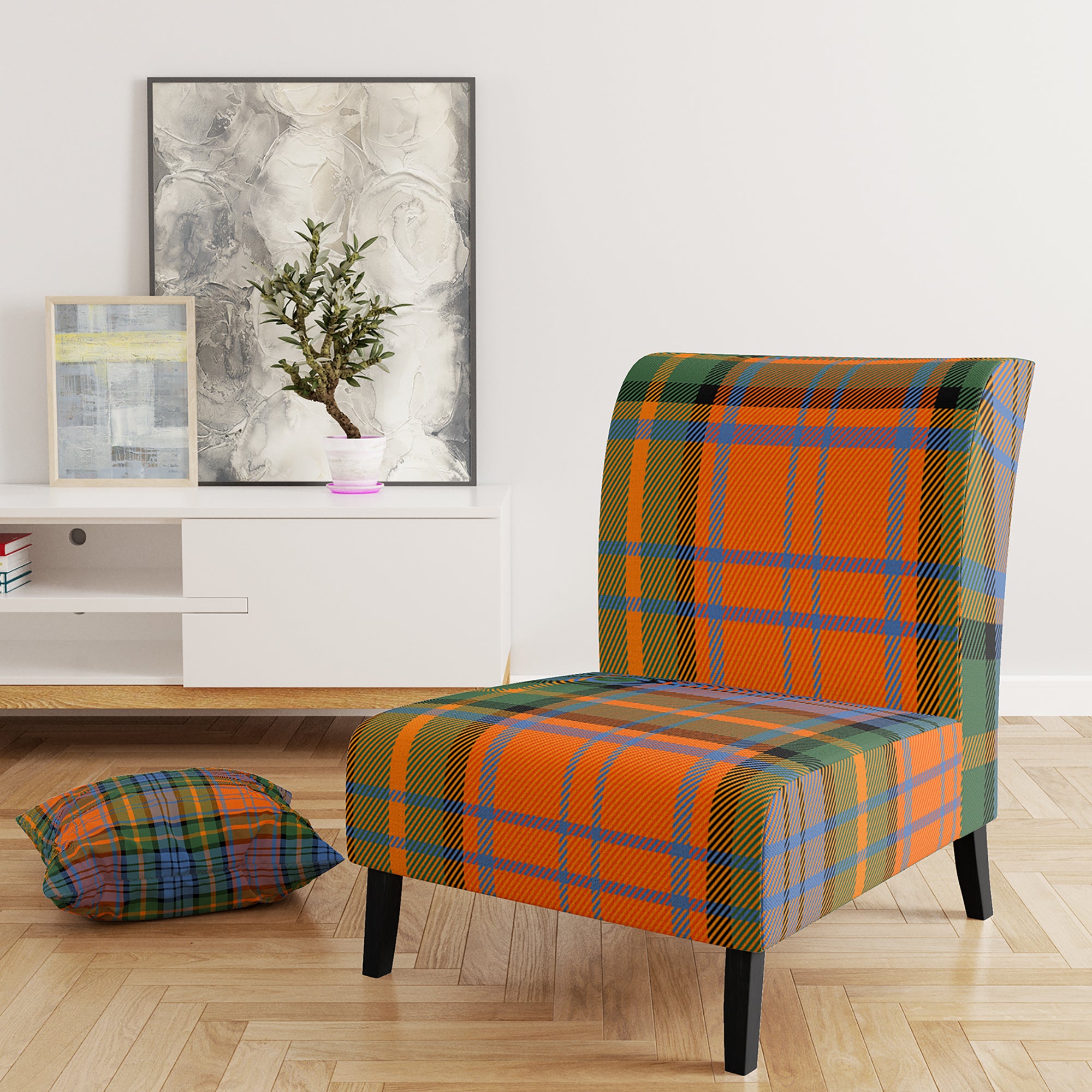 Green And Orange Checked Tartan - Upholstered Patterned Accent Slipper Chair