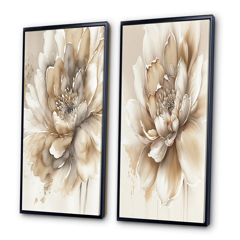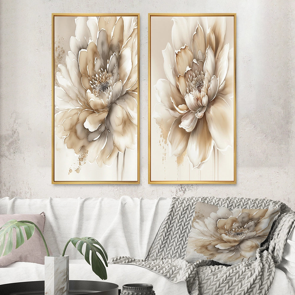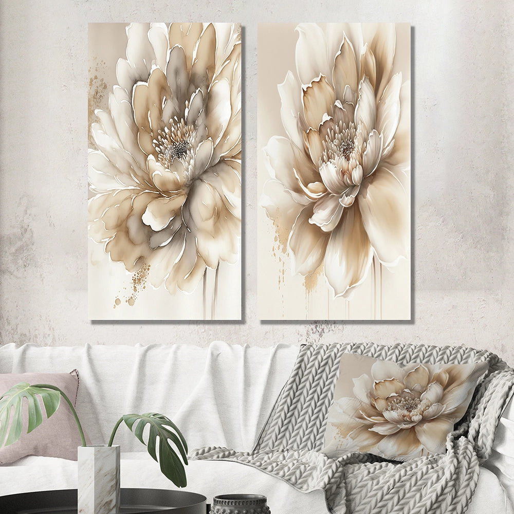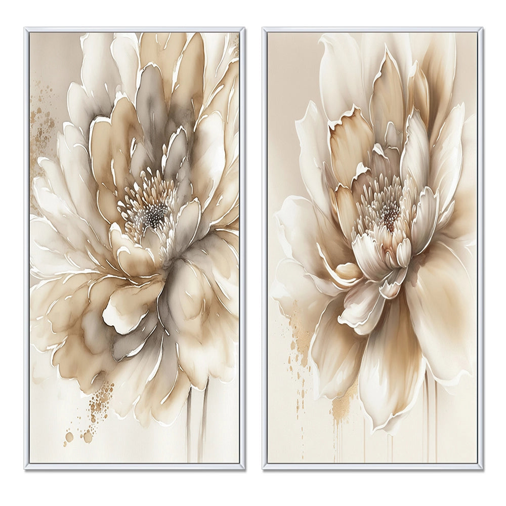 Floral Canvas Wall Art - Single Beige Flower - 2 Pieces