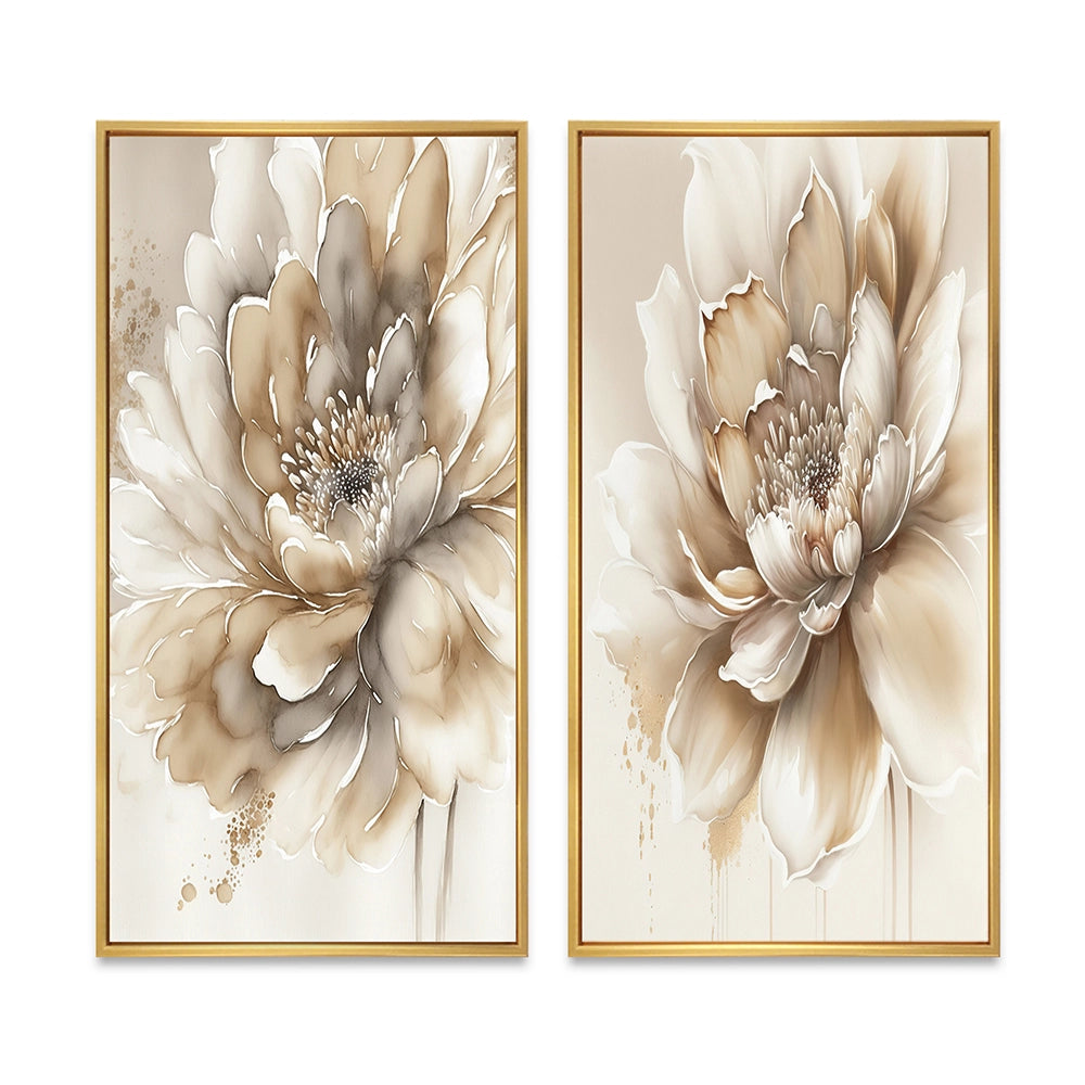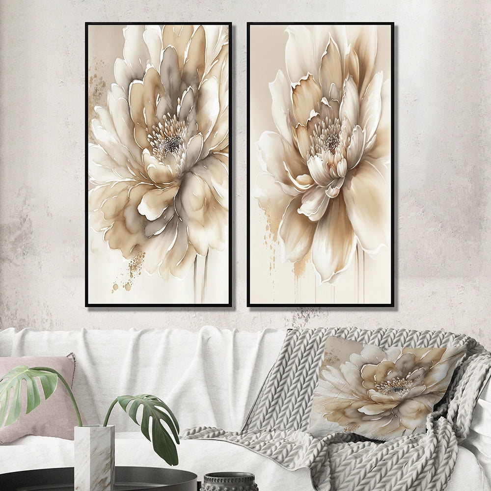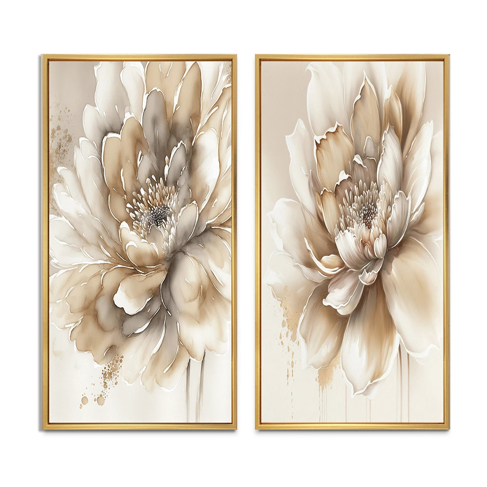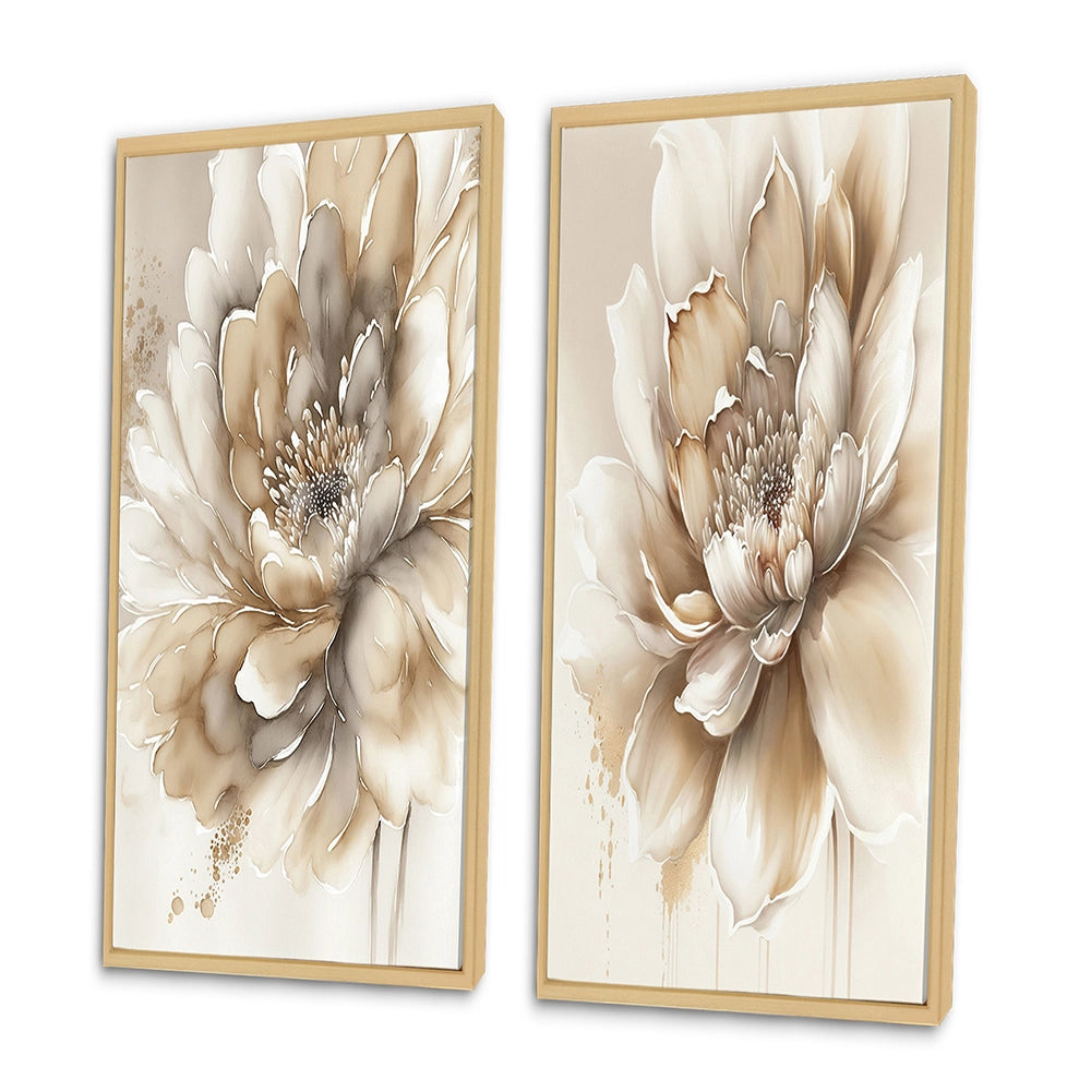Floral Canvas Wall Art - Single Beige Flower - 2 Pieces