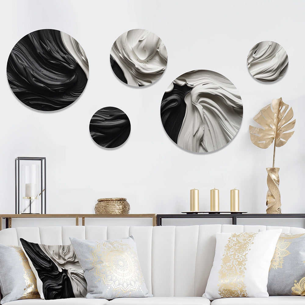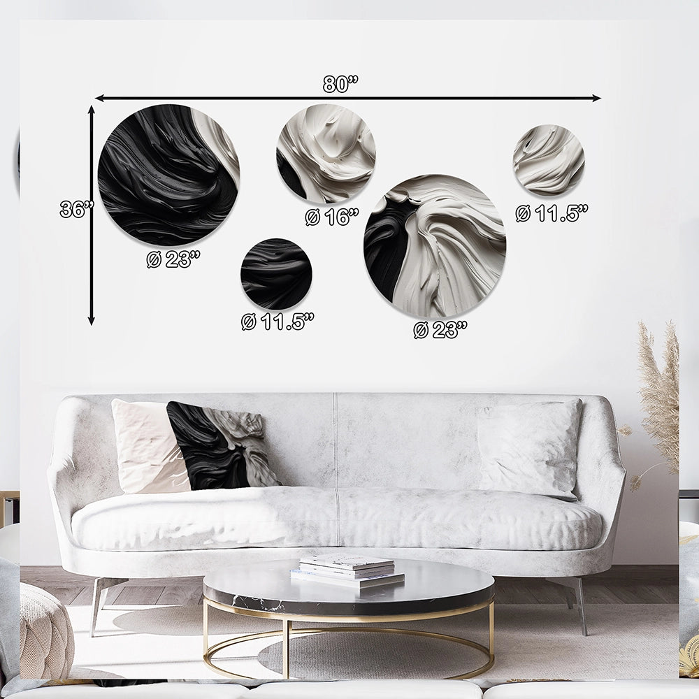 Modern Metal Wall Art - Black White Marbled Dreamscape IV - 5 Pieces