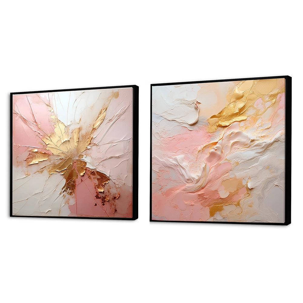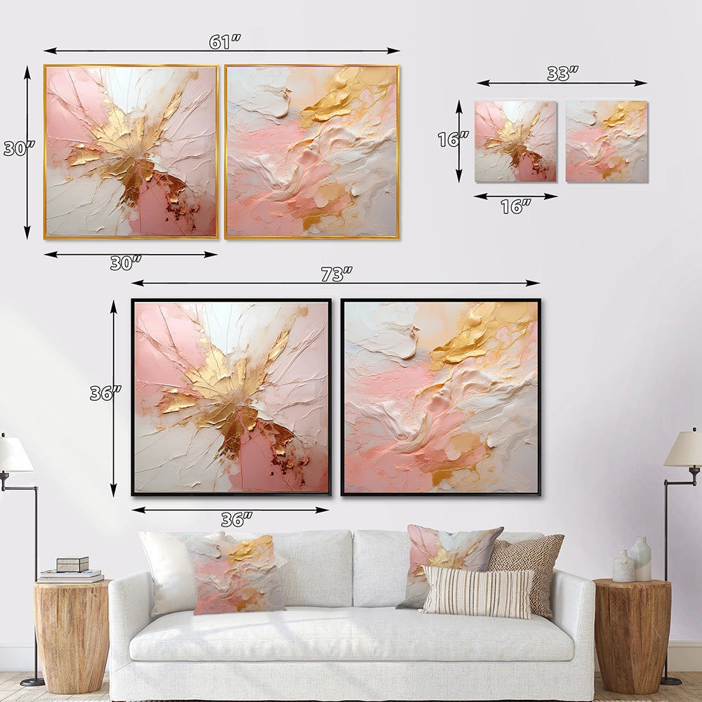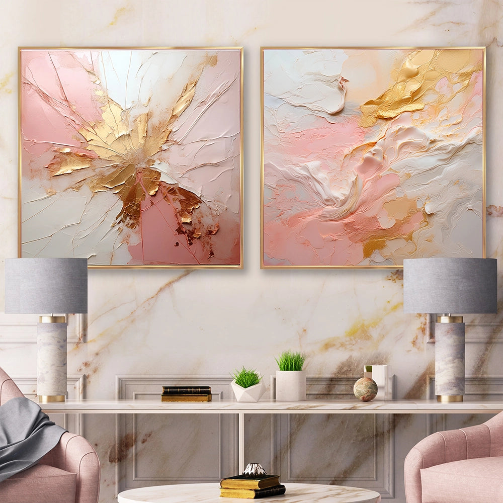 Abstract Painting Wall Art Set - Gold And Pink Paint Fusion - 2 Pieces