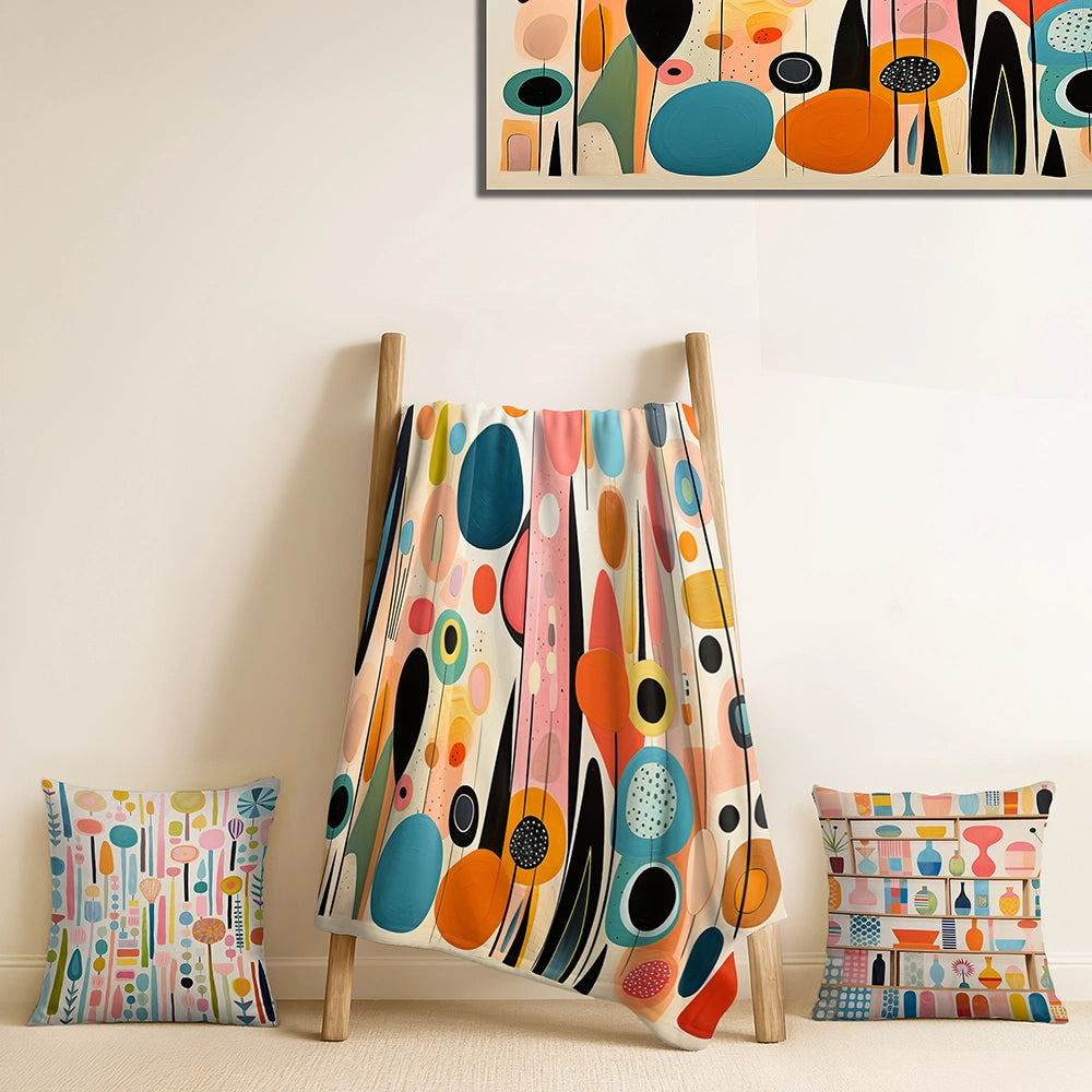 Mid-Century Throw Blanket - Pink Mid Century Playful Patterns II